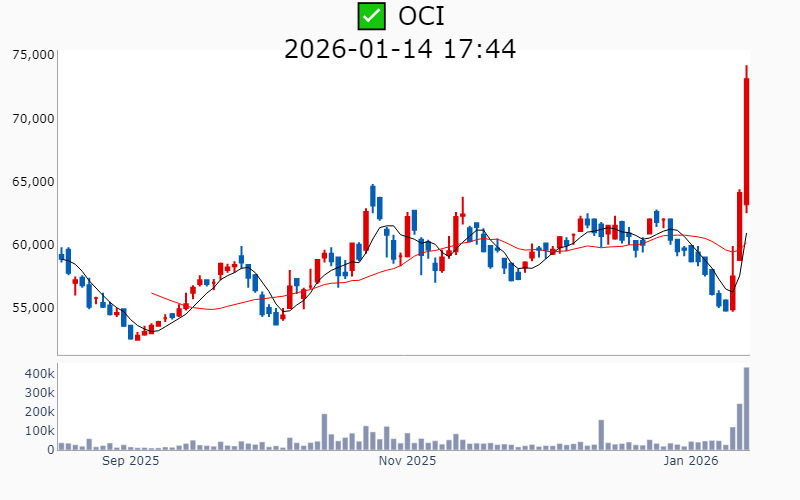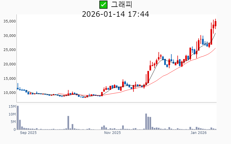 2026년 1월 14일 기준 주간 상승률 상위 15종목의 정보를 한눈에 볼 수 있도록 정리했습니다. 더욱 자세한 정보는 AWAKE 마켓브리핑 채널(https://t.me/awake_realtimeCheck)에서 확인하세요. 🔥 🚀 시장에서 강하고 수급이 집중되는 종목을 가장 빠르게 확인하고 싶다면, 마켓스타PRO⭐️ 소개(아래 링크를 클릭하세요)⭐️ https://fishy-trampoline-79b.notion.site/1d175164780f803e93abc1e53c38b42c ![]() ✅ 모베이스전자(시총 : 2,464억) 상승률(5D) : +123.3% 종목섹터 : 자동차/부품/ HEV - 현대차의 모베드 핵심 부품 공급 소식에 따른 수혜 기대감. - 전기차 전장 부품 시장에서의 입지 강화 전망. --------------------------------------------------- ![]() ✅ 뉴로메카(시총 : 4,934억) 상승률(5D) : +73.8% 종목섹터 : 로봇 - 포스코와의 30억 규모 로봇 자동화 계약 체결 및 성과 공유제 협약 체결. - 차세대 휴머노이드 및 스마트 액추에이터 국산화 진행 중이라는 기대감. --------------------------------------------------- ![]() ✅ 한화시스템(시총 : 16.8조) 상승률(5D) : +47.1% 종목섹터 : 방산/ 드론/UAM - 필리핀에 대한 5번째 전투 체계 공급과 미국 보잉 F-15 항전장비 공급 계약 체결로 해외 시장 진출 확대 기대감. - 제주 위성 제조 허브 구축 및 연간 위성 100기 생산 계획으로 우주산업 성장성 부각. --------------------------------------------------- ![]() ✅ 한화(시총 : 7.7조) 상승률(5D) : +45.4% 종목섹터 : 밸류업 지수 - 미국 필리조선소에 50억달러 추가 투자 및 유조선 11척 발주 소식 - AI기반 첨단 무기체계 공개로 자주국방 강화 기대감 --------------------------------------------------- ![]() ✅ 파워로직스(시총 : 1,607억) 상승률(5D) : +41.1% 종목섹터 : 자동차/부품/ HEV - 초전도체 테마와 관련된 연구 성과 재조명에 따른 투자자 관심 증가. - EV 및 ESS 배터리팩 사업 본격화로 인한 글로벌 시장 공략 기대감. --------------------------------------------------- ![]() ✅ 알멕(시총 : 2,560억) 상승률(5D) : +37.3% 종목섹터 : 우주항공 - 우주항공 분야에서의 성과 가시화 기대감. - 미국 완성차업체와의 대규모 부품공급 계약 체결 호재. --------------------------------------------------- ![]() ✅ 에스비비테크(시총 : 3,490억) 상승률(5D) : +35.4% 종목섹터 : 로봇 - 일본 독점 시장을 깨고 휴머노이드 로봇용 감속기 양산 돌입으로 인한 기대감. - 현대차그룹과 소형 모빌리티 플랫폼 핵심부품 공동 개발 소식. --------------------------------------------------- ![]() ✅ 우림피티에스(시총 : 2,977억) 상승률(5D) : +33.1% 종목섹터 : 신재생/ 로봇/ 재건/ 조선/에너지 - 보스턴 다이내믹스의 로봇 '아틀라스' 공개 소식과 핵심 부품 공급 기대감. - 로봇 및 산업용 기어박스 매출 증가와 관련 산업 전반의 상승세. --------------------------------------------------- ![]() ✅ 그래피(시총 : 3,749억) 상승률(5D) : +33.1% 종목섹터 : 의료기기 - 미국과 독일 등 글로벌 시장 진출 및 형상기억 교정장치 수출 증가 전망. - 세계 최초 형상기억 투명교정장치 개발로 치과산업의 혁신 기대감. --------------------------------------------------- ![]() ✅ 네오티스(시총 : 1,446억) 상승률(5D) : +33.0% 종목섹터 : 반도체 - AI 반도체 시대의 도래에 따른 마이크로비트 수요 증가 기대감. - 전기차 및 자율주행차 부품 관련주로서의 시장 확장 호재. --------------------------------------------------- ![]() ✅ 성호전자(시총 : 9,688억) 상승률(5D) : +33.0% 종목섹터 : 냉각 - 엔비디아 협력업체 에이디에스테크 인수 소식에 따른 AI 데이터센터 부품 수요 증가 기대감. - 광통신 핵심 기술 기업 인수로 인한 성장 스토리 변화 기대감. --------------------------------------------------- ![]() ✅ OCI(시총 : 5,739억) 상승률(5D) : +32.2% 종목섹터 : 신재생 - 반도체 호황으로 인한 수혜 기대감. - 폴리실리콘 실적 호전 및 태양광 시황 반등 기대감. --------------------------------------------------- ![]() ✅ KH바텍(시총 : 3,535억) 상승률(5D) : +32.2% 종목섹터 : 로봇/ 폴더블/모바일 - 삼성전자 '갤럭시Z폴드7' 판매 증가로 인한 폴더블폰 부품 수요 증가 기대감 - 레인보우로보틱스와 협동로봇 부품 공급 계약 체결로 로봇사업 확장 기대감 --------------------------------------------------- ![]() ✅ 케이엔알시스템(시총 : 2,892억) 상승률(5D) : +31.4% 종목섹터 : 로봇/ 원전 - 중수로 원전 해체 로봇 플랫폼 실증사업 우선협상대상자 선정 기대감 - 로봇용 하이브리드 액추에이터 개발 및 국내 최초 양산 소식 --------------------------------------------------- ![]() ✅ 한화갤러리아(시총 : 2,419억) 상승률(5D) : +30.5% 종목섹터 : 밸류업 지수 - 오너 일가의 대규모 지분 매각 소식과 함께 투자 확대 기대감. - 명품관 리뉴얼 및 프리미엄 라이프스타일 플랫폼 강화 전망. --------------------------------------------------- |