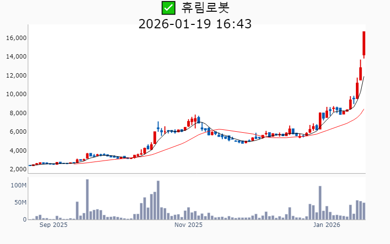 2026년 1월 19일 기준 주간 상승률 상위 15종목의 정보를 한눈에 볼 수 있도록 정리했습니다. 더욱 자세한 정보는 AWAKE 마켓브리핑 채널(https://t.me/awake_realtimeCheck)에서 확인하세요. 🔥 🚀 시장에서 강하고 수급이 집중되는 종목을 가장 빠르게 확인하고 싶다면, 마켓스타PRO⭐️ 소개(아래 링크를 클릭하세요)⭐️ https://fishy-trampoline-79b.notion.site/1d175164780f803e93abc1e53c38b42c ![]() ✅ 뉴로메카(시총 : 8,183억) 상승률(5D) : +115.5% 종목섹터 : 로봇 - 삼성의 지분 매입 소식에 따른 협동로봇 성장 기대감 - 포스코와의 로봇 자동화 프로젝트 중간 결과 발표에 따른 기술력 인정 호재 --------------------------------------------------- ![]() ✅ 유진로봇(시총 : 9,584억) 상승률(5D) : +106.3% 종목섹터 : 로봇/ 재건 - 사외이사의 이재명 캠프 합류 소식에 따른 주가 상승 기대감 - 정부 AI·로봇 전환 정책 본격화에 스마트팩토리 솔루션 부각 호재 --------------------------------------------------- ![]() ✅ 휴림로봇(시총 : 1.5조) 상승률(5D) : +77.5% 종목섹터 : 로봇 - 정부의 AI 및 로봇 산업 지원 강화 발표에 따른 로봇주 상승 기대감. - JP모건과 소프트뱅크 등의 로봇 투자 확대 소식에 따른 기술력 부각 호재. --------------------------------------------------- ![]() ✅ 한화갤러리아(시총 : 4,333억) 상승률(5D) : +77.1% 종목섹터 : 밸류업 지수 - 오너 일가의 대규모 지분 매각 소식에 따른 투자 확대 기대감. - 명품관 리뉴얼로 인한 실적 개선 전망. --------------------------------------------------- ![]() ✅ 옵티코어(시총 : 1,637억) 상승률(5D) : +60.9% 종목섹터 : 통신장비/6G/ 우주항공 - AI 데이터센터 병목 현상 해소 수혜주로 주목받으며 상승 기대감. - 엔비디아·메타의 800G 광트랜시버 공급 본격화 소식에 따른 호재. --------------------------------------------------- ![]() ✅ 현대약품(시총 : 4,221억) 상승률(5D) : +59.8% 종목섹터 : 해리스 - 바르는 탈모 치료제 효과에 대한 기대감이 주가 상승 요인. - 당뇨병 신약 HDNO-1605의 임상 성과 공개로 인한 긍정적 전망. --------------------------------------------------- ![]() ✅ 나우로보틱스(시총 : 3,731억) 상승률(5D) : +56.8% 종목섹터 : 로봇 - 글로벌 Z사로의 ODM 양산 시작과 차세대 정밀 감속기 내재화 전망 - K-휴머노이드 연합 합류를 통한 차세대 산업용 로봇 개발 호재 --------------------------------------------------- ![]() ✅ 아진엑스텍(시총 : 1,546억) 상승률(5D) : +53.1% 종목섹터 : 로봇 - 삼성전자와 애플에 로봇 기술을 공급하는 소식에 따른 기술력 부각. - 100% 무상증자 결정에 따른 주주가치 제고 기대감. --------------------------------------------------- ![]() ✅ 우리기술(시총 : 7,879억) 상승률(5D) : +52.9% 종목섹터 : 한덕수/ 원전 - 두산에너빌리티와 원전 MMIS용 DCS 독점 공급 MOU 체결 소식에 원전 관련주 상승 기대감. - 미국 뉴스케일 대형 수주 소식에 원전주 강세. --------------------------------------------------- ![]() ✅ 재영솔루텍(시총 : 6,862억) 상승률(5D) : +50.5% 종목섹터 : 대북 - 삼성전자 ADAS 1위 2.6조 빅딜에 따른 전장사업 진출 본격화 기대감 - 하이브리드 OIS 생산 확대와 3분기 영업이익 급증에 따른 호실적 전망 --------------------------------------------------- ![]() ✅ 피에스텍(시총 : 2,685억) 상승률(5D) : +48.8% 종목섹터 : 정원오/ 밸류업 지수 - 전력 인프라 교체와 스마트미터 시장 확대에 따른 수혜 기대감. - 중국 '골드카드'와의 전략적 파트너십 체결로 글로벌 시장 진출 가속화 전망. --------------------------------------------------- ![]() ✅ 현대무벡스(시총 : 3.2조) 상승률(5D) : +43.8% 종목섹터 : 로봇 - 현대차의 로봇에 50조 원 대규모 투자와 해외 수주 본격화로 실적 개선 기대감. - 물류 자동화 수요 증가에 따른 실적 개선 전망. --------------------------------------------------- ![]() ✅ 포스코DX(시총 : 6.4조) 상승률(5D) : +43.1% 종목섹터 : 로봇/ 2차전지 - 일본 '야스카와'와의 산업용 로봇 협력 추진 소식으로 스마트팩토리 기술력 부각. - 엔비디아와의 협력을 통한 '피지컬 AI' 개발체계 구축 기대감. --------------------------------------------------- ![]() ✅ 협진(시총 : 1,296억) 상승률(5D) : +37.2% 종목섹터 : - 앤로보틱스 지분 100% 인수로 글로벌 로봇시장 진출 기대감 - 로봇 산업 수혜 기대감 부각에 급등 --------------------------------------------------- ![]() ✅ 파워로직스(시총 : 1,845억) 상승률(5D) : +33.7% 종목섹터 : 자동차/부품/ HEV - 보스턴다이내믹스 로봇 '스팟2' 양산에 따른 배터리팩 공급 기대감. - 초전도체 테마 상승세에 따른 관련주로서의 주목. --------------------------------------------------- |
