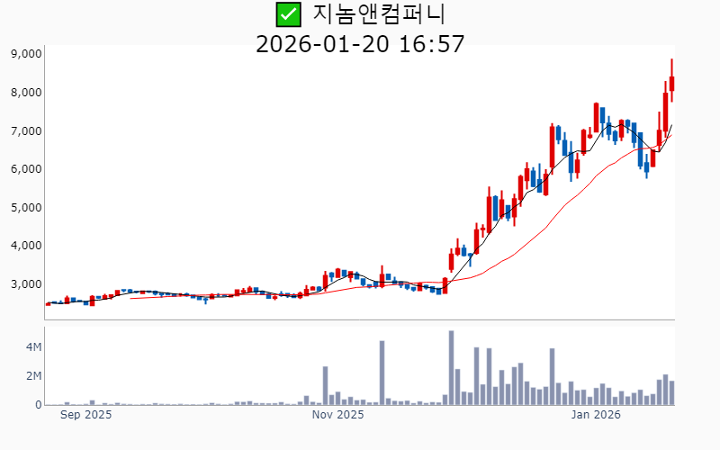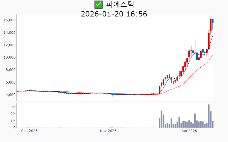 2026년 1월 20일 기준 주간 상승률 상위 15종목의 정보를 한눈에 볼 수 있도록 정리했습니다. 더욱 자세한 정보는 AWAKE 마켓브리핑 채널(https://t.me/awake_realtimeCheck)에서 확인하세요. 🔥 🚀 시장에서 강하고 수급이 집중되는 종목을 가장 빠르게 확인하고 싶다면, 마켓스타PRO⭐️ 소개(아래 링크를 클릭하세요)⭐️ https://fishy-trampoline-79b.notion.site/1d175164780f803e93abc1e53c38b42c ![]() ✅ 우리기술(시총 : 1.0조) 상승률(5D) : +100.5% 종목섹터 : 한덕수/ 원전 - 두산에너빌리티와 원전 MMIS용 DCS 독점 공급 MOU 체결 소식에 주목. - 미국 뉴스케일파워 최대 규모 SMR 수주 소식에 K-원전 성장 모멘텀 부각. --------------------------------------------------- ![]() ✅ 옵티코어(시총 : 2,127억) 상승률(5D) : +85.5% 종목섹터 : 통신장비/6G/ 우주항공 - AI 데이터센터용 800G 광트랜시버 공급 계약 체결 소식에 따른 기대감. - 엔비디아·메타의 800G 전환에 따른 AI 데이터센터 핵심 공급사로 부상 전망. --------------------------------------------------- ![]() ✅ 현대약품(시총 : 4,336억) 상승률(5D) : +62.0% 종목섹터 : 해리스 - 바르는 탈모 치료제의 효과와 판권 기대감으로 주가 상승. - 당뇨병 신약 'HDNO-1605'의 국제학술지 등재 소식에 따른 긍정적 전망. --------------------------------------------------- ![]() ✅ 러셀(시총 : 1,347억) 상승률(5D) : +59.4% 종목섹터 : 중국 반도체 - 자회사 러셀로보틱스의 현대차·SK하이닉스·KAI와의 협력 소식에 따른 미래 성장 기대감. - 로봇 수요 확대 전망에 따른 물류자동화 시스템 부각. --------------------------------------------------- ![]() ✅ 현대무벡스(시총 : 3.9조) 상승률(5D) : +58.7% 종목섹터 : 로봇 - 현대차의 로봇 사업에 대한 50조 원 규모의 대규모 투자 소식과 해외 수주 본격화 기대감. - 물류자동화 사업의 수주 확대로 인한 실적 개선 전망. --------------------------------------------------- ![]() ✅ 센서뷰(시총 : 1,323억) 상승률(5D) : +58.1% 종목섹터 : 통신장비/6G/ 우주항공/ 자율주행 - 전차 상부 능동 방호 시스템 개발 계약 체결 소식으로 주가 상승. - 6G 저궤도 위성통신 과제 수주 소식에 따른 긍정적 전망. --------------------------------------------------- ![]() ✅ 유진로봇(시총 : 1.2조) 상승률(5D) : +57.0% 종목섹터 : 로봇/ 재건 - 사외이사가 이재명 대선 캠프에 합류하면서 정치 테마주로 주목받기. - K-휴머노이드 연합 참여로 한국형 제조 특화 로봇 개발 기대감. --------------------------------------------------- ![]() ✅ 나라스페이스테크놀로지(시총 : 4,141억) 상승률(5D) : +48.4% 종목섹터 : 우주항공 - 미국 NASA의 아르테미스Ⅱ에 위성 탑재 소식에 따른 기술력 인정 호재 - 세계경제포럼 '100대 기술 선도 기업' 선정에 따른 우주 테마 수혜 기대감 --------------------------------------------------- ![]() ✅ 재영솔루텍(시총 : 8,113억) 상승률(5D) : +47.4% 종목섹터 : 대북 - 삼성전자와의 전장사업 진출 본격화 소식에 따른 기대감. - 3분기 영업이익 급증과 스마트폰 고급화 수혜 전망. --------------------------------------------------- ![]() ✅ 나우로보틱스(시총 : 4,483억) 상승률(5D) : +46.3% 종목섹터 : 로봇 - 글로벌 Z사향 로봇 양산 본격화 소식으로 인한 기대감. - K-휴머노이드 연합 신규 참가 소식에 따른 호재. --------------------------------------------------- ![]() ✅ 보성파워텍(시총 : 2,948억) 상승률(5D) : +45.0% 종목섹터 : 원전 - '팀코리아'의 체코 신규 원전 수주 소식에 따른 전력기자재 수혜 기대감 - 삼성물산의 글로벌 SMR 사업 확대에 핵심 공급사로 부각되며 급등 --------------------------------------------------- ![]() ✅ 피에스텍(시총 : 3,109억) 상승률(5D) : +44.7% 종목섹터 : 정원오/ 밸류업 지수 - 피에스텍의 3분기 영업이익이 전년 대비 24% 증가하며 실적 개선 기대감. - 중국 1위 '골드카드'와의 전략적 파트너십 체결로 스마트 계량기 시장 공략 가속화 전망. --------------------------------------------------- ![]() ✅ 씨피시스템(시총 : 1,580억) 상승률(5D) : +42.7% 종목섹터 : 로봇 - 대만 글로벌 파운드리에 클린룸 특화 케이블체인 공급 소식에 따른 기대감. - MASGA 핵심 조선사에 특수케이블체인 공급 계약 체결로 인한 수혜 전망. --------------------------------------------------- ![]() ✅ 대주산업(시총 : 1,453억) 상승률(5D) : +42.0% 종목섹터 : 정원오/ 세종시/ 식량자원 - 세종시 이전 관련 정치 테마 수혜주 부각 - 양축사료 안정 및 펫푸드 성장 기대감 --------------------------------------------------- ![]() ✅ 지놈앤컴퍼니(시총 : 2,762억) 상승률(5D) : +41.2% 종목섹터 : 바이오/헬스케어/ ADC - 면역항암제 ‘GENA-104’의 글로벌 기술이전 계약 체결 소식. - 신규 타깃 치료제 비임상 데이터 공개로 기술수출 기대감. --------------------------------------------------- |