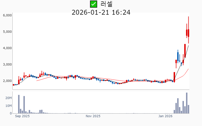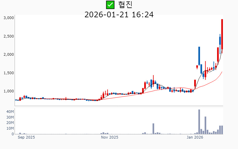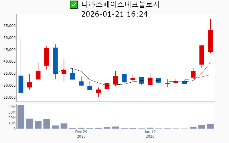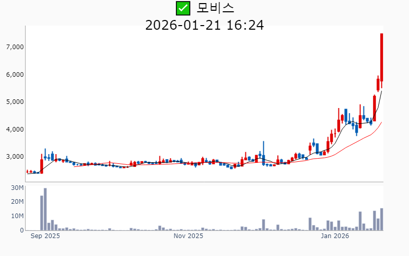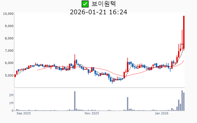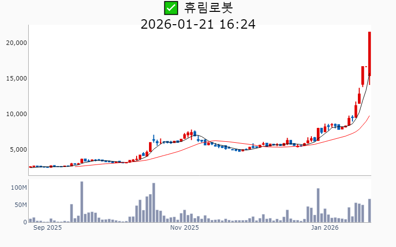 2026년 1월 21일 기준 주간 상승률 상위 15종목의 정보를 한눈에 볼 수 있도록 정리했습니다. 더욱 자세한 정보는 AWAKE 마켓브리핑 채널(https://t.me/awake_realtimeCheck)에서 확인하세요. 🔥 🚀 시장에서 강하고 수급이 집중되는 종목을 가장 빠르게 확인하고 싶다면, 마켓스타PRO⭐️ 소개(아래 링크를 클릭하세요)⭐️ https://fishy-trampoline-79b.notion.site/1d175164780f803e93abc1e53c38b42c ![]() ✅ 우리기술(시총 : 1.3조) 상승률(5D) : +120.3% 종목섹터 : 한덕수/ 원전 - 미국 뉴스케일파워의 최대 규모 SMR 수주 소식에 따른 K-원전 성장 모멘텀 부각. - 두산에너빌리티와 원전 MMIS용 DCS 독점 공급 MOU 체결로 인한 독점 지위 강화 기대감. --------------------------------------------------- ![]() ✅ 뉴로메카(시총 : 1.1조) 상승률(5D) : +104.3% 종목섹터 : 로봇 - 삼성의 지분 매입 소식과 협동로봇 글로벌 유니콘 지향 기대감. - 포스코와의 전기강판 로봇 자동화 프로젝트 진행 및 핵심 공급사 등록 호재. --------------------------------------------------- ![]() ✅ 휴림로봇(시총 : 2.0조) 상승률(5D) : +92.5% 종목섹터 : 로봇 - 정부의 AI 및 로봇 산업 지원 강화 발표로 인한 로봇주 상승 기대감. - 자율주행 휠체어 개발 및 상용화 MOU 체결로 기술 협업 호재. --------------------------------------------------- ![]() ✅ 협진(시총 : 1,752억) 상승률(5D) : +82.1% 종목섹터 : - 앤로보틱스 지분 100% 인수로 글로벌 로봇시장 진출 기대감 - AI 기술력 강화로 인한 성장 동력 확보 전망 --------------------------------------------------- ![]() ✅ 옵티코어(시총 : 2,313억) 상승률(5D) : +74.1% 종목섹터 : 통신장비/6G/ 우주항공 - AI 데이터센터용 800G 광트랜시버 공급 계약 체결로 인한 수혜 기대감. - 엔비디아·메타와의 협업을 통한 AI 데이터센터 핵심 공급사 부상 전망. --------------------------------------------------- ![]() ✅ 모비스(시총 : 1,876억) 상승률(5D) : +73.8% 종목섹터 : - 현대차그룹의 CES 2026에서 로봇 및 신기술 공개로 인한 시장 기대감 - 로봇 부품 사업 강화와 글로벌 협력 확대에 따른 성장 잠재력 부각 --------------------------------------------------- ![]() ✅ 센서뷰(시총 : 1,524억) 상승률(5D) : +71.7% 종목섹터 : 통신장비/6G/ 우주항공/ 자율주행 - 방산 수주 급증과 차세대 대드론 기술 개발에 따른 방산 혁신기업 선정 기대감. - 6G 저궤도 위성통신 과제 수주로 인한 성장 전망. --------------------------------------------------- ![]() ✅ 나라스페이스테크놀로지(시총 : 5,380억) 상승률(5D) : +69.7% 종목섹터 : 우주항공 - 세계경제포럼 '100대 기술 선도 기업' 선정 소식에 따른 기술력 인정 기대감 - 나사 아르테미스Ⅱ에 위성 탑재 소식에 따른 우주산업 성장 기대감 --------------------------------------------------- ![]() ✅ 러셀(시총 : 1,626억) 상승률(5D) : +67.1% 종목섹터 : 중국 반도체/ 로봇 - 자회사 러셀로보틱스의 IPO 목표 발표와 함께 로봇·반도체·우주 산업 밸류 체인 참여 기대감. - 물류자동화 시스템 수요 증가 전망에 따른 로봇 관련주 부각. --------------------------------------------------- ![]() ✅ 현대무벡스(시총 : 4.3조) 상승률(5D) : +65.8% 종목섹터 : 로봇 - 현대차의 로봇 분야에 대한 50조 대규모 투자 소식과 해외 수주 본격화에 따른 실적 기대감. - 로봇 및 AI 기술을 활용한 물류자동화 사업 확장과 대규모 수주 임박 전망. --------------------------------------------------- ![]() ✅ 유진로봇(시총 : 1.2조) 상승률(5D) : +59.1% 종목섹터 : 로봇/ 재건 - 사외이사의 이재명 대선캠프 합류 소식으로 인한 테마주 부각 - 정부 주관 ‘K-휴머노이드 연합’ 참여로 인한 미래 성장 기대감 --------------------------------------------------- ![]() ✅ 한신기계(시총 : 1,381억) 상승률(5D) : +52.0% 종목섹터 : 원전 - 신규 원전 검토 소식과 관련하여 원자력 공기압축기 공급사로 부각된 점이 주가 상승의 주요 요인. - 원전 산업 확장 기대감 속에서 원전 밸류체인의 일환으로 주목받은 점. --------------------------------------------------- ![]() ✅ 브이원텍(시총 : 1,204억) 상승률(5D) : +51.6% 종목섹터 : 로봇/ 디스플레이/OLED - 삼성전자 트라이폴드폰 출시 기대감에 부품주 상승 - 자회사 시스콘로보틱스의 '로봇계 노벨상' 차페크상 수상에 따른 기술혁신 기대감 --------------------------------------------------- ![]() ✅ 보성파워텍(시총 : 3,832억) 상승률(5D) : +48.9% 종목섹터 : 원전 - AI 전력 사용량 급등 전망 및 HVDC 전력망 확장에 따른 수혜 기대감. - 글로벌 원전 시장 진출 및 전력 인프라 수혜 전망. --------------------------------------------------- ![]() ✅ 효성티앤씨(시총 : 1.3조) 상승률(5D) : +42.9% 종목섹터 : - 중국 스판덱스 설비들의 구조조정과 경쟁업체 파산으로 인한 반사이익 기대감. - 글로벌 스판덱스 수급 밸런스 개선 및 가격 인상 가시화 전망. --------------------------------------------------- |