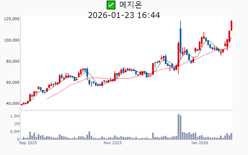 2026년 1월 23일 기준 주간 상승률 상위 15종목의 정보를 한눈에 볼 수 있도록 정리했습니다. 더욱 자세한 정보는 AWAKE 마켓브리핑 채널(https://t.me/awake_realtimeCheck)에서 확인하세요. 🔥 🚀 시장에서 강하고 수급이 집중되는 종목을 가장 빠르게 확인하고 싶다면, 마켓스타PRO⭐️ 소개(아래 링크를 클릭하세요)⭐️ https://fishy-trampoline-79b.notion.site/1d175164780f803e93abc1e53c38b42c ![]() ✅ 큐리오시스(시총 : 4,273억) 상승률(5D) : +43.6% 종목섹터 : 바이오/헬스케어 - 글로벌 시장 진출 가속화와 글로벌 파트너십 확대 기대감 - 바이오 자동화 분야에서의 강력한 시장 확장성 및 성장 전망 --------------------------------------------------- ![]() ✅ 해성에어로보틱스(시총 : 2,261억) 상승률(5D) : +43.6% 종목섹터 : 로봇 - 소프트뱅크 로봇 사업 인수 소식에 글로벌 로봇 감속기 기술력 부각. - 현대차 로봇 양산 로드맵 공개에 따른 로봇 감속기 공급 수혜 기대감. --------------------------------------------------- ![]() ✅ 컨텍(시총 : 3,111억) 상승률(5D) : +42.7% 종목섹터 : 우주항공 - 우주산업의 '다운스트림' 핵심 파트너로 부상하며 정책 수혜 본격화 기대감. - GSaaS 네트워크 솔루션 신규 고객 확대에 따른 수익성 개선 가시화 전망. --------------------------------------------------- ![]() ✅ 카카오페이(시총 : 7.1조) 상승률(5D) : +41.3% 종목섹터 : 가상자산/STO/핀테크/ 이커머스/광고 - 스테이블코인 법제화 기대감에 따른 금융 혁신 기대감. - AI 결제 혁신을 위한 핵심 기술 공개로 인한 미래 성장 전망. --------------------------------------------------- ![]() ✅ 삼화전기(시총 : 2,894억) 상승률(5D) : +38.6% 종목섹터 : 희토류/ 데이터센터/ 전력설비 - 데이터센터용 S-CAP 수요 확대에 따른 주가 상승 기대감. - 글로벌 자동차 전장화에 따른 유럽·북미 수출 증가 전망. --------------------------------------------------- ![]() ✅ 덕산하이메탈(시총 : 3,721억) 상승률(5D) : +36.5% 종목섹터 : 우주항공/ 드론/UAM - 삼성과 테슬라의 22조 동맹에 고성능 패키지 공급사로서 수혜 기대감. - SK와 삼성의 AI칩 매출 증가 전망에 따른 첨단 패키징 공급사로 부각된 수혜 기대감. --------------------------------------------------- ![]() ✅ 나라스페이스테크놀로지(시총 : 5,894억) 상승률(5D) : +35.8% 종목섹터 : 우주항공 - 미국 NASA의 최고 등급 기술력 인정 및 170조 시장 수혜 기대감 - 세계경제포럼 '100대 기술 선도 기업' 선정 호재 --------------------------------------------------- ![]() ✅ HLB이노베이션(시총 : 4,318억) 상승률(5D) : +31.2% 종목섹터 : HLB - 자회사 베리스모의 고형암 CAR-T 치료제 임상 순항 및 FDA 신약 허가 가능성 부각. - 전임상 결과에서 '킴리아보다 좋은 효능' 발표에 CAR-T 강자 부상 기대감. --------------------------------------------------- ![]() ✅ 다날(시총 : 5,150억) 상승률(5D) : +30.7% 종목섹터 : 가상자산/STO/핀테크/ 음원 서비스 - 세계 1위 바이낸스와의 독점 파트너십 체결로 결제 솔루션 제공 기대감. - 스테이블코인 관련 기술 및 인재 확보로 시장 표준 선점 전망. --------------------------------------------------- ![]() ✅ 삼천당제약(시총 : 7.4조) 상승률(5D) : +30.2% 종목섹터 : 비만 치료제/ 바이오/헬스케어 - 아일리아 바이오시밀러 국내 및 해외 허가 취득 소식에 따른 기대감. - 다이이찌 산쿄와의 '먹는 비만약' 공동개발 파트너십 계약 체결 호재. --------------------------------------------------- ![]() ✅ 메지온(시총 : 3.3조) 상승률(5D) : +29.7% 종목섹터 : 바이오/헬스케어 - 글로벌 임상3상 중간분석에서 확인된 데이터 안정성으로 인한 기대감. - '유데나필'의 미국 특허 취득과 폰탄치료제 독점권 강화 전망. --------------------------------------------------- ![]() ✅ 헥토파이낸셜(시총 : 2,096억) 상승률(5D) : +29.7% 종목섹터 : 가상자산/STO/핀테크/ 이커머스/광고 - 스테이블코인 결제 사업 진출과 서클 블록체인 '아크' 참여로 핀테크 혁신 기대감. - 중국 이페이와의 협력을 통한 한·중 크로스보더 결제망 구축 호재. --------------------------------------------------- ![]() ✅ 한농화성(시총 : 3,573억) 상승률(5D) : +29.5% 종목섹터 : 전고체 배터리 - 한농화성, 전고체 배터리 상용화 기대감에 따른 주가 상승세 - 휴머노이드 로봇 대량양산에 필수적인 전고체 전지 전망에 따른 강세 --------------------------------------------------- ![]() ✅ NHN KCP(시총 : 5,715억) 상승률(5D) : +29.5% 종목섹터 : 가상자산/STO/핀테크 - 원화 스테이블코인 도입 기대감. - 네이버·업비트 스테이블코인 동맹에 결제 인프라 공급 기대감. --------------------------------------------------- ![]() ✅ 슈프리마(시총 : 2,573억) 상승률(5D) : +29.4% 종목섹터 : 클라우드/보안 - 현대차 그룹 미래 로봇 생태계 핵심 보안 파트너로 선정된 기대감 - 얼굴인증 솔루션 수요 증가로 인한 실적 개선 전망 --------------------------------------------------- |