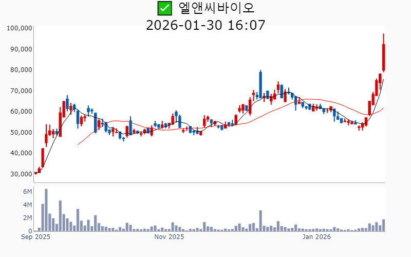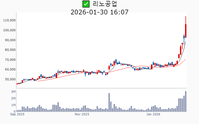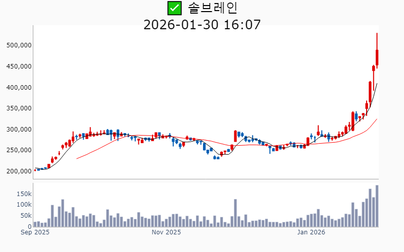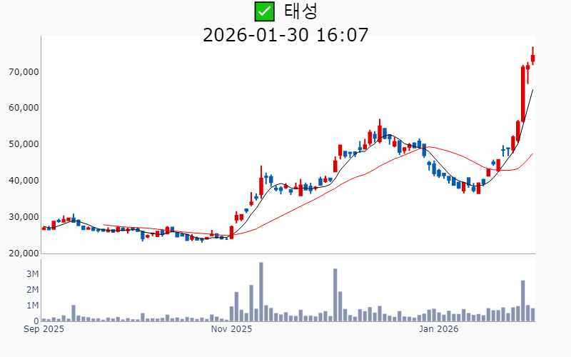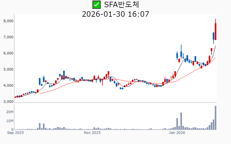 2026년 1월 30일 기준 주간 상승률 상위 15종목의 정보를 한눈에 볼 수 있도록 정리했습니다. 더욱 자세한 정보는 AWAKE 마켓브리핑 채널(https://t.me/awake_realtimeCheck)에서 확인하세요. 🔥 🚀 시장에서 강하고 수급이 집중되는 종목을 가장 빠르게 확인하고 싶다면, 마켓스타PRO⭐️ 소개(아래 링크를 클릭하세요)⭐️ https://fishy-trampoline-79b.notion.site/1d175164780f803e93abc1e53c38b42c ![]() ✅ 현대바이오(시총 : 9,700억) 상승률(5D) : +80.3% 종목섹터 : 바이오/헬스케어 - 현대바이오가 세계 최초 경구용 뎅기열 치료제의 해외 임상 승인을 받으며 기대감 상승. - 베트남 북·남부 국립병원에서 뎅기열 신약의 제형 변경 승인이 이루어지며 글로벌 진출 가속화 전망. --------------------------------------------------- ![]() ✅ 삼표시멘트(시총 : 7,122억) 상승률(5D) : +72.3% 종목섹터 : 재건/ 건설/주택 - 성수동 부지에 초고층 복합시설 개발 기대감에 급등 - 건축자재 및 재개발·재건축 확대에 따른 공급 모멘텀 부각 --------------------------------------------------- ![]() ✅ 에코프로에이치엔(시총 : 9,239억) 상승률(5D) : +52.0% 종목섹터 : 2차전지 - 온실가스 감축을 위한 3세대 촉매 개발 성공 소식 - 2차전지 관련주 상승과 함께 재점화된 수혜 기대감 --------------------------------------------------- ![]() ✅ 피에스케이(시총 : 1.6조) 상승률(5D) : +45.0% 종목섹터 : 반도체 - 미·중 반도체 갈등으로 인한 시장 점유율 확대 전망. - TSMC의 중국산 장비 배제로 인한 PR 스트립 장비 수혜 기대감. --------------------------------------------------- ![]() ✅ SFA반도체(시총 : 1.1조) 상승률(5D) : +44.3% 종목섹터 : 반도체 - 글로벌 패키징 수요 정조준과 포트폴리오 재편 본격화로 기술 경쟁력 강화 기대감. - 고객사 삼성전자와의 동반 성장 기대감에 따른 긍정적 전망. --------------------------------------------------- ![]() ✅ 태성(시총 : 2.2조) 상승률(5D) : +43.8% 종목섹터 : 반도체 - 국내 대기업과의 복합동박 소재 공급 계약 체결 소식. - 복합동박 기반 고성능 배터리 공동 개발 진행 기대감. --------------------------------------------------- ![]() ✅ 솔브레인(시총 : 3.5조) 상승률(5D) : +42.7% 종목섹터 : 반도체/ 유리기판 - 반도체 업황 개선과 낸드 시장 회복 기대감. - 미국 테일러시 신규 공장 설립으로 성장 동력 확보 전망. --------------------------------------------------- ![]() ✅ 모베이스(시총 : 1,569억) 상승률(5D) : +39.8% 종목섹터 : 자동차/부품 - 현대차 '모베드'에 핵심 부품 공급 예정 소식에 따른 기대감. - 사우디 도시개발 프로젝트 참여 소식에 따른 호재. --------------------------------------------------- ![]() ✅ 제주반도체(시총 : 1.3조) 상승률(5D) : +39.4% 종목섹터 : 중국 반도체/ 반도체 - SK하이닉스와의 협력을 통한 LPDDR4X 생산 소식과 온디바이스 AI 경쟁 수혜 전망. - AI 반도체 설계 국가전략기술 지정으로 메모리 설계 기술 부각. --------------------------------------------------- ![]() ✅ 리노공업(시총 : 7.0조) 상승률(5D) : +39.2% 종목섹터 : 반도체 - AI 디바이스 확대와 반도체 수요 증가에 따른 직접 수혜 기대감. - 양산용 테스트 소켓 점유율 확대로 인한 수익성 호전 전망. --------------------------------------------------- ![]() ✅ 쎄트렉아이(시총 : 2.0조) 상승률(5D) : +38.3% 종목섹터 : 우주항공 - 스페이스X 상장 기대감으로 위성 관련주에 대한 밸류에이션 재평가. - 유럽 기관과의 장기 위성 영상 공급 계약 체결로 시장 확대 전망. --------------------------------------------------- ![]() ✅ 엘앤씨바이오(시총 : 1.9조) 상승률(5D) : +38.1% 종목섹터 : 미용 - 스킨부스터 '리투오' 품귀 현상과 제품 확산 기대감. - 중국 시장 진출 본격화와 해외 매출 확대 기대감. --------------------------------------------------- ![]() ✅ 한스바이오메드(시총 : 4,329억) 상승률(5D) : +37.4% 종목섹터 : 미용 - ECM 스킨부스터 '셀르디엠' 출시로 인한 매출 급증 기대감. - 중국 동종골 이식재 수출 개시로 해외 시장 선점 가속화 전망. --------------------------------------------------- ![]() ✅ 솔브레인홀딩스(시총 : 1.2조) 상승률(5D) : +36.5% 종목섹터 : 반도체/ 2차전지 - 반도체 업황 회복 및 이차전지 전해액 사업의 성장 기대감. - 미국 자회사 지분 매각으로 인한 대규모 자금 확보 호재. --------------------------------------------------- ![]() ✅ 뷰웍스(시총 : 2,742억) 상승률(5D) : +35.5% 종목섹터 : 의료기기 - 의료영상 처리 소프트웨어 'VXvue'가 미국 FDA 승인을 획득하며 기술력 신뢰도 상승 기대감. - 화성사업장 증축 완료로 연간 생산 능력 2배 이상 증가 전망. --------------------------------------------------- |