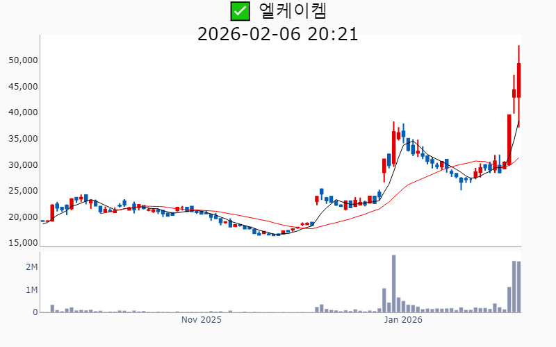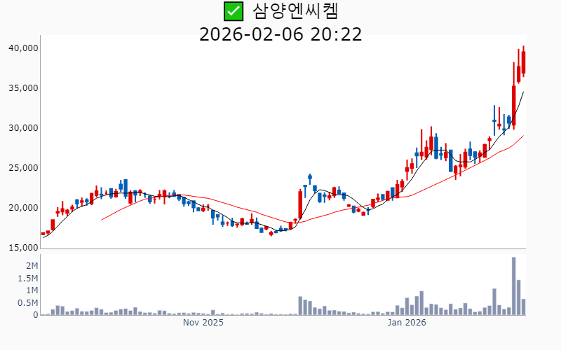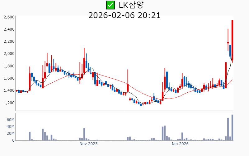 2026년 2월 6일 기준 주간 상승률 상위 15종목의 정보를 한눈에 볼 수 있도록 정리했습니다. 더욱 자세한 정보는 AWAKE 마켓브리핑 채널(https://t.me/awake_realtimeCheck)에서 확인하세요. 🔥 🚀 시장에서 강하고 수급이 집중되는 종목을 가장 빠르게 확인하고 싶다면, 마켓스타PRO⭐️ 소개(아래 링크를 클릭하세요)⭐️ https://fishy-trampoline-79b.notion.site/1d175164780f803e93abc1e53c38b42c ![]() ✅ 삼표시멘트(시총 : 2.0조) 상승률(5D) : +79.9% 종목섹터 : 자산가치/ 재건/ 건설/주택 - 성수동 부지 초고층 복합개발 사업 기대감. - 재개발·재건축 확대로 건축자재 수요 증가 전망. --------------------------------------------------- ![]() ✅ LK삼양(시총 : 1,380억) 상승률(5D) : +78.1% 종목섹터 : 희토류/ 우주항공 - 스페이스X와의 협력 및 AI 기반 별추적기 개발 성공으로 우주항공산업 테마 상승세 부각. - 열화상 카메라를 활용한 화재 감지 솔루션 확대로 인한 성장 기대감. --------------------------------------------------- ![]() ✅ 엘케이켐(시총 : 2,784억) 상승률(5D) : +73.2% 종목섹터 : - AI 반도체 관련 수요 증가와 차세대 태양전지 기술 부각으로 인한 주가 상승 기대감 - 하프늄 프리커서 국산화 및 디스플레이와 배터리 소재 시장 도전 소식에 따른 긍정적 전망 --------------------------------------------------- ![]() ✅ HD현대에너지솔루션(시총 : 9,173억) 상승률(5D) : +59.5% 종목섹터 : 신재생 - 차세대 태양전지 상용화 기술 개발 성공 및 글로벌 시장 진출 가속화 기대감. - 중국 태양광 수출 부가세 환급 폐지로 인한 공급 과잉 해소 신호 발생. --------------------------------------------------- ![]() ✅ 한화솔루션(시총 : 6.3조) 상승률(5D) : +54.7% 종목섹터 : 신재생 - 미국과 국내 태양광 시장 수요 증가와 공급 축소로 인한 뚜렷한 반등 기대감. - LG에너지솔루션과 ESS 계약 체결로 인한 긍정적 전망. --------------------------------------------------- ![]() ✅ 선익시스템(시총 : 7,608억) 상승률(5D) : +50.9% 종목섹터 : 메타버스/XR/ 디스플레이/OLED - 중국 BOE와의 8.6세대 OLED 장비 연속 수주 가시화에 따른 실적 성장 기대감. - 페로브스카이트 증착장비 수주 확장으로 인한 신성장 동력 확보 전망. --------------------------------------------------- ![]() ✅ 모두투어(시총 : 3,154억) 상승률(5D) : +45.0% 종목섹터 : 여행/카지노/ 여행/카지노/레져 - 스테이블코인 결제를 도입하며 디지털 금융 전환 선도 기대감. - 크루즈 시장 진출로 새로운 수익원 창출 전망. --------------------------------------------------- ![]() ✅ 미래에셋벤처투자(시총 : 1.2조) 상승률(5D) : +41.2% 종목섹터 : 우주항공/ 창투사 - 스페이스X 상장 추진 소식에 따른 기대감 - 150조 국민성장펀드 출범에 따른 직수혜 기대감 --------------------------------------------------- ![]() ✅ 코데즈컴바인(시총 : 1,156억) 상승률(5D) : +38.3% 종목섹터 : 대북 - 미국과 북한의 대화 가능성 및 정부의 북한 관련 진전 발언에 따른 남북경협주 강세 - 통일부의 남북회담본부 부활 및 북미 정상회담 가능성에 대한 기대감 --------------------------------------------------- ![]() ✅ 메디아나(시총 : 4,417억) 상승률(5D) : +36.4% 종목섹터 : 의료AI/ 감염병 - 무선환자감시장치의 해외 시장 진출과 역대 최대 실적 기대감. - 유럽 CE MDR 인증 획득 및 웨어러블 심전도 제품 상용화 호재. --------------------------------------------------- ![]() ✅ 스피어(시총 : 1.3조) 상승률(5D) : +36.1% 종목섹터 : 우주항공 - 스페이스X와의 10년간 1.5조 규모 장기 공급 계약 체결 소식 - 우주항공 발사업체에 특수합금 수주 호재 --------------------------------------------------- ![]() ✅ 네패스아크(시총 : 2,766억) 상승률(5D) : +35.6% 종목섹터 : 반도체 - 삼성의 대규모 수주 소식에 따른 반도체 관련주 상승 호재 - AI 정책 기대감과 엑시노스 파트너 이력 부각에 따른 주가 상승 전망 --------------------------------------------------- ![]() ✅ SGC에너지(시총 : 4,085억) 상승률(5D) : +34.7% 종목섹터 : 자산가치/ 저탄소/ 밸류업 지수 - AI 데이터센터 구축 및 운영 계획 발표로 인한 성장 기대감. - REC 발급량 증가와 관련 정책 강화에 따른 수혜 전망. --------------------------------------------------- ![]() ✅ 제이에스링크(시총 : 1.0조) 상승률(5D) : +32.6% 종목섹터 : 희토류 - 미국 내 희토류 영구자석 공장 설립 및 미 정부 지원금 기대감. - 포스코인터내셔널과의 희토류 영구자석 사업 협력 MOU 체결 호재. --------------------------------------------------- ![]() ✅ 삼양엔씨켐(시총 : 4,120억) 상승률(5D) : +32.6% 종목섹터 : 유리기판 - 고부가가치 제품 포트폴리오 전환과 역대 최대 실적 달성 기대감 - 중국과 일본 간 외교 갈등 속 반도체 소재 국산화 수혜 전망 --------------------------------------------------- |