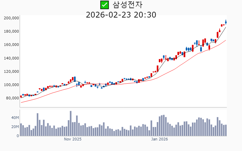 2026년 2월 23일 기준 기관 매수 상위 20종목의 정보를 한눈에 볼 수 있도록 정리했습니다. 더욱 자세한 정보는 AWAKE 신고가 모니터링 채널(https://t.me/awake_realtimeCheck)에서 확인하세요. 🔥 🚀 시장에서 강하고 수급이 집중되는 종목을 가장 빠르게 확인하고 싶다면, 마켓스타PRO⭐️ 플러스 소개(아래 링크를 클릭하세요)⭐️⭐️ https://fishy-trampoline-79b.notion.site/1-1bd75164780f8043a665e84ea5e17548 ![]() ✅ 더존비즈온(시총 : 2.9조) 기관매수 : +1,568억 - 금융투자 : +2,025억 - 사모 : +204억 - 기타금융 : 0억 - 은행 : 0억 - 보험 : -3억 외인매매 : -236억 --------------------------------------------------- ![]() ✅ 삼성전자(시총 : 1125.3조) 기관매수 : +1,446억 - 금융투자 : +2,871억 - 기타금융 : 0억 - 은행 : -32억 - 사모 : -150억 - 연기금 : -292억 외인매매 : -11,477억 --------------------------------------------------- ![]() ✅ LG전자(시총 : 20.1조) 기관매수 : +536억 - 사모 : +223억 - 금융투자 : +186억 - 연기금 : +111억 - 투신 : +13억 - 보험 : +1억 외인매매 : +369억 --------------------------------------------------- ![]() ✅ 삼양식품(시총 : 8.8조) 기관매수 : +390억 - 사모 : +233억 - 금융투자 : +97억 - 투신 : +55억 - 보험 : +11억 - 은행 : +5억 외인매매 : +253억 --------------------------------------------------- ![]() ✅ DB손해보험(시총 : 13.3조) 기관매수 : +301억 - 연기금 : +164억 - 금융투자 : +107억 - 투신 : +77억 - 보험 : +3억 - 은행 : 0억 외인매매 : -347억 --------------------------------------------------- ![]() ✅ 코리안리(시총 : 2.7조) 기관매수 : +198억 - 사모 : +156억 - 금융투자 : +31억 - 보험 : +10억 - 투신 : +0억 - 은행 : +0억 외인매매 : -237억 --------------------------------------------------- ![]() ✅ 산일전기(시총 : 4.6조) 기관매수 : +178억 - 연기금 : +66억 - 투신 : +41억 - 사모 : +32억 - 금융투자 : +31억 - 보험 : +5억 외인매매 : +477억 --------------------------------------------------- ![]() ✅ SK이노베이션(시총 : 21.6조) 기관매수 : +160억 - 연기금 : +202억 - 보험 : +28억 - 투신 : +28억 - 사모 : +9억 - 금융투자 : +5억 외인매매 : +90억 --------------------------------------------------- ![]() ✅ 이수페타시스(시총 : 7.4조) 기관매수 : +151억 - 사모 : +89억 - 연기금 : +48억 - 투신 : +33억 - 보험 : +4억 - 기타금융 : 0억 외인매매 : -281억 --------------------------------------------------- ![]() ✅ HD한국조선해양(시총 : 32.0조) 기관매수 : +141억 - 금융투자 : +61억 - 연기금 : +41억 - 투신 : +32억 - 사모 : +4억 - 은행 : +1억 외인매매 : +412억 --------------------------------------------------- ![]() ✅ 두산(시총 : 17.0조) 기관매수 : +138억 - 투신 : +105억 - 금융투자 : +45억 - 사모 : +45억 - 은행 : 0억 - 기타금융 : 0억 외인매매 : +303억 --------------------------------------------------- ![]() ✅ 대한항공(시총 : 9.3조) 기관매수 : +135억 - 금융투자 : +48억 - 사모 : +36억 - 연기금 : +24억 - 보험 : +19억 - 투신 : +6억 외인매매 : +344억 --------------------------------------------------- ![]() ✅ LS ELECTRIC(시총 : 20.7조) 기관매수 : +122억 - 금융투자 : +108억 - 투신 : +16억 - 사모 : +7억 - 연기금 : +0억 - 기타금융 : 0억 외인매매 : -98억 --------------------------------------------------- ![]() ✅ SK텔레콤(시총 : 17.4조) 기관매수 : +120억 - 금융투자 : +165억 - 은행 : +0억 - 기타금융 : 0억 - 연기금 : -7억 - 보험 : -7억 외인매매 : -185억 --------------------------------------------------- ![]() ✅ KB금융(시총 : 62.9조) 기관매수 : +110억 - 금융투자 : +197억 - 기타금융 : +167억 - 은행 : +0억 - 사모 : -38억 - 보험 : -46억 외인매매 : -206억 --------------------------------------------------- ![]() ✅ 현대건설(시총 : 14.3조) 기관매수 : +106억 - 금융투자 : +221억 - 은행 : +1억 - 기타금융 : 0억 - 보험 : -14억 - 사모 : -28억 외인매매 : +21억 --------------------------------------------------- ![]() ✅ 한미반도체(시총 : 19.1조) 기관매수 : +104억 - 금융투자 : +52억 - 연기금 : +45억 - 보험 : +4억 - 사모 : +2억 - 기타금융 : 0억 외인매매 : +426억 --------------------------------------------------- ![]() ✅ 한국카본(시총 : 2.0조) 기관매수 : +103억 - 투신 : +35억 - 연기금 : +33억 - 보험 : +15억 - 금융투자 : +12억 - 사모 : +6억 외인매매 : -20억 --------------------------------------------------- ![]() ✅ 코나아이(시총 : 9,408억) 기관매수 : +99억 - 연기금 : +59억 - 투신 : +14억 - 사모 : +9억 - 보험 : +8억 - 금융투자 : +7억 외인매매 : -13억 --------------------------------------------------- ![]() ✅ 대한조선(시총 : 3.1조) 기관매수 : +95억 - 사모 : +52억 - 연기금 : +19억 - 투신 : +13억 - 금융투자 : +7억 - 보험 : +3억 외인매매 : +110억 🚀 시장에서 강하고 수급이 집중되는 종목을 가장 빠르게 확인하고 싶다면, 마켓스타PRO⭐️ 소개(아래 링크를 클릭하세요)⭐️⭐️ https://fishy-trampoline-79b.notion.site/1-1bd75164780f8043a665e84ea5e17548 --------------------------------------------------- |
