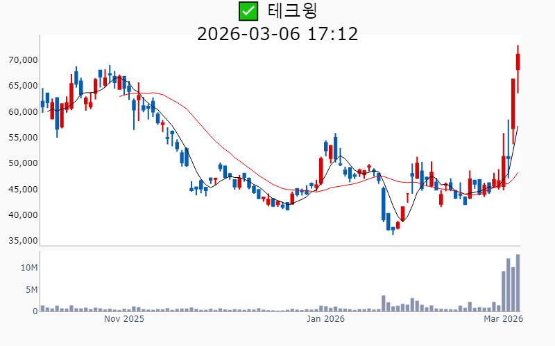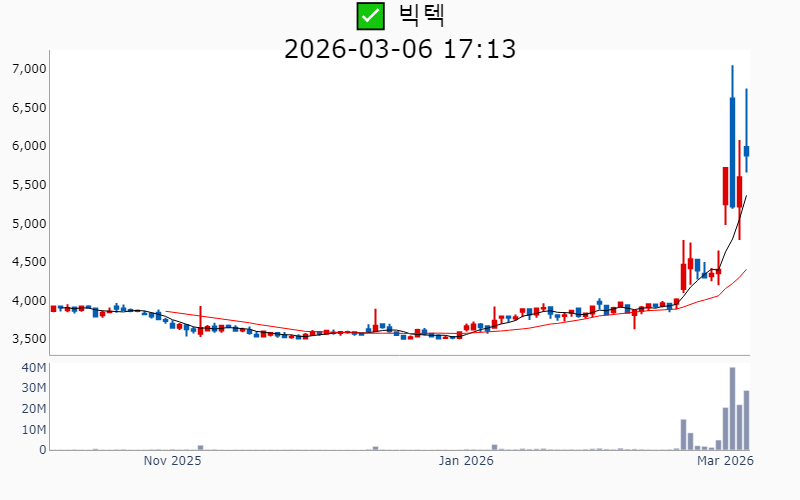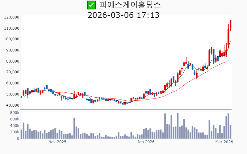 2026년 3월 6일 기준 주간 상승률 상위 15종목의 정보를 한눈에 볼 수 있도록 정리했습니다. 더욱 자세한 정보는 AWAKE 마켓브리핑 채널(https://t.me/awake_realtimeCheck)에서 확인하세요. 🔥 🚀 시장에서 강하고 수급이 집중되는 종목을 가장 빠르게 확인하고 싶다면, 마켓스타PRO⭐️ 소개(아래 링크를 클릭하세요)⭐️ https://fishy-trampoline-79b.notion.site/1d175164780f803e93abc1e53c38b42c ![]() ✅ LIG넥스원(시총 : 16.8조) 상승률(5D) : +60.7% 종목섹터 : 로봇/ 드론/UAM/ 방산 - '천궁-II' 요격 미사일의 실전 투입과 성공적인 시험 발사로 방산 수출 기대감. - 이란 전쟁 관련 방산 수요 지속 증가 전망. --------------------------------------------------- ![]() ✅ 흥구석유(시총 : 4,905억) 상승률(5D) : +56.7% 종목섹터 : 유가 - 국제유가 급등과 중동 지역의 지정학적 긴장 고조에 따른 정유주 강세로 인한 수혜 기대감. - 이란 사태로 인한 시장 불안 속에서 정유업계의 구조적 강점 부각. --------------------------------------------------- ![]() ✅ 인트론바이오(시총 : 2,207억) 상승률(5D) : +55.2% 종목섹터 : 바이오/헬스케어 - SAL200의 글로벌 입증을 통해 기존 항생제를 뛰어넘는 '완전 멸균' 효과를 입증하며 빅파마와 파트너십 구축에 성공한 점. - 124억 규모의 자사주 소각 결정으로 인한 주주가치 제고 기대감. --------------------------------------------------- ![]() ✅ 테크윙(시총 : 2.5조) 상승률(5D) : +52.6% 종목섹터 : 반도체 - HBM 검사 장비가 SK하이닉스의 최종 퀄리티 테스트를 통과한 소식에 따른 기대감. - 큐브프로버 수주량 증가와 본업 회복에 따른 투자 포인트 강화. --------------------------------------------------- ![]() ✅ 중앙에너비스(시총 : 1,921억) 상승률(5D) : +49.9% 종목섹터 : 유가 - 중동 리스크 고조와 국제유가 급등으로 인한 에너지 관련주 강세. - 서울·경기·인천 지역 주유소 운영을 통한 매출 증가 기대감. --------------------------------------------------- ![]() ✅ 대성에너지(시총 : 3,492억) 상승률(5D) : +47.6% 종목섹터 : 유가 - 호르무즈 해협 봉쇄로 인한 LNG 공급 차질 우려에 따른 도시가스 수요 증가 기대감. - 그룹 차원의 통합 인사관리 시스템 가동으로 디지털 전환 가속화 전망. --------------------------------------------------- ![]() ✅ 성호전자(시총 : 2.2조) 상승률(5D) : +45.5% 종목섹터 : 냉각 - 에이디에스테크 인수를 통해 CPO 밸류체인에서 핵심적인 역할을 맡게 된 점. - 엔비디아 협력사 인수로 AI 관련 부품 및 인프라 사업 강화 기대감. --------------------------------------------------- ![]() ✅ 한국석유(시총 : 3,573억) 상승률(5D) : +42.6% 종목섹터 : 유가 - 친환경 건자재 개발 및 폐 유기용제 리싸이클 사업에 대한 지속적인 투자로 인한 성장 기대감. - 울산 등 국내 주요 생산거점을 통한 안정적인 공급망 확보에 따른 경쟁력 강화 전망. --------------------------------------------------- ![]() ✅ 흥아해운(시총 : 6,768억) 상승률(5D) : +42.0% 종목섹터 : 해운 - 호르무즈 해협 봉쇄 우려로 인한 해운 운임 상승 기대감. - 글로벌 공급망 긴장으로 인한 해운업계 반사이익 전망. --------------------------------------------------- ![]() ✅ 한화시스템(시총 : 28.5조) 상승률(5D) : +36.7% 종목섹터 : 방산/ 드론/UAM - 우주 사업 가치 반영 및 목표가 상향 조정에 따른 긍정적 투자 심리. - 방산 매출 성장 본격화와 필리 조선소 턴어라운드 기대감. --------------------------------------------------- ![]() ✅ 퍼스텍(시총 : 3,765억) 상승률(5D) : +34.2% 종목섹터 : 재건/ 방산 - 중동 전쟁으로 인한 방산 수요 증가와 K-9, T-50 무기체계 부품의 부각. - 드론 및 무인기 기술력 재조명과 관련 산업의 전반적 수혜 기대감. --------------------------------------------------- ![]() ✅ 한일사료(시총 : 1,635억) 상승률(5D) : +34.1% 종목섹터 : 식량자원 - 중동 지역의 긴장 상황으로 인해 비료 공급망 우려가 발생하며 관련주로 주목받음. - 기존 배합사료 기술과 ESG 전략을 통한 성장 모멘텀 확보. --------------------------------------------------- ![]() ✅ 빅텍(시총 : 1,605억) 상승률(5D) : +33.6% 종목섹터 : 방산 - 중동 긴장 격화에 따른 방공 수요 확대 기대감과 전자전 장비 기술 부각. - 미국 GaN 반도체 기업과의 협력으로 차세대 방산 핵심 기술 확보 전망. --------------------------------------------------- ![]() ✅ 피에스케이홀딩스(시총 : 2.4조) 상승률(5D) : +33.0% 종목섹터 : 반도체 - HBM 및 CoWoS 기술 투자 확대에 따른 수혜 기대감. - 반도체 후공정 장비 시장의 경쟁력 강화 전망. --------------------------------------------------- ![]() ✅ 에이치엠넥스(시총 : 1,872억) 상승률(5D) : +30.2% 종목섹터 : 반도체/ 금융/지주/밸류업 - 광온도센서의 마이크론 퀄테스트 통과로 차세대 반도체 핵심기술력 부각. - 자회사의 용인 반도체 클러스터 입주로 반도체 슈퍼사이클 기대감. --------------------------------------------------- |