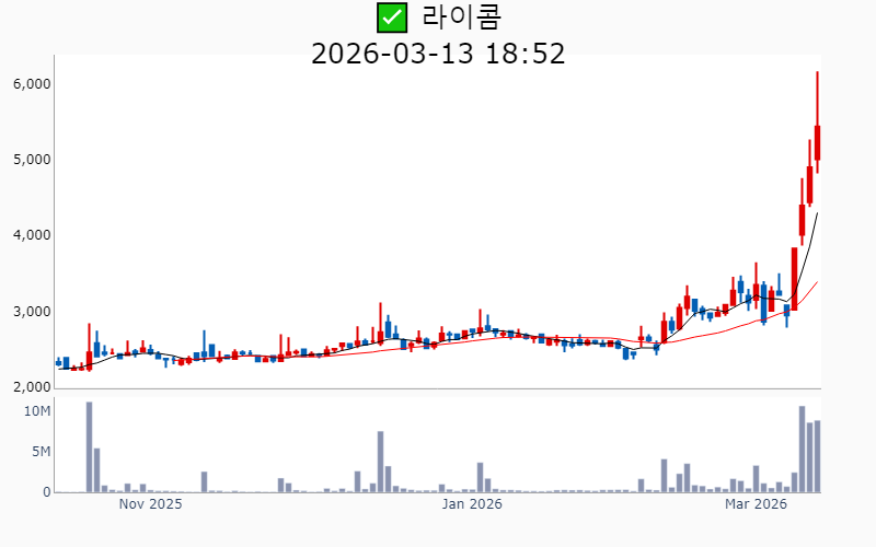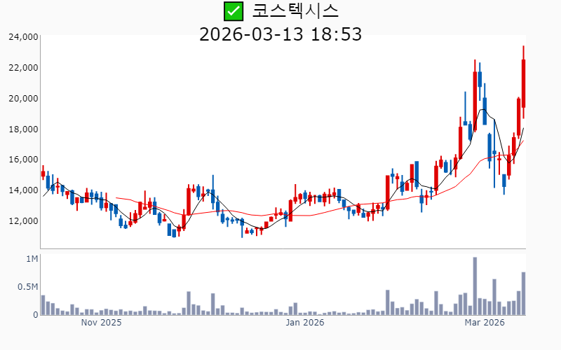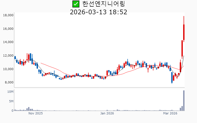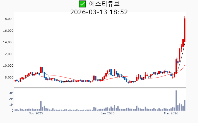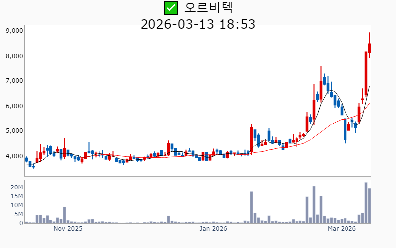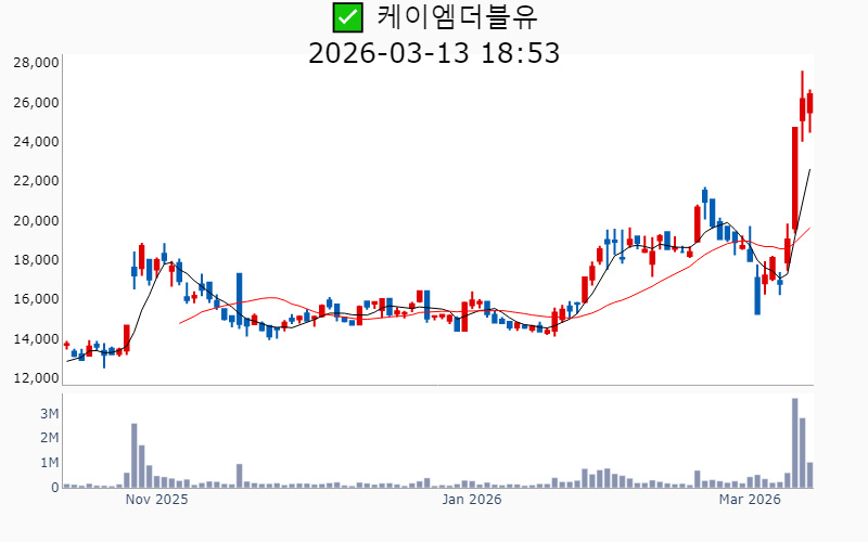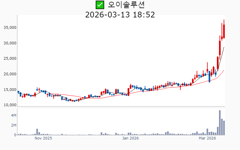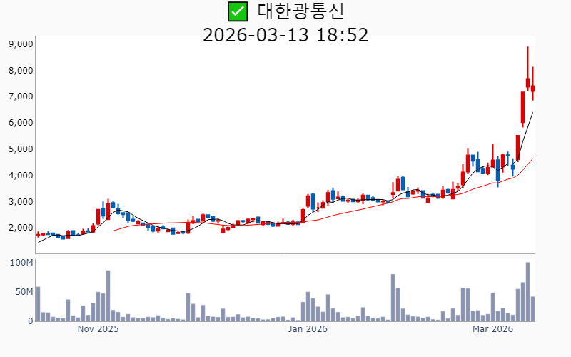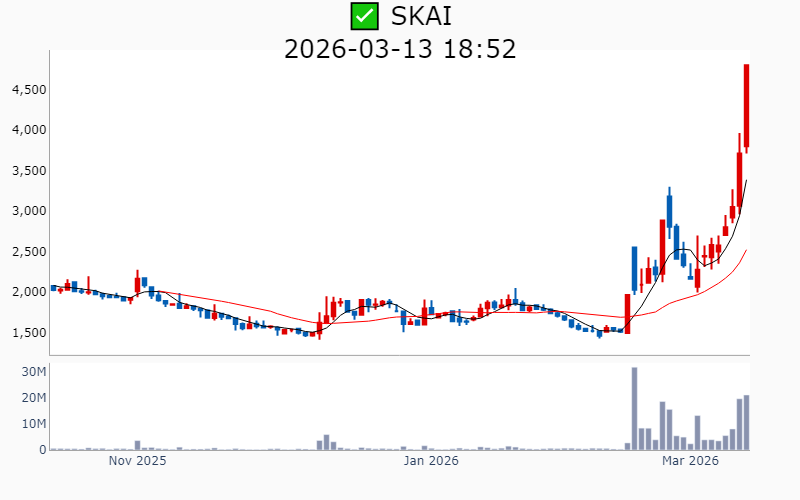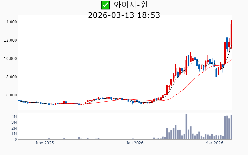 2026년 3월 13일 기준 주간 상승률 상위 15종목의 정보를 한눈에 볼 수 있도록 정리했습니다. 더욱 자세한 정보는 AWAKE 마켓브리핑 채널(https://t.me/awake_realtimeCheck)에서 확인하세요. 🔥 🚀 시장에서 강하고 수급이 집중되는 종목을 가장 빠르게 확인하고 싶다면, 마켓스타PRO⭐️ 소개(아래 링크를 클릭하세요)⭐️ https://fishy-trampoline-79b.notion.site/1d175164780f803e93abc1e53c38b42c ![]() ✅ 에치에프알(시총 : 3,673억) 상승률(5D) : +87.8% 종목섹터 : 통신장비/6G - AI 인프라 사이클 도래와 함께 통신장비주로서의 성장 기대감이 부각. - 5G 및 6G 네트워크 기술 개발과 관련된 기대감. --------------------------------------------------- ![]() ✅ 한선엔지니어링(시총 : 2,542억) 상승률(5D) : +87.6% 종목섹터 : 조선/에너지/ 수소 - 수소발전 수혜에 대한 기대감과 함께 3500억달러 대미투자특별법 국회 통과에 따른 조선협력 수혜 기대감. - ESS 핵심 제품 공급 확대와 신규시설투자 완료로 인한 외형 성장 전망. --------------------------------------------------- ![]() ✅ SKAI(시총 : 1,850억) 상승률(5D) : +86.4% 종목섹터 : AI S/W - 엔비디아 GTC 2026 주제발표에서 SKAI의 기술적 성과와 협업이 주목받으며 AI 사업 확장 기대감. - SKAI인텔리전스의 LVMH와의 협력 및 GTC 2026 공식 세션 발표로 리테일 산업 내 디지털 트윈 인프라 전략 강화 전망. --------------------------------------------------- ![]() ✅ 라이콤(시총 : 1,500억) 상승률(5D) : +84.7% 종목섹터 : 통신장비/6G/ 자율주행 - AI 데이터센터 전력 효율성을 높이는 초소형 증폭기에 대한 글로벌 빅테크의 호평에 따른 기술력 인정. - 방위산업 및 AI 데이터센터 인프라 기반의 흑자 전환 성공으로 신사업 확장 기대감. --------------------------------------------------- ![]() ✅ 오이솔루션(시총 : 3,849억) 상승률(5D) : +80.5% 종목섹터 : 통신장비/6G - 북미 통신망 투자 수혜 기대감에 따른 기대감. - AI 데이터센터용 차세대 광 네트워크 솔루션 공개에 따른 긍정적 전망. --------------------------------------------------- ![]() ✅ 아모센스(시총 : 2,803억) 상승률(5D) : +76.7% 종목섹터 : 수소 - 블룸에너지향 SOFC 세라믹 기판의 초도 물량 출하 완료에 따른 구조적 성장 기대감. - AI 데이터센터 특수로 인해 SOFC 핵심 부품 매출 3배 폭증 전망. --------------------------------------------------- ![]() ✅ 대한광통신(시총 : 1.0조) 상승률(5D) : +74.3% 종목섹터 : 통신장비/6G/ 전력설비 - 글로벌 빅테크 AI 데이터센터에 대한 광케이블 1차 물량 수주로 인한 기대감. - AI 데이터센터 매출 본격화와 관련된 주가 재평가 전망. --------------------------------------------------- ![]() ✅ 에스티큐브(시총 : 9,858억) 상승률(5D) : +72.7% 종목섹터 : 바이오/헬스케어 - 면역항암제 '넬마스토바트'의 대장암 2상 임상 데이터 공개에 대한 기대감. - 글로벌 제약사와의 병용 임상 논의 진행에 따른 기술수출 가속화 전망. --------------------------------------------------- ![]() ✅ 오르비텍(시총 : 2,684억) 상승률(5D) : +65.3% 종목섹터 : 원전/ 방사능 오염 - 세계 최초 방사성 콘크리트 폐기물 감용기술 상용화 성공에 따른 기대감. - 한수원 방폐물 용역 수주로 원전 해체 시장 공략 강화. --------------------------------------------------- ![]() ✅ 엠케이전자(시총 : 3,072억) 상승률(5D) : +62.5% 종목섹터 : 중국 반도체 - SK하이닉스에 재활용 본딩와이어 단독 공급 확정으로 인한 기대감. - 신사업에서의 흑자 전환과 테스트용 핵심 소재 시장 공략 가속에 따른 긍정적 전망. --------------------------------------------------- ![]() ✅ 쏠리드(시총 : 7,534억) 상승률(5D) : +61.2% 종목섹터 : 통신장비/6G - 북미 지역 DAS 공급계약 체결에 따른 수혜 기대감. - 오픈랜 시장의 본격 개화로 인한 성장 전망. --------------------------------------------------- ![]() ✅ 에이치엠넥스(시총 : 3,191억) 상승률(5D) : +58.6% 종목섹터 : 반도체/ 금융/지주/밸류업 - 자회사 SMI의 '광온도센서'가 마이크론 퀄테스트를 통과하며 반도체 공정 핵심 부품 국산화 성공. - 반도체 슈퍼사이클 진입 기대감. --------------------------------------------------- ![]() ✅ 코스텍시스(시총 : 1,556억) 상승률(5D) : +57.8% 종목섹터 : 희토류 - AI 데이터센터 확산 속 고출력 광통신 패키지 기술 고도화로 인한 성장 기대감. - 5G 테마 상승세와 연계된 기술력 부각. --------------------------------------------------- ![]() ✅ 케이엠더블유(시총 : 1.1조) 상승률(5D) : +54.4% 종목섹터 : 통신장비/6G - 미국 5G SA 본격화에 따른 수혜 기대감. - 업황 개선 기대감 증폭 및 실적 선반영 효과. --------------------------------------------------- ![]() ✅ 와이지-원(시총 : 4,389억) 상승률(5D) : +51.4% 종목섹터 : 로봇 - 텅스텐 가격의 급등에 따른 재고 자산 가치 상승 효과 - JKL파트너스의 투자 수익권 진입으로 인한 긍정적 시장 반응 --------------------------------------------------- |