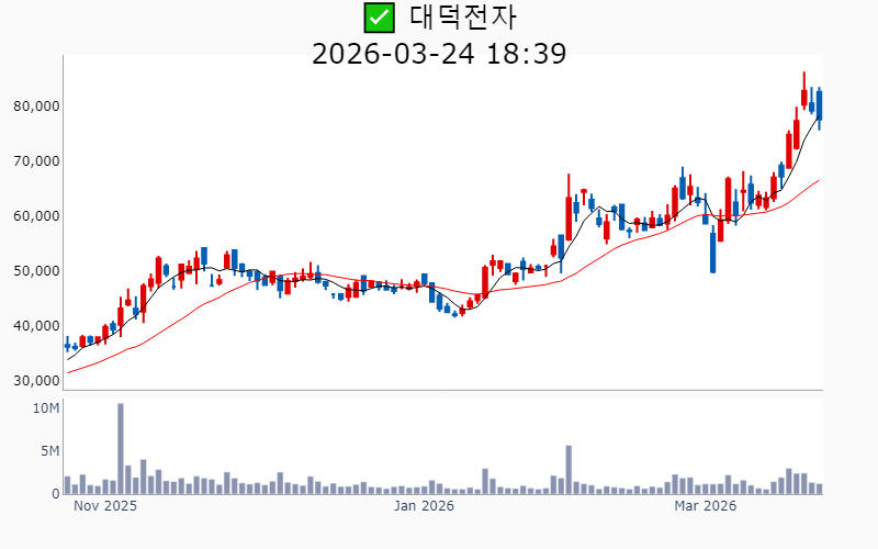 2026년 3월 24일 기준 기관 매수 상위 20종목의 정보를 한눈에 볼 수 있도록 정리했습니다. 더욱 자세한 정보는 AWAKE 신고가 모니터링 채널(https://t.me/awake_realtimeCheck)에서 확인하세요. 🔥 🚀 시장에서 강하고 수급이 집중되는 종목을 가장 빠르게 확인하고 싶다면, 마켓스타PRO⭐️ 플러스 소개(아래 링크를 클릭하세요)⭐️⭐️ https://fishy-trampoline-79b.notion.site/1-1bd75164780f8043a665e84ea5e17548 ![]() ✅ SK하이닉스(시총 : 665.0조) 기관매수 : +5,177억 - 금융투자 : +4,910억 - 사모 : +385억 - 기타금융 : +4억 - 은행 : -8억 - 연기금 : -25억 외인매매 : -2,880억 --------------------------------------------------- ![]() ✅ LG에너지솔루션(시총 : 83.3조) 기관매수 : +707억 - 금융투자 : +281억 - 연기금 : +270억 - 투신 : +55억 - 보험 : +48억 - 사모 : +46억 외인매매 : +557억 --------------------------------------------------- ![]() ✅ KB금융(시총 : 54.2조) 기관매수 : +336억 - 금융투자 : +221억 - 기타금융 : +145억 - 연기금 : +10억 - 은행 : 0억 - 사모 : -3억 외인매매 : -375억 --------------------------------------------------- ![]() ✅ HD현대일렉트릭(시총 : 32.9조) 기관매수 : +211억 - 금융투자 : +153억 - 투신 : +114억 - 사모 : +12억 - 연기금 : +0억 - 기타금융 : +0억 외인매매 : -174억 --------------------------------------------------- ![]() ✅ LG화학(시총 : 20.5조) 기관매수 : +159억 - 금융투자 : +136억 - 연기금 : +19억 - 보험 : +7억 - 투신 : +0억 - 기타금융 : +0억 외인매매 : +211억 --------------------------------------------------- ![]() ✅ SK(시총 : 23.9조) 기관매수 : +124억 - 투신 : +103억 - 금융투자 : +28억 - 연기금 : +0억 - 은행 : 0억 - 기타금융 : -1억 외인매매 : -11억 --------------------------------------------------- ![]() ✅ CJ제일제당(시총 : 3.1조) 기관매수 : +120억 - 투신 : +107억 - 연기금 : +15억 - 사모 : +2억 - 보험 : +0억 - 기타금융 : 0억 외인매매 : +4억 --------------------------------------------------- ![]() ✅ POSCO홀딩스(시총 : 26.3조) 기관매수 : +118억 - 금융투자 : +124억 - 연기금 : +50억 - 은행 : +0억 - 기타금융 : 0억 - 보험 : -1억 외인매매 : +195억 --------------------------------------------------- ![]() ✅ HD한국조선해양(시총 : 25.9조) 기관매수 : +113억 - 금융투자 : +95억 - 연기금 : +31억 - 기타금융 : 0억 - 은행 : 0억 - 투신 : 0억 외인매매 : -186억 --------------------------------------------------- ![]() ✅ DB손해보험(시총 : 12.3조) 기관매수 : +113억 - 연기금 : +82억 - 금융투자 : +25억 - 보험 : +6억 - 사모 : +0억 - 은행 : 0억 외인매매 : -79억 --------------------------------------------------- ![]() ✅ SK이노베이션(시총 : 17.9조) 기관매수 : +104억 - 금융투자 : +75억 - 연기금 : +32억 - 사모 : +16억 - 기타금융 : 0억 - 은행 : 0억 외인매매 : -29억 --------------------------------------------------- ![]() ✅ LIG넥스원(시총 : 14.1조) 기관매수 : +97억 - 금융투자 : +59억 - 투신 : +32억 - 연기금 : +8억 - 보험 : +3억 - 은행 : +0억 외인매매 : -55억 --------------------------------------------------- ![]() ✅ LG전자(시총 : 17.8조) 기관매수 : +95억 - 금융투자 : +96억 - 사모 : +16억 - 투신 : +6억 - 은행 : 0억 - 기타금융 : 0억 외인매매 : +50억 --------------------------------------------------- ![]() ✅ CJ(시총 : 5.7조) 기관매수 : +79억 - 투신 : +161억 - 사모 : +9억 - 보험 : +3억 - 은행 : +0억 - 기타금융 : 0억 외인매매 : -1억 --------------------------------------------------- ![]() ✅ 기업은행(시총 : 18.4조) 기관매수 : +75억 - 금융투자 : +39억 - 연기금 : +34억 - 보험 : +2억 - 은행 : +0억 - 기타금융 : 0억 외인매매 : -178억 --------------------------------------------------- ![]() ✅ LS(시총 : 8.5조) 기관매수 : +67억 - 투신 : +160억 - 금융투자 : +8억 - 은행 : 0억 - 기타금융 : 0억 - 보험 : -6억 외인매매 : -249억 --------------------------------------------------- ![]() ✅ NH투자증권(시총 : 11.7조) 기관매수 : +57억 - 금융투자 : +36억 - 보험 : +13억 - 연기금 : +7억 - 투신 : +1억 - 기타금융 : 0억 외인매매 : -94억 --------------------------------------------------- ![]() ✅ KT&G(시총 : 17.4조) 기관매수 : +52억 - 금융투자 : +43억 - 연기금 : +19억 - 은행 : 0억 - 기타금융 : 0억 - 보험 : -1억 외인매매 : -15억 --------------------------------------------------- ![]() ✅ LG이노텍(시총 : 6.9조) 기관매수 : +45억 - 투신 : +27억 - 연기금 : +11억 - 사모 : +7억 - 보험 : +3억 - 기타금융 : 0억 외인매매 : -63억 --------------------------------------------------- ![]() ✅ 대덕전자(시총 : 3.9조) 기관매수 : +35억 - 사모 : +19억 - 투신 : +16억 - 금융투자 : +5억 - 은행 : +0억 - 기타금융 : 0억 외인매매 : -47억 🚀 시장에서 강하고 수급이 집중되는 종목을 가장 빠르게 확인하고 싶다면, 마켓스타PRO⭐️ 소개(아래 링크를 클릭하세요)⭐️⭐️ https://fishy-trampoline-79b.notion.site/1-1bd75164780f8043a665e84ea5e17548 --------------------------------------------------- |