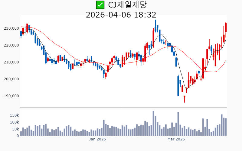 2026년 4월 6일 기준 외국인 매수 상위 20종목의 정보를 한눈에 볼 수 있도록 정리했습니다. 더욱 자세한 정보는 AWAKE 신고가 모니터링 채널(https://t.me/awake_realtimeCheck )에서 확인하세요. 🔥 🚀 시장에서 강하고 수급이 집중되는 종목을 가장 빠르게 확인하고 싶다면, 마켓스타PRO⭐️ 소개(아래 링크를 클릭하세요)⭐️⭐️ https://fishy-trampoline-79b.notion.site/1d175164780f803e93abc1e53c38b42c ![]() ✅ BNK금융지주(시총 : 5.5조) 외인매수 : +46억 기관매매 : -80억 - 연기금 : -59억 - 투신 : -28억 - 금융투자 : +15억 - 보험 : -6억 --------------------------------------------------- ![]() ✅ CJ제일제당(시총 : 3.4조) 외인매수 : +23억 기관매매 : +147억 - 연기금 : +80억 - 금융투자 : +35억 - 투신 : +19억 - 보험 : +7억 --------------------------------------------------- ![]() ✅ DB손해보험(시총 : 11.2조) 외인매수 : +8억 기관매매 : -11억 - 연기금 : -37억 - 금융투자 : +17억 - 투신 : +13억 - 사모 : -3억 --------------------------------------------------- ![]() ✅ F&F(시총 : 2.3조) 외인매수 : +6억 기관매매 : -8억 - 사모 : -6억 - 투신 : -1억 - 금융투자 : +1억 - 보험 : 0억 --------------------------------------------------- ![]() ✅ CJ(시총 : 5.6조) 외인매수 : +5억 기관매매 : -18억 - 금융투자 : +28억 - 사모 : -19억 - 보험 : -14억 - 연기금 : -10억 --------------------------------------------------- ![]() ✅ CJ대한통운(시총 : 2.4조) 외인매수 : +3억 기관매매 : +1억 - 금융투자 : +1억 - 연기금 : +1억 - 보험 : -1억 - 투신 : 0억 --------------------------------------------------- ![]() ✅ E1(시총 : 6,695억) 외인매수 : +1억 기관매매 : 0억 - 투신 : 0억 - 금융투자 : 0억 - 은행 : +0억 - 기타금융 : 0억 --------------------------------------------------- ![]() ✅ DB증권(시총 : 5,145억) 외인매수 : +1억 기관매매 : -1억 - 금융투자 : -1억 - 연기금 : +0억 - 기타금융 : 0억 - 은행 : 0억 --------------------------------------------------- ![]() ✅ DSR제강(시총 : 718억) 외인매수 : +1억 기관매매 : 0억 - 기타금융 : 0억 - 은행 : 0억 - 연기금 : 0억 - 보험 : 0억 --------------------------------------------------- ![]() ✅ BGF리테일(시총 : 2.3조) 외인매수 : +0억 기관매매 : +2억 - 연기금 : +2억 - 투신 : +0억 - 보험 : 0억 - 사모 : 0억 --------------------------------------------------- ![]() ✅ DI동일(시총 : 4,212억) 외인매수 : +0억 기관매매 : -3억 - 연기금 : -1억 - 금융투자 : 0억 - 사모 : 0억 - 보험 : 0억 --------------------------------------------------- ![]() ✅ CR홀딩스(시총 : 2,272억) 외인매수 : +0억 기관매매 : 0억 - 연기금 : 0억 - 기타금융 : 0억 - 은행 : 0억 - 보험 : 0억 --------------------------------------------------- ![]() ✅ DSR(시총 : 677억) 외인매수 : +0억 기관매매 : 0억 - 금융투자 : 0억 - 기타금융 : 0억 - 은행 : 0억 - 연기금 : 0억 --------------------------------------------------- ![]() ✅ DRB동일(시총 : 1,058억) 외인매수 : +0억 기관매매 : +0억 - 금융투자 : +0억 - 기타금융 : 0억 - 은행 : 0억 - 연기금 : 0억 --------------------------------------------------- ![]() ✅ CS홀딩스(시총 : 875억) 외인매수 : 0억 기관매매 : +0억 - 금융투자 : +0억 - 기타금융 : 0억 - 은행 : 0억 - 연기금 : 0억 --------------------------------------------------- ![]() ✅ CJ씨푸드(시총 : 954억) 외인매수 : 0억 기관매매 : 0억 - 기타금융 : 0억 - 은행 : 0억 - 연기금 : 0억 - 보험 : 0억 --------------------------------------------------- ![]() ✅ DB(시총 : 3,319억) 외인매수 : 0억 기관매매 : 0억 - 금융투자 : 0억 - 기타금융 : 0억 - 은행 : 0억 - 연기금 : 0억 --------------------------------------------------- ![]() ✅ DYP(시총 : 565억) 외인매수 : 0억 기관매매 : 0억 - 금융투자 : 0억 - 기타금융 : 0억 - 은행 : 0억 - 연기금 : 0억 --------------------------------------------------- ![]() ✅ CJ CGV(시총 : 7,741억) 외인매수 : 0억 기관매매 : +0억 - 금융투자 : +0억 - 기타금융 : 0억 - 은행 : 0억 - 연기금 : 0억 --------------------------------------------------- ![]() ✅ BYC(시총 : 2,917억) 외인매수 : 0억 기관매매 : +1억 - 사모 : +1억 - 기타금융 : 0억 - 은행 : 0억 - 연기금 : 0억 🚀 시장에서 강하고 수급이 집중되는 종목을 가장 빠르게 확인하고 싶다면, 마켓스타PRO⭐️ 소개(아래 링크를 클릭하세요)⭐️⭐️ https://fishy-trampoline-79b.notion.site/1-1bd75164780f8043a665e84ea5e17548 --------------------------------------------------- |