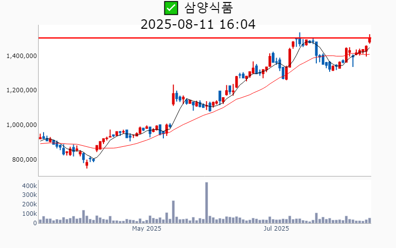 - '불닭'의 인기 상승과 함께 해외 시장 침투 가능성이 커지고 있으며, 목표 주가는 135만원에서 180만원으로 상향 조정되었습니다.