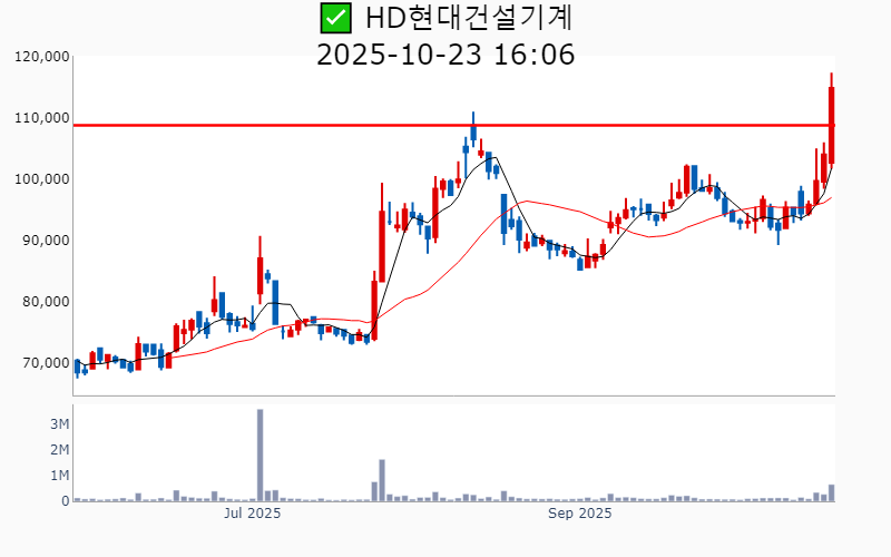 (+10.5%/ 735억) HD현대건설기계(역사적)
