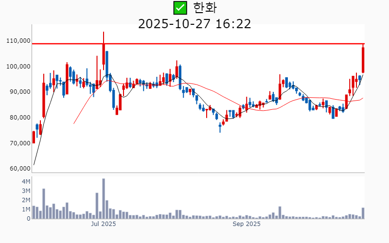 (+13.1%/ 1,250억) 한화(역사적)