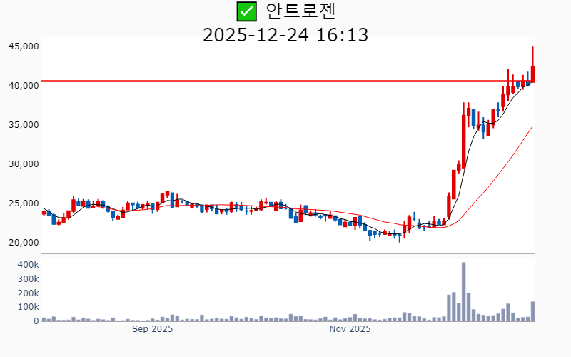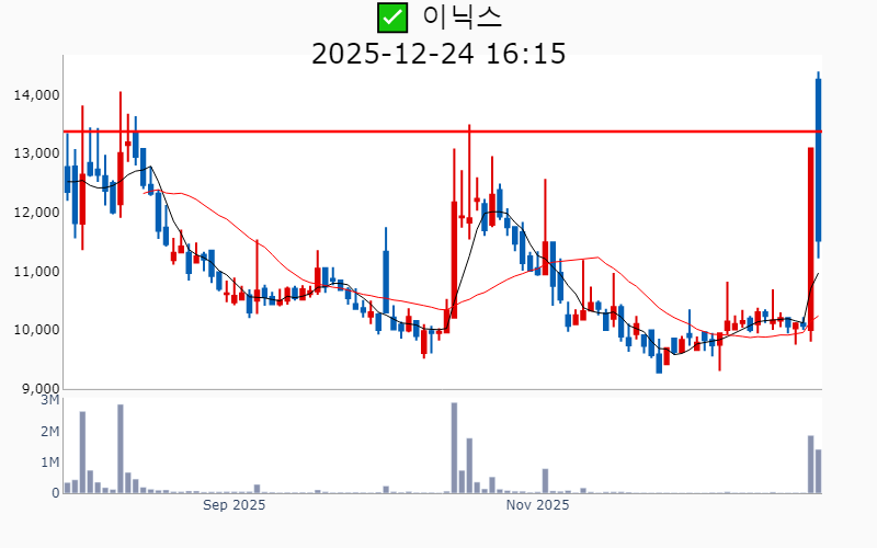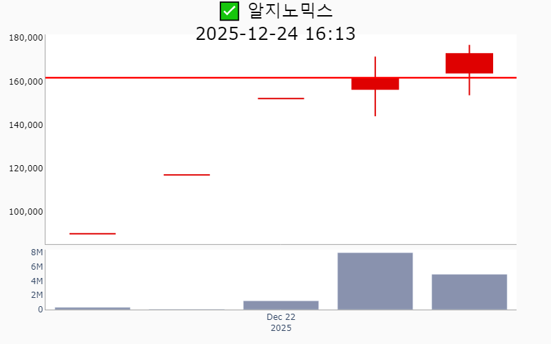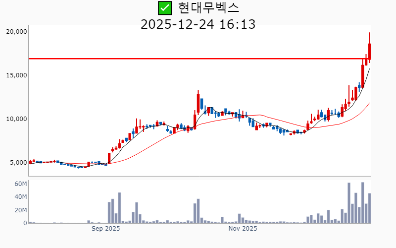 - 2025년 12월 24일기준 신고가 종목을 한눈에 볼 수 있도록 정리했습니다. - 실시간 신고가 종목은 Awake 신고가 종목 텔레그램 채널 https://t.me/awake_realtimeCheck 에서 확인하세요. - ⚡ 더욱 깊이있는 주도주 정보를 원한다면 AWAKE 마켓스타PRO ⭐️를 이용해 보세요⚡ 👉 https://fishy-trampoline-79b.notion.site/1d175164780f803e93abc1e53c38b42c ⚡ 📌 신고가 종목 현황(2025-12-24기준) ✅ 우주항공 (섹터강도 : 4.5) ⭐️⭐️ [상승률/거래대금] 종목명 [+26.9%/ 2,477억] 켄코아에어로스페이스(52주)/ 52주 최대거래 [+17.6%/ 2,973억] 비츠로넥스텍(역사적) ✅ 로봇 (섹터강도 : 4.0) ⭐️⭐️ [상승률/거래대금] 종목명 [+29.9%/ 718억] 우림피티에스(역사적) [+10.9%/ 1,909억] 에스피시스템스(52주) [ +9.9%/ 8,662억] 현대무벡스(역사적) [ +0.2%/ 167억] 링크솔루션(역사적) ✅ 바이오/헬스케어 ⭐️ [상승률/거래대금] 종목명 [ +7.2%/ 1,282억] 프로티나(역사적) [ +6.8%/ 8,273억] 알지노믹스(역사적) [ +5.9%/ 60억] 안트로젠(52주) [ +5.0%/ 226억] 나노엔텍(52주) [ +2.5%/ 30억] 엔지켐생명과학(52주) ✅ 자동차/부품 [상승률/거래대금] 종목명 [+13.1%/ 977억] SJG세종(52주) [ +3.2%/ 14억] 유니크(52주) ✅ 자율주행 [상승률/거래대금] 종목명 [+10.9%/ 802억] 슈어소프트테크(52주) ✅ 밸류업 지수 [상승률/거래대금] 종목명 [ +9.7%/ 48억] 피에스텍(52주) [ +2.8%/ 124억] 현대해상(52주) [ +1.6%/ 24억] 에이플러스에셋(52주) [ +1.1%/ 113억] JB금융지주(역사적) [ +1.0%/ 76억] iM금융지주(역사적) [ +1.0%/ 5억] 한일철강(52주) [ +0.5%/ 6억] 현대에이치티(52주) [ +0.4%/ 113억] BNK금융지주(역사적) ✅ 반도체 [상승률/거래대금] 종목명 [ +4.5%/ 218억] 에이팩트(52주) [ +1.7%/ 128억] 경인양행(52주) [ +0.4%/ 50억] 저스템(52주) ✅ 철강금속 [상승률/거래대금] 종목명 [ +1.9%/ 12억] 고려제강(52주) [ +0.9%/ 8억] SIMPAC(52주) ----------------------------------- ![]() ✅ 포스코DX(-1.0%) ❗️ 52주 신고가 신규 돌파 거래대금 : 1,533억 시가총액 : 4.5조 - 현재가 : 29,450원 산업 자동화 및 디지털 전환 솔루션 제공 기업 '피지컬 AI'와 제조업 자율화 기술 개발로 경쟁력 강화 2차전지 및 AI 기반 신사업 확대로 성장 모멘텀 확보 📊 주요지표 부채비율 : 41% 유보율 : 650% PBR : 5.59배 📊 최근실적(매출/영업익/순익) 2025.3Q 2,447억/ 217억/ 175억 2025.2Q 2,729억/ 171억/ 144억 2025.1Q 2,968억/ 229억/ 217억 2024.4Q 3,616억/ 232억/ 232억 📊 당일 기관수급 요약 📌 기관합계 : +25억 - 금융투자 : +21억 - 연기금 : +2억 - 투신 : +1억 - 사모 : +0억 - 보험 : +0억 - 기타금융 : +0억 - 은행 : 0억 📌 외국인 : +10억 ![]() ✅ 알지노믹스(+6.8%) ❗️ 4일 신고가 신규 돌파 거래대금 : 8,304억 시가총액 : 2.4조 - 현재가 : 172,700원 RNA 편집 기술을 기반으로 난청 및 암 치료제를 개발하는 바이오 기업 일라이 릴리와의 1조9000억원 규모의 기술이전 계약으로 글로벌 시장 진출 가속화 코스닥 초격차 기술특례상장으로 혁신적 유전자 치료제 분야 선도 📊 주요지표 부채비율 : -114% 유보율 : -11,198% PBR : -배 📊 최근실적(매출/영업익/순익) 2025.2Q 71억/ 31억/ -851억 2025.1Q / -41억/ -53억 2024.4Q / -26억/ -56억 2024.3Q / -34억/ -34억 📊 당일 기관수급 요약 📌 기관합계 : +208억 - 사모 : +139억 - 투신 : +95억 - 연기금 : +50억 - 보험 : +2억 - 은행 : 0억 - 금융투자 : -26억 - 기타금융 : -52억 📌 외국인 : +269억 ![]() ✅ 현대무벡스(+9.9%) ❗️ 역사적 신고가 돌파 이어감 거래대금 : 8,669억 시가총액 : 2.1조 - 현재가 : 18,580원 스마트 물류 자동화 솔루션과 로봇 기술력을 보유한 기업 글로벌 시장에서 AI 및 로봇 기반 물류 자동화 수요 증가 수혜 현대차와의 협력 및 대규모 투자로 해외 수주 본격화와 성장 가속화 📊 주요지표 부채비율 : 60% 유보율 : 1,272% PBR : 6.39배 📊 최근실적(매출/영업익/순익) 2025.4Q 1,245억/ 88억/ -(E) 2025.3Q 1,035억/ 67억/ 50억 2025.2Q 989억/ 45억/ 41억 2025.1Q 777억/ 52억/ 10억 2024.4Q 1,240억/ 83억/ 83억 📊 당일 기관수급 요약 📌 기관합계 : +0억 - 금융투자 : +2억 - 보험 : +0억 - 투신 : +0억 - 은행 : 0억 - 기타금융 : 0억 - 연기금 : 0억 - 사모 : -1억 📌 외국인 : -41억 ![]() ✅ 아이티센글로벌(+6.9%) ❗️ 역사적 신고가 신규 돌파 거래대금 : 806억 시가총액 : 7,704억 - 현재가 : 33,200원 디지털 자산 거래와 웹3 중심의 IT 서비스 기업 스테이블코인 사업과 금 거래를 통한 디지털 금융 생태계 확장 글로벌 웹3 전략과 디지털 금 온체인화로 미래 성장동력 확보 📊 주요지표 부채비율 : 211% 유보율 : 771% PBR : 4.07배 📊 최근실적(매출/영업익/순익) 2025.3Q 17,273억/ 645억/ 465억 2025.2Q 12,667억/ 216억/ 172억 2025.1Q 16,366억/ 338억/ 262억 2024.4Q 15,064억/ 281억/ 281억 📊 당일 기관수급 요약 📌 기관합계 : 0억 - 금융투자 : +1억 - 보험 : 0억 - 은행 : 0억 - 기타금융 : 0억 - 연기금 : 0억 - 투신 : 0억 - 사모 : -1억 📌 외국인 : +44억 ![]() ✅ 안트로젠(+5.9%) ❗️ 52주 신고가 돌파 이어감 거래대금 : 60억 시가총액 : 4,248억 - 현재가 : 42,450원 줄기세포 기반 바이오의약품 개발 전문 기업 일본 시장 진출 및 품목 허가 임박으로 글로벌 시장 확대 가능성 퇴행성관절염 및 희귀질환 치료제 개발로 파이프라인 다각화 📊 주요지표 부채비율 : 1% 유보율 : 1,843% PBR : 2.71배 📊 최근실적(매출/영업익/순익) 2025.3Q