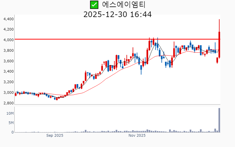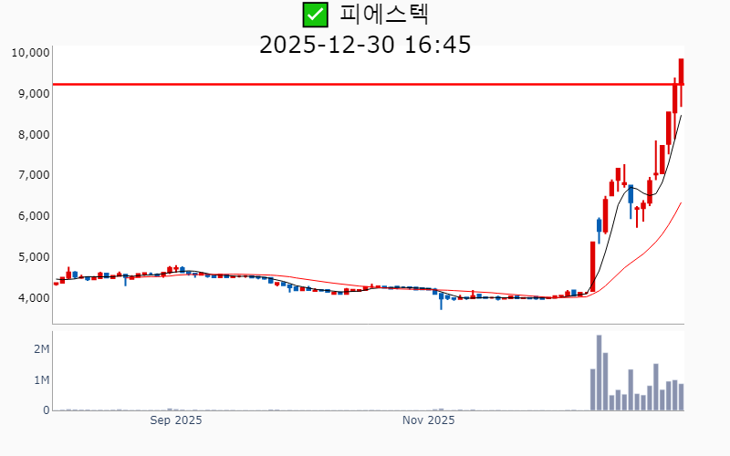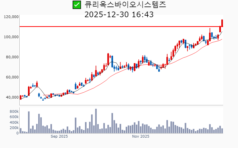 - 2025년 12월 30일기준 신고가 종목을 한눈에 볼 수 있도록 정리했습니다. - 실시간 신고가 종목은 Awake 신고가 종목 텔레그램 채널 https://t.me/awake_realtimeCheck 에서 확인하세요. - ⚡ 더욱 깊이있는 주도주 정보를 원한다면 AWAKE 마켓스타PRO ⭐️를 이용해 보세요⚡ 👉 https://fishy-trampoline-79b.notion.site/1d175164780f803e93abc1e53c38b42c ⚡ 📌 신고가 종목 현황(2025-12-30기준) ✅ 반도체 (섹터강도 : 4.7) ⭐️⭐️⭐️ [상승률/거래대금] 종목명 [+17.9%/ 5,750억] 제주반도체(52주) [+13.4%/ 533억] 에스에이엠티(52주)/ 52주 최대거래 [+10.7%/ 643억] 코리아써키트(역사적) [ +9.1%/ 429억] 켐트로스(52주) [ +6.7%/ 153억] 브이엠(역사적) [ +6.4%/ 2,029억] SK스퀘어(역사적) [ +5.2%/ 31억] 사피엔반도체(52주) [ +4.1%/ 467억] 두산테스나(52주) [ +1.7%/ 2.3조] SK하이닉스(역사적) [ +0.3%/ 2.3조] 삼성전자(역사적) [ +0.2%/ 7억] 야스(52주) ✅ 자동차/부품 (섹터강도 : 4.1) ⭐️⭐️ [상승률/거래대금] 종목명 [+23.0%/ 1,143억] 삼보모터스(52주)/ 52주 최대거래 [ +6.4%/ 2,049억] 현대오토에버(역사적) [ +1.6%/ 288억] 디아이씨(역사적) [ +1.3%/ 139억] 현대위아(52주) ✅ 로봇 ⭐️ [상승률/거래대금] 종목명 [+16.2%/ 468억] 더블유에스아이(52주) [ +6.4%/ 2,049억] 현대오토에버(역사적) [ +5.0%/ 719억] 에브리봇(52주) [ +4.9%/ 611억] 우림피티에스(역사적) [ +2.0%/ 6,315억] 원익홀딩스(역사적) [ +1.6%/ 288억] 디아이씨(역사적) ✅ 화장품 [상승률/거래대금] 종목명 [+30.0%/ 485억] 원익(역사적) ✅ 밸류업 지수 [상승률/거래대금] 종목명 [ +6.6%/ 81억] 피에스텍(역사적) [ +6.4%/ 2,029억] SK스퀘어(역사적) [ +4.5%/ 17억] 삼지전자(52주) ✅ 바이오/헬스케어 [상승률/거래대금] 종목명 [ +7.2%/ 93억] 에스바이오메딕스(52주) [ +6.0%/ 203억] 큐리옥스바이오시스템즈(역사적) [ +5.2%/ 379억] JW신약(52주) [ +5.1%/ 404억] 오름테라퓨틱(역사적) [ +3.6%/ 30억] DXVX(52주) ✅ 우주항공 [상승률/거래대금] 종목명 [+13.7%/ 2,456억] 비츠로넥스텍(역사적) ✅ K-푸드/음식료 [상승률/거래대금] 종목명 [+13.3%/ 51억] 무학(52주)/ 52주 최대거래 ✅ 정원오 [상승률/거래대금] 종목명 [ +6.6%/ 81억] 피에스텍(역사적) [ +5.1%/ 722억] 대주산업(52주) [ +2.4%/ 63억] 에스제이그룹(52주) ----------------------------------- ![]() ✅ SK스퀘어(+6.4%) ❗️ 역사적 신고가 돌파 이어감 거래대금 : 2,029억 시가총액 : 48.6조 - 현재가 : 368,000원 투자 포트폴리오 다각화 및 SK하이닉스 중심의 반도체 사업 강화 AI와 반도체 분야 글로벌 투자 확대 및 전략투자센터 신설 기업가치 제고를 위한 NAV 할인율 축소와 주주환원 전략 강화 📊 주요지표 부채비율 : 9% 유보율 : 107,302% PBR : 1.09배 📊 최근실적(매출/영업익/순익) 2025.4Q 15,891억/ 22,611억/ 21,525억(E) 2025.3Q 30,747억/ 26,455억/ 24,824억 2025.2Q 18,883억/ 14,011억/ 14,471억 2025.1Q 21,178억/ 16,523억/ 16,123억 2024.4Q 22,109억/ 16,520억/ 16,520억 📊 당일 기관수급 요약 📌 기관합계 : +123억 - 연기금 : +109억 - 보험 : +59억 - 금융투자 : +25억 - 기타금융 : +0억 - 은행 : 0억 - 투신 : -4억 - 사모 : -67억 📌 외국인 : +20억 ![]() ✅ 현대오토에버(+6.4%) ❗️ 역사적 신고가 돌파 이어감 거래대금 : 2,050억 시가총액 : 9.1조 - 현재가 : 332,000원 현대차 그룹의 IT 서비스 및 모빌리티 솔루션 제공 기업 SDV 조직 신설 및 자율주행 AI 두뇌 개발로 차량 소프트웨어 혁신 주도 엔비디아와의 AI 협력 강화로 글로벌 디지털 전환 선도 📊 주요지표 부채비율 : 81% 유보율 : 12,826% PBR : 2.34배 📊 최근실적(매출/영업익/순익) 2025.4Q 12,561억/ 810억/ 695억(E) 2025.3Q 10,543억/ 708억/ 528억 2025.2Q 10,421억/ 814억/ 597억 2025.1Q 8,330억/ 267억/ 199억 2024.4Q 11,596억/ 727억/ 727억 📊 당일 기관수급 요약 📌 기관합계 : +48억 - 투신 : +29억 - 금융투자 : +18억 - 연기금 : +13억 - 은행 : 0억 - 기타금융 : 0억 - 보험 : -1억 - 사모 : -11억 📌 외국인 : -203억 ![]() ✅ 오름테라퓨틱(+5.1%) ❗️ 214일 신고가 돌파 이어감 거래대금 : 404억 시가총액 : 2.5조 - 현재가 : 120,000원 항암제 개발 전문 바이오테크 기업 DAC 플랫폼 기반 신약 개발, ADC 한계 극복 모색 도린 토오더 박사 영입으로 기술력 강화 및 글로벌 진출 기대 📊 주요지표 부채비율 : 25% 유보율 : 6,316% PBR : 4.88배 📊 최근실적(매출/영업익/순익) 2025.3Q / -139억/ -136억 2025.2Q / -100억/ -38억 2025.1Q / -96억/ -86억 2024.4Q / -79억/ -79억 📊 당일 기관수급 요약 📌 기관합계 : +37억 - 사모 : +31억 - 투신 : +9억 - 은행 : 0억 - 기타금융 : 0억 - 연기금 : 0억 - 보험 : 0억 - 금융투자 : -3억 📌 외국인 : +9억 ![]() ✅ 큐리옥스바이오시스템즈(+6.0%) ❗️ 역사적 신고가 돌파 이어감 거래대금 : 203억 시가총액 : 2.0조 - 현재가 : 117,000원 세포 분석 자동화 장비 개발 및 상업화 선도 기업 플루토 코드 상업화 및 글로벌 협업으로 바이오 소부장 시장 진출 가속화 AI 기반 기술력과 전략적 파트너십을 통한 혁신적 성장 모멘텀 확보 📊 주요지표 부채비율 : 20% 유보율 : 421% PBR : 21.43배 📊 최근실적(매출/영업익/순익) 2025.3Q 14억/ -27억/ -30억 2025.2Q 10억/ -40억/ -183억 2025.1Q 9억/ -30억/ -36억 2024.4Q 10억/ -36억/ -36억 📊 당일 기관수급 요약 📌 기관합계 : -3억 - 보험 : 0억 - 은행 : 0억 - 기타금융 : 0억 - 연기금 : 0억 - 금융투자 : 0억 - 투신 : 0억 - 사모 : -2억 