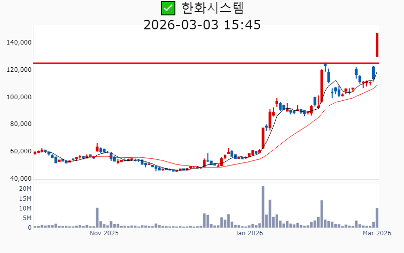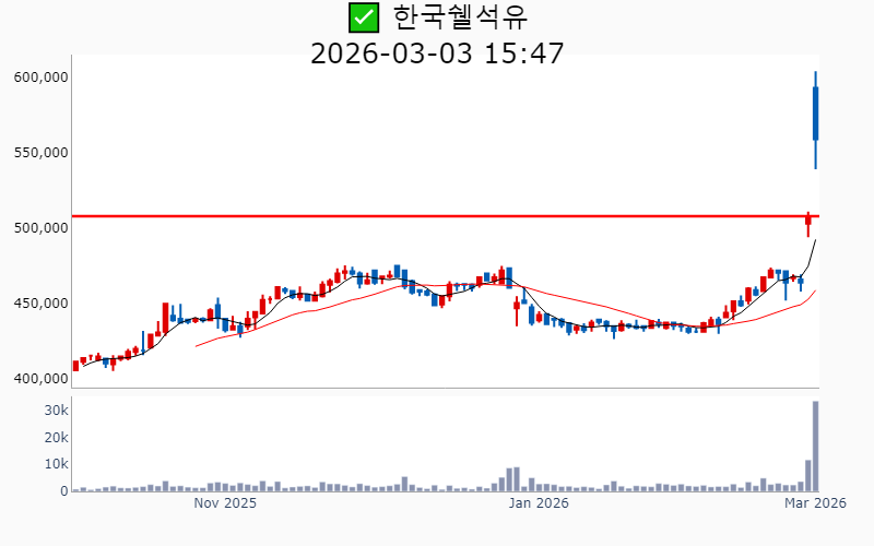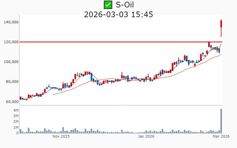 - 2026년 3월 3일기준 신고가 종목을 한눈에 볼 수 있도록 정리했습니다. - 실시간 신고가 종목은 Awake 신고가 종목 텔레그램 채널 https://t.me/awake_realtimeCheck 에서 확인하세요. - ⚡ 더욱 깊이있는 주도주 정보를 원한다면 AWAKE 마켓스타PRO ⭐️를 이용해 보세요⚡ 👉 https://fishy-trampoline-79b.notion.site/1d175164780f803e93abc1e53c38b42c ⚡ 📌 신고가 종목 현황(2026-03-03기준) ✅ 방산 (섹터강도 : 5.0) ⭐️⭐️⭐️ [상승률/거래대금] 종목명 [+30.0%/ 1,110억] 빅텍(52주)/ 52주 최대거래 [+29.9%/ 7,561억] LIG넥스원(역사적) [+29.1%/ 1.4조] 한화시스템(역사적) [+19.8%/ 1.8조] 한화에어로스페이스(역사적) [+18.9%/ 1,137억] 퍼스텍(역사적) [+15.9%/ 351억] 한일단조(52주) [ +8.0%/ 9,749억] 현대로템(역사적) [ +3.2%/ 5,207억] 한국항공우주(역사적) ✅ 금융/지주/밸류업 ⭐️ [상승률/거래대금] 종목명 [+28.4%/ 5,764억] S-Oil(역사적)/ 역대 최대거래 [+10.6%/ 136억] 미창석유(역사적)/ 52주 최대거래 [+10.0%/ 188억] 한국쉘석유(역사적)/ 역대 최대거래 [ +9.8%/ 17억] 제일연마(52주)/ 52주 최대거래 [ +9.2%/ 95억] 서울가스(52주)/ 52주 최대거래 [ +8.3%/ 193억] 에이치엠넥스(52주) [ +3.6%/ 96억] HDC(52주) [ +1.4%/ 1,304억] 한화(역사적) [ +1.1%/ 123억] 영원무역(역사적) [ +0.6%/ 11억] 인천도시가스(52주)/ 52주 최대거래 ✅ 해운 (섹터강도 : 4.6) ⭐️⭐️⭐️ [상승률/거래대금] 종목명 [+29.9%/ 2,560억] 대한해운(52주) [+17.4%/ 4,319억] 팬오션(52주)/ 52주 최대거래 [+16.9%/ 1,550억] KSS해운(역사적)/ 52주 최대거래 ----------------------------------- ![]() ✅ 한화에어로스페이스(+19.8%) ❗️ 역사적 신고가 신규 돌파 거래대금 : 1.8조 시가총액 : 73.8조 - 현재가 : 1,432,000원 📊 최근 애널리스트 리포트 요약 📌 2025년 전망: 큰 그림을 위한 숨고르기와 수주 파이프라인 확장 - 2025년 4분기 매출액 8.3조 원, 영업이익 7,528억 원으로 시장 기대치 하회. - 저마진 국내사업 비중 증가 및 연결 자회사 실적 부진이 주요 원인. - 폴란드 및 기타 해외 수출 증가로 지상방산 부문 성장세는 지속될 전망. - 2026년 폴란드 수출 감소 예상되나, 다른 국가 수출로 실적 유지 가능성 높음. (출처 : 유진투자증권/iM증권/하나증권) 📊 주요지표 부채비율 : 221% 유보율 : 3,293% PBR : 6.33배 📊 최근실적(매출/영업익/순익) 2025.4Q 85,701억/ 11,576억/ 7,887억(E) 2025.3Q 64,865억/ 8,564억/ 7,122억 2025.2Q 63,110억/ 8,645억/ 2,864억 2025.1Q 54,842억/ 5,607억/ 2,093억 2024.4Q 48,250억/ 8,997억/ 8,997억 ![]() ✅ 한화시스템(+29.1%) ❗️ 역사적 신고가 다시 돌파 거래대금 : 1.4조 시가총액 : 27.7조 - 현재가 : 146,700원 📊 최근 애널리스트 리포트 요약 📌 [우주 사업의 새로운 장, 한화시스템의 도약과 과제] - 한화시스템은 2026년 UAE 및 사우디와의 방산 계약을 추진하며 우주 사업 투자로 성장 기반을 확장하고 있습니다. - 필리 조선소의 적자는 지속되지만, MR탱커 수주와 미국 해군 사업 참여로 회복 가능성이 기대됩니다. - 2027년에는 M-SAM 양산이 본격화되어 매출 5천억 원까지 성장할 전망입니다. - 단기 주가 급등으로 변동성이 있지만, 중장기 성장 잠재력은 여전히 긍정적입니다. (출처 : iM증권/미래에셋증권) 📊 주요지표 부채비율 : 96% 유보율 : 189% PBR : 2.34배 📊 최근실적(매출/영업익/순익) 2025.4Q 12,420억/ 343억/ 748억(E) 2025.3Q 8,077억/ 225억/ 1,518억 2025.2Q 7,682억/ 335억/ 470억 2025.1Q 6,901억/ 582억/ 410억 2024.4Q 9,335억/ 291억/ 291억 ![]() ✅ 현대로템(+8.0%) ❗️ 역사적 신고가 신규 돌파 거래대금 : 9,749억 시가총액 : 27.2조 - 현재가 : 249,000원 📊 최근 애널리스트 리포트 요약 📌 중장기 펀더멘털 이상 무: 현대로템 4Q25 프리뷰 및 K2 전차의 황금기 - 현대로템의 목표주가는 283,000원으로 유지되며, 4분기 실적은 시장 기대치를 충족할 전망입니다. - 폴란드 1차 계약의 마무리와 2차 계약 양산이 순조롭게 진행되어 수익성 개선이 예상됩니다. - 방산 수주잔고는 10.8조원으로 약 3.3년치 매출에 해당하며, 향후 매출 성장 가능성이 높습니다. - 디펜스솔루션 부문의 높은 영업이익 성장세에 힘입어 2026년에도 긍정적인 실적 기조가 지속될 전망입니다. (출처 : 하나증권/iM증권/키움증권/교보증권) 📊 주요지표 부채비율 : 127% 유보율 : 318% PBR : 8.28배 📊 최근실적(매출/영업익/순익) 2025.4Q 17,525억/ 3,162억/ 2,798억(E) 2025.3Q 16,196억/ 2,777억/ 1,984억 2025.2Q 14,176억/ 2,576억/ 1,895억 2025.1Q 11,761억/ 2,029억/ 1,571억 2024.4Q 14,408억/ 1,617억/ 1,617억 ![]() ✅ S-Oil(+28.4%) ❗️ 52주 신고가 다시 돌파 거래대금 : 5,764억 시가총액 : 15.9조 - 현재가 : 141,300원 📊 최근 애널리스트 리포트 요약 📌 정유 업계 대반전, 2026년 실적 기대감 고조 - 동사는 4분기 영업이익 4,245억 원으로 시장 기대치를 11% 웃돌았습니다. - 정제마진 개선과 화학 부문 회복, 윤활기유 원가 하락이 실적 상승을 이끌었습니다. - OPEC+ 증산 기조와 글로벌 공급 차질로 정제마진 강세가 예상됩니다. - 2026년 영업이익은 1.52조 원으로 급증할 전망이나, 유가 급락 리스크는 주의가 필요합니다. (출처 : 유진투자증권/iM증권/SK증권) 📊 주요지표 부채비율 : 189% 유보율 : 2,851% PBR : 0.84배 📊 최근실적(매출/영업익/순익) 2025.4Q 87,049억/ 3,786억/ 1,609억(E) 2025.3Q 84,154억/ 2,292억/ 632억 2025.2Q 80,485억/ -
