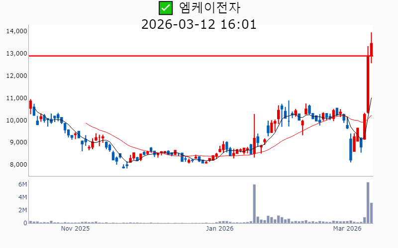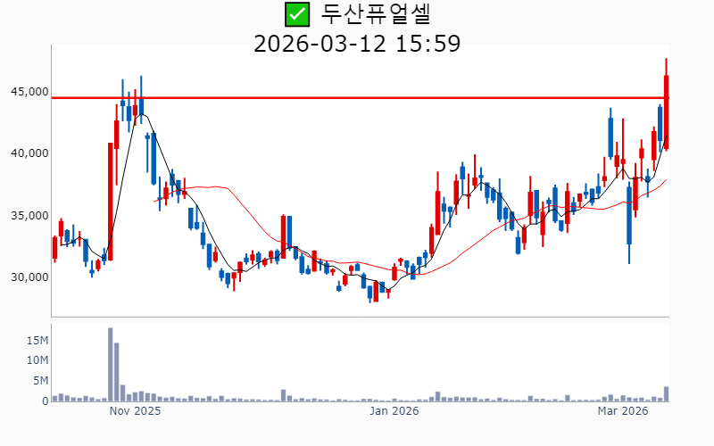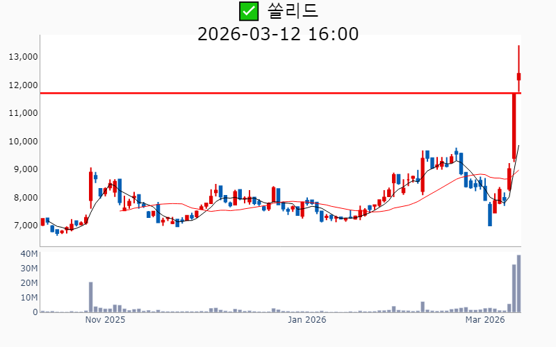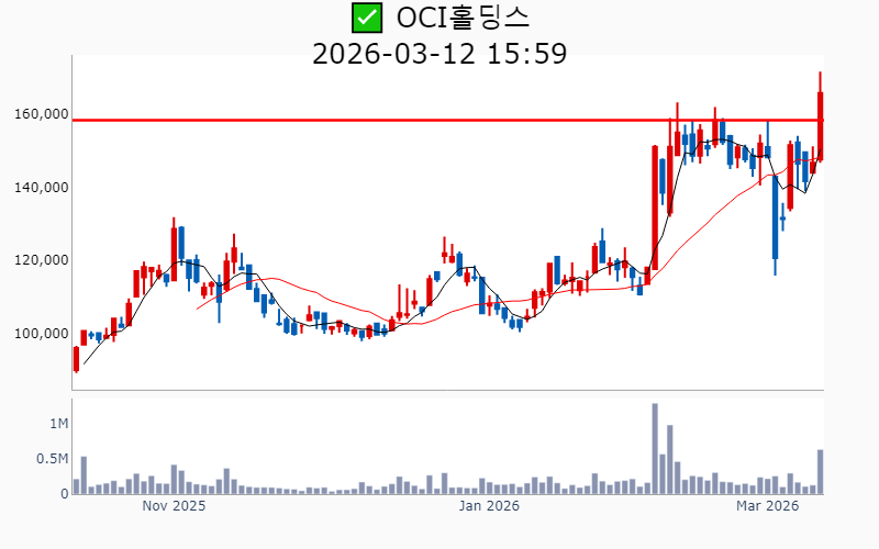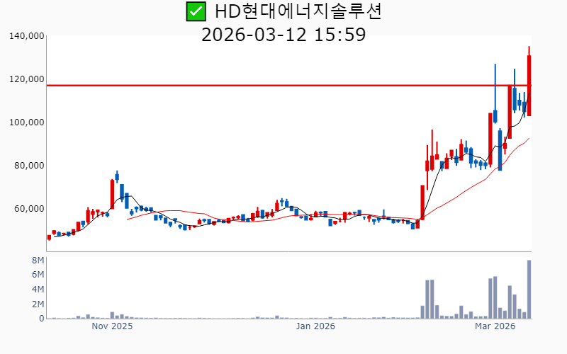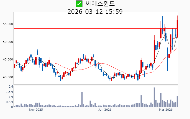 - 2026년 3월 12일기준 신고가 종목을 한눈에 볼 수 있도록 정리했습니다. - 실시간 신고가 종목은 Awake 신고가 종목 텔레그램 채널 https://t.me/awake_realtimeCheck 에서 확인하세요. - ⚡ 더욱 깊이있는 주도주 정보를 원한다면 AWAKE 마켓스타PRO ⭐️를 이용해 보세요⚡ 👉 https://fishy-trampoline-79b.notion.site/1d175164780f803e93abc1e53c38b42c ⚡ 📌 신고가 종목 현황(2026-03-12기준) ✅ 신재생 (섹터강도 : 4.7) ⭐️⭐️⭐️ [상승률/거래대금] 종목명 [+29.9%/ 3,954억] SK이터닉스(역사적) [+24.5%/ 1.0조] HD현대에너지솔루션(역사적)/ 52주 최대거래 [+13.0%/ 1,042억] OCI홀딩스(역사적) [ +8.3%/ 587억] 씨에스윈드(52주) [ +6.0%/ 102억] OCI(52주) [ +0.6%/ 464억] 신성이엔지(52주) ✅ 통신장비/6G (섹터강도 : 4.6) ⭐️⭐️⭐️ [상승률/거래대금] 종목명 [+29.9%/ 660억] 에치에프알(52주)/ 52주 최대거래 [+24.1%/ 1,709억] 옵티코어(역사적)/ 52주 최대거래 [+11.5%/ 415억] 라이콤(역사적) [ +7.1%/ 8,120억] 대한광통신(역사적)/ 52주 최대거래 [ +5.9%/ 4,901억] 쏠리드(52주)/ 역대 최대거래 [ +5.9%/ 734억] 케이엠더블유(52주) [ +4.6%/ 1,102억] 오이솔루션(52주) ✅ 수소 (섹터강도 : 4.7) ⭐️⭐️⭐️ [상승률/거래대금] 종목명 [+29.9%/ 331억] 한선엔지니어링(52주) [+29.9%/ 3,954억] SK이터닉스(역사적) [+19.9%/ 378억] 아모센스(52주) [+12.5%/ 1,671억] 두산퓨얼셀(52주) [ +0.7%/ 40억] 풍국주정(52주) ----------------------------------- ![]() ✅ 대우건설(+5.1%) ❗️ 역사적 신고가 돌파 이어감 거래대금 : 2,492억 시가총액 : 4.3조 - 현재가 : 10,460원 📊 최근 애널리스트 리포트 요약 📌 해외 원전 대열 합류, 대우건설의 미래 기대 - 2026년 대우건설은 체코 원전 시공 계약을 통해 첫 해외 대형 원전 프로젝트에 참여할 것으로 전망됩니다. - 2025년 4분기 대우건설의 실적은 매출액 2.1조 원, 영업이익 811억 원으로 시장 예상치를 하회할 것으로 보입니다. - 주택 및 플랜트 부문은 안정적 수익성을 유지할 것으로 예상되나, 해외 수주 공백으로 매출 둔화가 계속될 전망입니다. - 원전 시공사로서의 재평가를 위해서는 지속적인 수주 확대가 필요하며, 주택시장 회복이 주가 상승에 긍정적 영향을 미칠 것입니다. (출처 : 한화투자증권/IBK투자증권/하나증권) 📊 주요지표 부채비율 : 228% 유보율 : 130% PBR : 0.36배 📊 최근실적(매출/영업익/순익) 2025.4Q 20,080억/ 895억/ 477억(E) 2025.3Q 19,906억/ 566억/ -530억 2025.2Q 22,733억/ 822억/ -429억 2025.1Q 20,767억/ 1,513억/ 580억 2024.4Q 26,470억/ 1,212억/ 1,212억 ![]() ✅ OCI홀딩스(+13.0%) ❗️ 역사적 신고가 다시 돌파 거래대금 : 1,042억 시가총액 : 3.1조 - 현재가 : 165,800원 📊 최근 애널리스트 리포트 요약 📌 폴리실리콘의 밝은 미래: 기대감이 현실이 될 시간 - OCI홀딩스의 목표주가는 14.6만원으로 상향 조정되었으며, 매수 의견이 유지됩니다. - 미국 정책 발표 지연에도 불구하고, 중국과 미국 시장의 폴리실리콘 수요 증가가 기대됩니다. - 베트남 웨이퍼 공장 가동 및 태양광 프로젝트 파이프라인 확대로 향후 성장 전망이 밝습니다. - 2026년 가동률 증가와 데이터센터 인프라 개발로 업사이드 잠재력이 큽니다. (출처 : 유진투자증권/미래에셋증권) 📊 주요지표 부채비율 : 69% 유보율 : 3,997% PBR : 0.43배 📊 최근실적(매출/영업익/순익) 2025.4Q 8,978억/ 235억/ 278억(E) 2025.3Q 8,451억/ -533억/ -734억 2025.2Q 7,762억/ -803억/ -824억 2025.1Q 9,481억/ 487억/ -149억 2024.4Q 8,539억/ -1,078억/ -1,078억 ![]() ✅ 두산퓨얼셀(+12.5%) ❗️ 52주 신고가 신규 돌파 거래대금 : 1,671억 시가총액 : 3.0조 - 현재가 : 46,250원 📊 최근 애널리스트 리포트 요약 📌 연료전지 시장의 도전과 기회: 두산퓨얼셀의 미래 - 두산퓨얼셀의 4Q25 매출은 전년 대비 51.5% 하락, 영업손실은 256억원으로 악화가 예상됩니다. - AI 데이터센터의 전력 수요 증가로 연료전지가 주목받고, 설치 리드타임이 짧아 빠르게 시장에 대응할 수 있습니다. - 두산퓨얼셀은 목표주가를 48,000원으로 상향 조정했으며, 2027년까지 BPS에 목표 PBR 7.5배를 적용했습니다. - 발전용 연료전지 시장에서 누적 점유율 1위로, PAFC와 SOFC의 양산을 본격화하며 시장 점유율을 확대하고 있습니다. (출처 : SK증권/미래에셋증권/하나증권) 📊 주요지표 부채비율 : 178% 유보율 : 5,620% PBR : 4.97배 📊 최근실적(매출/영업익/순익) 2025.4Q 1,287억/ -262억/ -301억(E) 2025.3Q 908억/ -156억/ -175억 2025.2Q 1,285억/ -19억/ -26억 2025.1Q 997억/ -116억/ -101억 2024.4Q 2,616억/ -26억/ -26억 ![]() ✅ 씨에스윈드(+8.3%) ❗️ 52주 신고가 돌파 이어감 거래대금 : 587억 시가총액 : 2.4조 - 현재가 : 56,000원 📊 최근 애널리스트 리포트 요약 📌 씨에스윈드, 미운 오리에서 백조로? 유럽 해상풍력 수요와 미국 정치 변화가 관건 - 씨에스윈드는 미국 수주가 전체의 60%를 차지하며, 미국의 에너지 정책이 주가에 큰 영향을 미칩니다. - 2025년 15억 달러 신규 수주를 확보했지만, 미국에서 풍력이 주력 발전원으로 인정받지 못하는 것이 주가에 부담입니다. - 3분기 실적은 시장 기대치를 상회했으며, 유럽 해상풍력 타워 수요 증가로 타워 부문 이익이 회복되었습니다. - 미국 중간선거에서 민주당 의석이 확대되면 씨에스윈드 주가가 크게 상승할 가능성이 있습니다. (출처 : DS투자증권/미