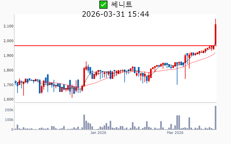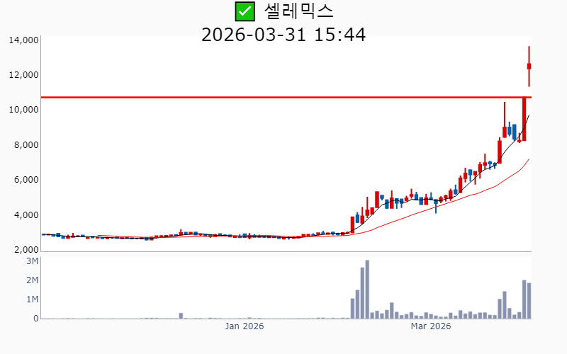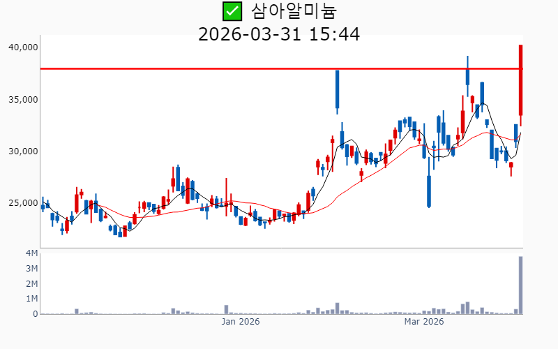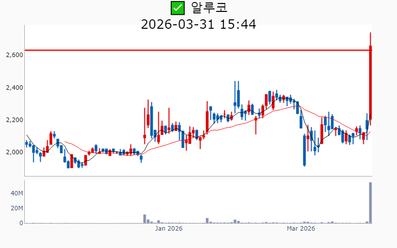 - 2026년 3월 31일기준 신고가 종목을 한눈에 볼 수 있도록 정리했습니다. - 실시간 신고가 종목은 Awake 신고가 종목 텔레그램 채널 https://t.me/awake_realtimeCheck 에서 확인하세요. - ⚡ 더욱 깊이있는 주도주 정보를 원한다면 AWAKE 마켓스타PRO ⭐️를 이용해 보세요⚡ 👉 https://fishy-trampoline-79b.notion.site/1d175164780f803e93abc1e53c38b42c ⚡ 📌 신고가 종목 현황(2026-03-31기준) ✅ 알루미늄 (섹터강도 : 4.9) ⭐️⭐️⭐️ [상승률/거래대금] 종목명 [+30.0%/ 1,550억] 남선알미늄(52주) [+29.9%/ 1,454억] 삼아알미늄(52주)/ 52주 최대거래 [+23.8%/ 1,423억] 알루코(52주)/ 52주 최대거래 [+18.1%/ 488억] 피제이메탈(52주)/ 52주 최대거래 ✅ 해운 [상승률/거래대금] 종목명 [+29.9%/ 8,722억] 흥아해운(52주) ✅ 페로브스카이트 [상승률/거래대금] 종목명 [ +5.9%/ 1,636억] 금양그린파워(52주)/ 52주 최대거래 [ +3.0%/ 3,757억] HD현대에너지솔루션(역사적) [ +0.3%/ 37억] 메카로(52주) ----------------------------------- ![]() ✅ BGF리테일(+0.4%) ❗️ 52주 신고가 신규 돌파 거래대금 : 124억 시가총액 : 2.4조 - 현재가 : 139,300원 📊 투자포인트 - 이동형 편의점 출동 건수 급증에 따른 사업 확장 기대감. - 편의점 매출 증가로 실적 개선 기대. 📊 주요지표 부채비율 : 170% 유보율 : 7,408% PBR : 1.38배 📊 최근실적(매출/영업익/순익) 2026.1Q 21,103억/ 289억/ 213억(E) 2025.4Q 22,924억/ 643억/ 498억 2025.3Q 24,622억/ 976억/ 793억 2025.2Q 22,901억/ 694억/ 528억 2025.1Q 20,165억/ 226억/ 226억 ![]() ✅ 삼아알미늄(+29.9%) ❗️ 52주 신고가 다시 돌파 거래대금 : 1,454억 시가총액 : 6,080억 - 현재가 : 40,200원 📊 투자포인트 - 중동 알루미늄 생산시설 피격으로 인한 공급 차질 우려로 인한 알루미늄 가격 상승 기대감. - 바레인 '알바'의 생산량 감축 소식이 알루미늄 시장에 긍정적 영향을 미친 호재. 📊 주요지표 부채비율 : 107% 유보율 : 2,862% PBR : 1.61배 📊 최근실적(매출/영업익/순익) 2025.4Q 712억/ -75억/ -117억 2025.3Q 667억/ -44억/ -56억 2025.2Q 674억/ -33억/ -37억 2025.1Q 661억/ -25억/ -25억 ![]() ✅ DXVX(-3.7%) ❗️ 52주 신고가 신규 돌파 거래대금 : 33억 시가총액 : 4,823억 - 현재가 : 4,900원 📊 투자포인트 - DXVX가 참여한 컨소시엄이 '한국형 ARPA-H' 2단계에 최종 선정되며 mRNA 상온 안정화 플랫폼 기술력 입증. - R&D 핵심 인재 영입으로 합성신약과 유전자 치료제의 투트랙 전략 강화. 📊 주요지표 부채비율 : -1,818% 유보율 : -120% PBR : -19.01배 📊 최근실적(매출/영업익/순익) 2025.3Q 56억/ -68억/ -89억 2025.2Q 87억/ -79억/ -77억 2025.1Q 75억/ -67억/ -75억 2024.4Q 77억/ -84억/ -84억 ![]() ✅ 알루코(+23.8%) ❗️ 52주 신고가 신규 돌파 거래대금 : 1,423억 시가총액 : 2,571억 - 현재가 : 2,655원 📊 투자포인트 - LG에너지솔루션과 SK온의 핵심 파트너로 부상하며 미국 시장 공략 가속화 기대감. - 비철금속 테마 상승세에 따른 주가 상승 전망. 📊 주요지표 부채비율 : 125% 유보율 : 536% PBR : 0.63배 📊 최근실적(매출/영업익/순익) 2025.4Q 1,180억/ 48억/ 60억 2025.3Q 1,234억/ 25억/ 3억 2025.2Q 1,653억/ 115억/ -18억 2025.1Q 1,689억/ 161억/ 161억 ![]() ✅ 금양그린파워(+5.9%) ❗️ 52주 신고가 돌파 이어감 거래대금 : 1,636억 시가총액 : 2,182억 - 현재가 : 18,000원 📊 투자포인트 - 서해안 해상풍력 프로젝트 지정으로 신재생에너지 사업 확장 기대감. - 정부의 에너지 정책 수혜와 원전 시장 진입에 따른 성장 전망. 📊 주요지표 부채비율 : 92% 유보율 : 1,482% PBR : 1.42배 📊 최근실적(매출/영업익/순익) 2025.4Q 877억/ 44억/ 14억 2025.3Q 739억/ 43억/ 54억 2025.2Q 564억/ 2억/ 16억 2025.1Q 468억/ -85억/ -85억 ![]() ✅ 세운메디칼(-2.5%) ❗️ 52주 신고가 신규 돌파 거래대금 : 337억 시가총액 : 1,106억 - 현재가 : 2,525원 📊 투자포인트 - 의료용 흡인기와 도뇨용 카테터 등 소모성 의료기기의 해외 수출 확대 기대감. - 결산배당 주당 70원 결정에 따른 배당 매력 부각. 📊 주요지표 부채비율 : 5% 유보율 : 3,327% PBR : 0.72배 📊 최근실적(매출/영업익/순익) 2025.3Q 168억/ 38억/ 39억 2025.2Q 157억/ 24억/ 19억 2025.1Q 146억/ 28억/ 28억 2024.4Q 151억/ 23억/ 23억 ![]() ✅ 셀레믹스(+17.7%) ❗️ 52주 신고가 돌파 이어감 거래대금 : 238억 시가총액 : 1,030억 - 현재가 : 12,620원 📊 투자포인트 - 암 유전자 검출 기술의 고성능 입증으로 인한 기술적 경쟁력 강화 기대감. - 최대주주 변경에 따른 경영 안정화 및 전략적 방향성 강화 기대감. 📊 주요지표 부채비율 : 8% 유보율 : 508% PBR : 1.02배 📊 최근실적(매출/영업익/순익) 2025.3Q 13억/ -11억/ -15억 2025.2Q 11억/ -13억/ -29억 2025.1Q 17억/ -4억/ -22억 2024.4Q 20억/ -1억/ -1억 ![]() ✅ 피제이메탈(+18.1%) ❗️ 52주 신고가 다시 돌파 거래대금 : 488억 시가총액 : 900억 - 현재가 : 3,630원 📊 투자포인트 - 알루미늄 가격 상승과 비철금속 테마의 강세로 인한 수익성 개선 기대감. - 중동 지역의 불안정한 상황 속에서 알루미늄 수요 증가에 따른 투자심리 호재. 📊 주요지표 부채비율 : 113% 유보율 : 481% PBR : 0.94배 📊 최근실적(매출/영업익/순익) 2025.4Q 908억/ 59억/ 36억 2025.3Q 868억/ 24억/ 7억 2025.2Q 872억/ -8억/ 11억 2025.1Q 842억/ 47억/ 47억 ![]() ✅ 쎄니트(+7.3%) ❗️ 52주 신고가 돌파 이어감 거래대금 : 4억 시가총액 : 714억 - 현재가 : 2,110원 📊 투자포인트 - 비철금속
