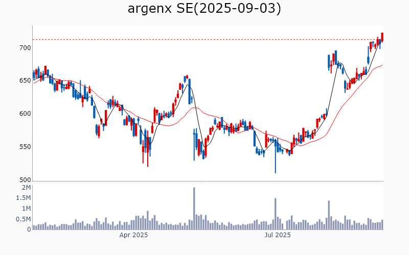 - argenx SE는 희귀 자가면역 질환 치료제를 개발하는 생명공학 기업으로, 주요 제품인 efgartigimod가 매출의 핵심 기반