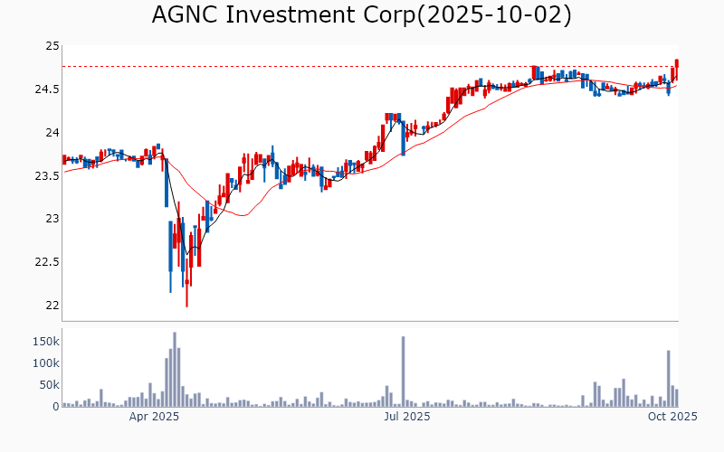 - AGNC Investment Corp는 주로 모기지 담보 증권(MBS)에 투자하는 부동산 투자 신탁(REIT)으로, 안정적인 배당 수익을 제공하는 것이 특징