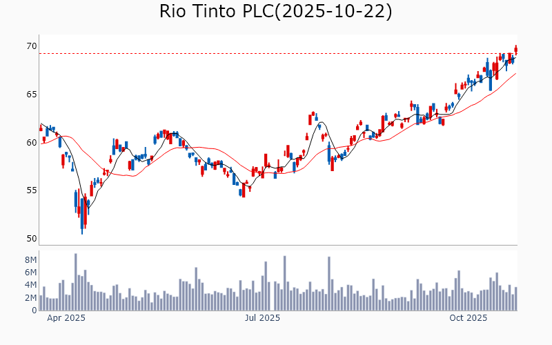 - Rio Tinto PLC는 철광석, 알루미늄, 구리 등 다양한 광물 자원을 채굴 및 생산하는 글로벌 광산업체로, 안정적인 매출 기반을 보유
