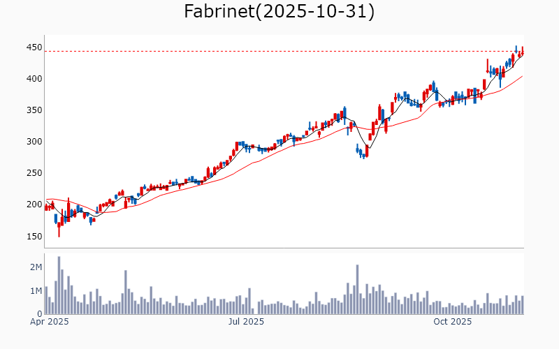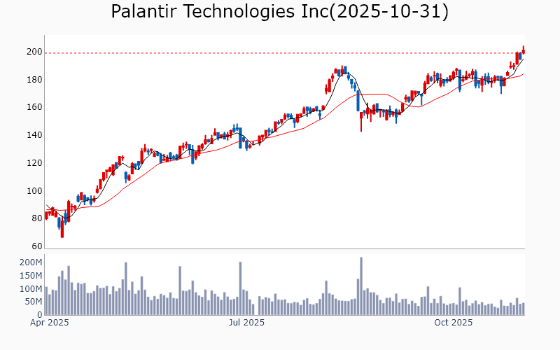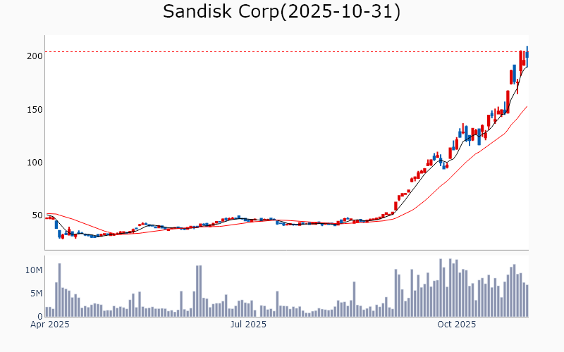 * Technology Palantir Technologies Inc / Software - Infrastructure / 475.7B Cisco Systems Inc / Communication Equipment / 287.9B Micron Technology Inc / Semiconductors / 251.1B Applied Materials Inc / Semiconductor Equipment & Materials / 185.7B Amphenol Corp / Electronic Components / 170.7B CrowdStrike Holdings Inc / Software - Infrastructure / 136.4B Tokyo Electron Ltd / Semiconductor Equipment & Materials / 101.6B Snowflake Inc / Software - Application / 93.1B Cloudflare Inc / Software - Infrastructure / 88.7B TE Connectivity PLC / Electronic Components / 72.8B Zscaler Inc / Software - Infrastructure / 52.4B Western Digital Corp / Computer Hardware / 51.5B Ubiquiti Inc / Communication Equipment / 47.6B Celestica Inc / Electronic Components / 39.1B Credo Technology Group Holding Ltd / Semiconductors / 32.5B Pure Storage Inc / Computer Hardware / 32.4B MongoDB Inc / Software - Infrastructure / 29.3B Sandisk Corp / Technology / 29.2B Teradyne Inc / Semiconductor Equipment & Materials / 28.9B First Solar Inc / Solar / 28.6B First Solar Inc / Solar / 28.6B Ciena Corp / Communication Equipment / 26.8B Lasertec Corp / Semiconductor Equipment & Materials / 16.6B Fabrinet / Electronic Components / 15.8B Nova Ltd / Semiconductors / 10.2B Tower Semiconductor Ltd / Semiconductors / 9.5B Daqo New Energy Corp / Semiconductor Equipment & Materials / 2.2B * Industrials Howmet Aerospace Inc / Aerospace & Defense / 82.8B Johnson Controls International PLC / Building Products & Equipment / 74.9B Symbotic Inc / Industrials / 47.8B AMETEK Inc / Specialty Industrial Machinery / 46.7B Rockwell Automation Inc / Specialty Industrial Machinery / 41.5B Bloom Energy Corp / Electrical Equipment & Parts / 31.3B Hubbell Inc / Electrical Equipment & Parts / 25.0B nVent Electric PLC / Electrical Equipment & Parts / 18.4B AECOM / Engineering & Construction / 17.8B AECOM / Engineering & Construction / 17.8B APi Group Corp / Engineering & Construction / 15.3B RBC Bearings Inc / Tools & Accessories / 13.5B Huntington Ingalls Industries Inc / Aerospace & Defense / 12.6B Wesco International Inc / Industrial Distribution / 12.6B Mueller Industries Inc / Metal Fabrication / 11.8B SPX Technologies Inc / Building Products & Equipment / 11.1B Donaldson Company Inc / Specialty Industrial Machinery / 9.8B * Financials Bank of America Corp / Banks - Diversified / 392.3B Wells Fargo & Co / Banks - Diversified / 274.1B Lloyds Banking Group PLC / Banks - Regional / 69.0B Futu Holdings Ltd / Capital Markets / 27.7B Banco Santander Brasil SA / Banks - Regional / 21.2B Banco de Chile / Banks - Regional / 17.7B Grupo Cibest SA / Banks - Regional / 14.8B ASE Technology Holding Co Ltd / Financial Data & Stock Exchanges / 11.0B Firstcash Holdings Inc / Credit Services / 7.0B * Healthcare Cardinal Health Inc / Medical Distribution / 45.3B Natera Inc / Healthcare / 27.3B Incyte Corp / Biotechnology / 18.3B Roivant Sciences Ltd / Biotechnology / 13.8B Ionis Pharmaceuticals Inc / Biotechnology / 12.0B Guardant Health Inc / Diagnostics & Research / 11.7B Cytokinetics Inc / Biotechnology / 7.6B Rhythm Pharmaceuticals Inc / Biotechnology / 7.6B * Utilities Centrais Eletricas Brasileiras SA - Eletrobras / Utilities - Renewable / 23.4B Companhia Paranaense de Energia / Utilities - Regulated Electric / 7.4B Companhia Paranaense de Energia / Utilities - Diversified / 7.4B * Consumer Discretionary Amazon.com Inc / Internet Retail / 2590.0B Las Vegas Sands Corp / Resorts & Casinos / 40.1B Quantumscape Corp / Auto Parts / 11.1B * Materials Vale SA / Other Industrial Metals & Mining / 50.6B Sociedad Quimica y Minera de Chile SA / Specialty Chemicals / 14.0B * Energy Canadian Solar Inc / Solar / 1.4B Canadian Solar Inc / Solar / 1.4B * Communication Services Warner Bros Discovery Inc / Entertainment / 55.6B Roku Inc / Entertainment / 15.6B ![]() ✅ Palantir Technologies Inc(3.2%) ❗️ 52주 신고가 돌파를 이어가는 중 Sector : Technology Industry : Software - Infrastructure 종목코드 : PLTR 시가총액 : 475.7B(656.5조원) 기업개요 ' - 데이터 분석 및 인공지능 소프트웨어 제공업체 - 정부 및 대기업 대상 데이터 솔루션 매출 기반 - 주요 매출원은 방위산업 및 공공 부문 데이터 분석 서비스 --------------------------------------------------- ![]() ✅ Cisco Systems Inc(0.3%) ❗️ 역사적 신고가 돌파 Sector : Technology Industry : Communication Equipment 종목코드 : CSCO 시가총액 : 287.9B(397.3조원) 기업개요 ' - 네트워킹 장비 및 소프트웨어 솔루션 제공업체 - 클라우드 및 보안 솔루션을 통한 매출 성장 - 주요 성장동력은 디지털 전환 수요 증가 --------------------------------------------------- ![]() ✅ Micron Technology Inc(0.0%) ❗️ 역사적 신고가 돌파 Sector : Technology Industry : Semiconductors 종목코드 : MU 시가총액 : 251.1B(346.6조원) 기업개요 ' - 메모리 반도체 및 저장장치 분야의 주요 업체 - 인공지능 및 데이터센터 수요 증가에 따른 매출 성장 - 주요 성장동력은 차세대 메모리 기술 개발 및 시장 확대 --------------------------------------------------- ![]() ✅ Applied Materials Inc(0.1%) ❗️ 52주 신고가 돌파 Sector : Technology Industry : Semiconductor Equipment & Materials 종목코드 : AMAT 시가총액 : 185.7B(256.3조원) 기업개요 ' - 반도체 및 디스플레이 제조 장비를 제공하는 글로벌 업체 - 매출의 상당 부분이 반도체 장비 부문에서 발생하며, 첨단 기술 개발에 집중 - 주요 성장동력은 반도체 산업의 기술 혁신과 고객사와의 장기 계약 --------------------------------------------------- ![]() ✅ Amphenol Corp(0.3%) ❗️ 역사적 신고가 돌파 Sector : Technology Industry : Electronic Components 종목코드 : APH 시가총액 : 170.7B(235.6조원) 기업개요 ' - 전자 커넥터 및 케이블 어셈블리 분야의 글로벌 리더 업체 - 