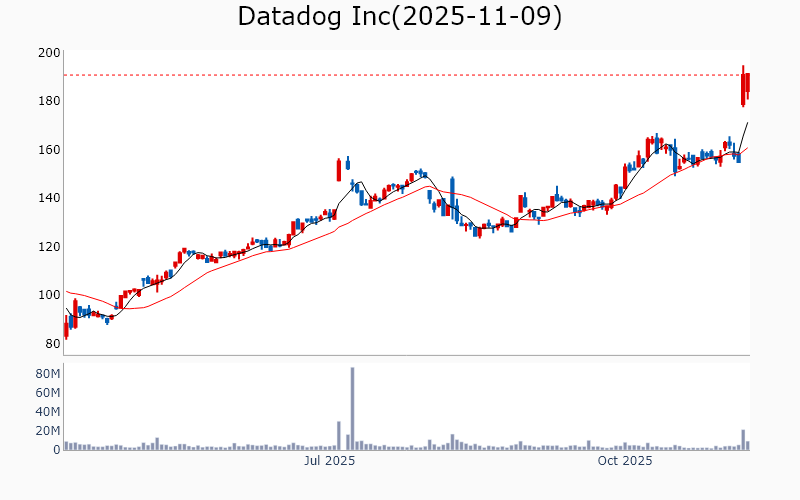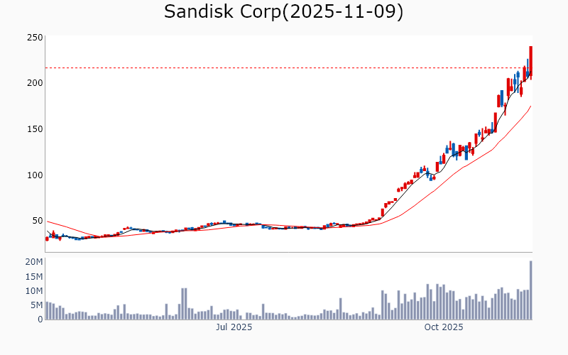 * Technology Datadog Inc / Software - Application / 67.1B Seagate Technology Holdings PLC / Computer Hardware / 59.7B Sandisk Corp / Computer Hardware / 35.1B Lumentum Holdings Inc / Communication Equipment / 17.0B CACI International Inc / Information Technology Services / 13.0B MACOM Technology Solutions Holdings Inc / Semiconductors / 12.7B Jfrog Ltd / Software - Application / 7.0B Daqo New Energy Corp / Semiconductor Equipment & Materials / 2.2B Canadian Solar Inc / Solar / 1.9B Canadian Solar Inc / Solar / 1.9B * Financials American Express Co / Credit Services / 253.9B Bank of Nova Scotia / Banks - Diversified / 82.5B Canadian Imperial Bank of Commerce / Banks - Diversified / 78.6B Bank of New York Mellon Corp / Banks - Diversified / 76.5B Aflac Inc / Insurance - Life / 59.8B Cboe Global Markets Inc / Financial Data & Stock Exchanges / 26.9B Stifel Financial Corp / Capital Markets / 12.4B Assurant Inc / Insurance - Property & Casualty / 11.2B Affiliated Managers Group Inc / Asset Management / 7.4B Manulife Financial Corp / Asset Management / 3.1B * Healthcare argenx SE / Biotechnology / 51.8B Cardinal Health Inc / Medical Distribution / 48.4B Natera Inc / Diagnostics & Research / 27.5B STERIS plc / Medical Devices / 25.9B Incyte Corp / Biotechnology / 20.8B Universal Health Services Inc / Medical Care Facilities / 14.3B Roivant Sciences Ltd / Biotechnology / 14.2B Madrigal Pharmaceuticals Inc / Biotechnology / 11.1B Abivax SA / Biotechnology / 7.7B * Real Estate Welltower Inc / REIT - Healthcare Facilities / 130.6B Ventas Inc / REIT - Healthcare Facilities / 36.0B Omega Healthcare Investors Inc / REIT - Healthcare Facilities / 13.3B AGNC Investment Corp / REIT - Mortgage / 11.1B American Healthcare REIT Inc / REIT - Healthcare Facilities / 8.6B CareTrust REIT Inc / REIT - Healthcare Facilities / 8.1B STAG Industrial Inc / REIT - Industrial / 7.3B * Industrials Cummins Inc / Specialty Industrial Machinery / 65.3B Carpenter Technology Corp / Metal Fabrication / 16.3B Woodward Inc / Aerospace & Defense / 16.0B RBC Bearings Inc / Tools & Accessories / 13.7B Donaldson Company Inc / Specialty Industrial Machinery / 10.1B * Consumer Discretionary Las Vegas Sands Corp / Resorts & Casinos / 44.1B Expedia Group Inc / Travel Services / 31.6B Magna International Inc / Auto Parts / 14.0B Wayfair Inc / Internet Retail / 13.9B * Energy BP PLC / Oil & Gas Integrated / 92.7B TechnipFMC PLC / Oil & Gas Equipment & Services / 17.3B * Communication Services Fox Corp / Entertainment / 29.3B Fox Corp / Entertainment / 27.8B * Utilities Brookfield Renewable Corp / Utilities - Renewable / 15.1B ![]() ✅ Datadog Inc(0.2%) ❗️ 52주 신고가 돌파 Sector : Technology Industry : Software - Application 종목코드 : DDOG 시가총액 : 67.1B(92.5조원) 기업개요 ' - 클라우드 기반 모니터링 및 보안 솔루션 제공업체 - 최근 AI 기반 데이터 분석 기능 강화 및 신규 고객 확보 - 주요 성장동력은 클라우드 서비스 확장 및 보안 솔루션 강화 --------------------------------------------------- ![]() ✅ Seagate Technology Holdings PLC(0.3%) ❗️ 역사적 신고가 돌파 Sector : Technology Industry : Computer Hardware 종목코드 : STX 시가총액 : 59.7B(82.3조원) 기업개요 ' - 데이터 저장 솔루션 및 하드 드라이브 제조업체 - 클라우드 및 엣지 컴퓨팅 수요 증가에 따른 매출 성장 - 주요 성장동력은 데이터 센터 및 클라우드 서비스 확장 --------------------------------------------------- ![]() ✅ Sandisk Corp(15.3%) ❗️ 52주 신고가 돌파를 이어가는 중 Sector : Technology Industry : Computer Hardware 종목코드 : SNDK 시가총액 : 35.1B(48.4조원) 기업개요 ' - 플래시 메모리 및 저장장치 분야의 선도적 업체 - 반도체 기술 기반의 제품 포트폴리오 확장 - 주요 성장동력은 데이터 저장 수요 증가와 기술 혁신 --------------------------------------------------- ![]() ✅ Lumentum Holdings Inc(0.2%) ❗️ 역사적 신고가 돌파 Sector : Technology Industry : Communication Equipment 종목코드 : LITE 시가총액 : 17.0B(23.5조원) 기업개요 ' - 광통신 네트워크 장비 및 레이저 제조업체 - 매출의 주요 부분은 데이터 통신 및 전기통신 장비에서 발생 - 주요 성장동력은 3D 센싱 기술과 관련된 레이저 제품군 확대 --------------------------------------------------- ![]() ✅ CACI International Inc(0.8%) ❗️ 역사적 신고가 돌파 Sector : Technology Industry : Information Technology Services 종목코드 : CACI 시가총액 : 13.0B(18.0조원) 기업개요 ' - 정보기술 및 컨설팅 서비스 제공업체 - 국방, 정보, 보안 분야에서 강력한 입지 보유 - 주요 성장동력은 정부 계약 확대와 기술 혁신 --------------------------------------------------- ![]() ✅ MACOM Technology Solutions Holdings Inc(1.9%) ❗️ 52주 신고가 돌파를 이어가는 중 Sector : Technology Industry : Semiconductors 종목코드 : MTSI 시가총액 : 12.7B(17.5조원) 기업개요 ' - RF 및 마이크로파 기술을 중심으로 반도체 솔루션 제공업체 - 통신, 방위산업, 산업용 애플리케이션 등 다양한 시장에 제품 공급 - 주요 성장동력은 5G 네트워크 확장과 데이터 센터 수요 증가 --------------------------------------------------- ![]() ✅ Jfrog Ltd(27.0%) ❗️ 52주 신고가 돌파 Sector : Technology Industry : Software - Application 종목코드 : FROG 시가총액 : 7.0B(9.7조원) 기업개요 ' - 소프트웨어 개발 및 배포 자동화 솔루션 제공업체 - 클라우드 기반 DevOps 플랫폼을 통해 지속적 통합 및 배포(CI/CD) 서비스 제공 - 주요 성장동력은 DevOps 시장 확장과 클라우드 서비스 수요 증가 --------------------------------------------------- ![]() ✅ Daqo New Energy Corp(9.5%) ❗️ 52주 신고가 돌파를 이어가는 중 Sec