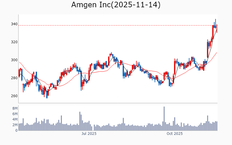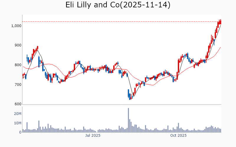 * Healthcare Eli Lilly and Co / Drug Manufacturers - General / 918.7B Johnson & Johnson / Drug Manufacturers - General / 471.9B Amgen Inc / Drug Manufacturers - General / 181.3B Amgen Inc / Drug Manufacturers - General / 181.3B Edwards Lifesciences Corp / Medical Devices / 50.1B Insmed Inc / Biotechnology / 41.2B United Therapeutics Corp / Drug Manufacturers - Specialty & Generic / 20.1B Revolution Medicines Inc / Biotechnology / 13.1B Cytokinetics Inc / Biotechnology / 8.1B * Energy Exxon Mobil Corp / Oil & Gas Integrated / 503.1B Marathon Petroleum Corp / Oil & Gas Refining & Marketing / 60.2B Phillips 66 / Oil & Gas Refining & Marketing / 57.4B Valero Energy Corp / Oil & Gas Refining & Marketing / 55.4B MPLX LP / Oil & Gas Midstream / 54.1B TechnipFMC PLC / Oil & Gas Equipment & Services / 17.7B DT Midstream Inc / Oil & Gas Midstream / 11.8B HF Sinclair Corp / Oil & Gas Refining & Marketing / 10.3B APA Corp (US) / Oil & Gas Exploration & Production / 8.8B * Technology Cisco Systems Inc / Communication Equipment / 307.5B Micron Technology Inc / Semiconductors / 277.0B CACI International Inc / Information Technology Services / 13.1B Canadian Solar Inc / Solar / 2.2B Canadian Solar Inc / Solar / 2.2B * Financials Allstate Corp / Insurance - Property & Casualty / 56.1B Hartford Insurance Group Inc / Insurance - Property & Casualty / 37.3B Loews Corp / Insurance - Property & Casualty / 21.6B Assurant Inc / Insurance - Property & Casualty / 11.4B Old Republic International Corp / Insurance - Property & Casualty / 10.8B * Materials Albemarle Corp / Specialty Chemicals / 13.6B Albemarle Corp / Specialty Chemicals / 13.6B * Real Estate Ventas Inc / REIT - Healthcare Facilities / 36.9B * Consumer Staples Monster Beverage Corp / Beverages - Non-Alcoholic / 69.7B ![]() ✅ Eli Lilly and Co(0.4%) ❗️ 역사적 신고가 돌파 Sector : Healthcare Industry : Drug Manufacturers - General 종목코드 : LLY 시가총액 : 918.7B(1267.8조원) 기업개요 ' - 글로벌 제약 및 생명공학 업체로 신약 개발과 혁신적 치료제 제공에 주력 - 당뇨병, 암, 면역질환 등 다양한 분야에서 강력한 제품 포트폴리오 보유 - 주요 매출원은 당뇨병 치료제와 면역질환 치료제에서 발생 --------------------------------------------------- ![]() ✅ Johnson & Johnson(0.3%) ❗️ 역사적 신고가 돌파 Sector : Healthcare Industry : Drug Manufacturers - General 종목코드 : JNJ 시가총액 : 471.9B(651.2조원) 기업개요 ' - 헬스케어 및 소비재 분야에서 글로벌 리더로 자리매김한 업체 - 제약, 의료기기, 소비자 건강 제품을 주요 사업으로 하는 다각화된 포트폴리오 보유 - 주요 매출원은 제약 부문이며, 혁신적인 신약 개발이 성장동력 --------------------------------------------------- ![]() ✅ Amgen Inc(0.2%) ❗️ 역사적 신고가 돌파 Sector : Healthcare Industry : Drug Manufacturers - General 종목코드 : AMGN 시가총액 : 181.3B(250.2조원) 기업개요 ' - 생명공학 분야에서 혁신적인 바이오의약품 개발 및 상업화에 주력하는 업체 - 면역학, 종양학, 심혈관계 질환 등 다양한 치료 영역에서 강력한 제품 포트폴리오 보유 - 주요 성장동력은 신약 개발과 글로벌 시장 확장 전략 --------------------------------------------------- ![]() ✅ Amgen Inc(0.2%) ❗️ 역사적 신고가 돌파 Sector : Healthcare Industry : Drug Manufacturers - General 종목코드 : AMGN 시가총액 : 181.3B(250.2조원) 기업개요 ' - 생명공학 분야에서 혁신적인 바이오의약품 개발 및 상업화에 주력하는 업체 - 면역학, 종양학, 심혈관계 질환 등 다양한 치료 영역에서 강력한 제품 포트폴리오 보유 - 주요 성장동력은 신약 개발과 글로벌 시장 확장 전략 --------------------------------------------------- ![]() ✅ Edwards Lifesciences Corp(0.2%) ❗️ 52주 신고가 돌파 Sector : Healthcare Industry : Medical Devices 종목코드 : EW 시가총액 : 50.1B(69.1조원) 기업개요 ' - 심혈관 질환 치료 기기 전문 업체 - 매출의 주요 부분은 심장 판막 및 관련 제품에서 발생 - 주요 성장동력은 혁신적 의료기기 개발 및 글로벌 시장 확장 --------------------------------------------------- ![]() ✅ Insmed Inc(1.2%) ❗️ 역사적 신고가 돌파 Sector : Healthcare Industry : Biotechnology 종목코드 : INSM 시가총액 : 41.2B(56.9조원) 기업개요 ' - 희귀질환 치료제 개발 전문 바이오테크 업체 - 주요 매출원은 폐질환 치료제 아르카이로와 관련된 제품 - 주요 성장동력은 임상시험 진행 중인 신약 파이프라인 --------------------------------------------------- ![]() ✅ United Therapeutics Corp(0.9%) ❗️ 역사적 신고가 돌파 Sector : Healthcare Industry : Drug Manufacturers - Specialty & Generic 종목코드 : UTHR 시가총액 : 20.1B(27.7조원) 기업개요 ' - 희귀질환 치료제 개발 및 상업화에 주력하는 바이오제약업체 - 폐동맥고혈압 치료제 분야에서 강력한 시장 지위 보유 - 주요 성장동력은 혁신적 치료제 파이프라인 및 글로벌 시장 확장 전략 --------------------------------------------------- ![]() ✅ Revolution Medicines Inc(5.2%) ❗️ 52주 신고가 돌파를 이어가는 중 Sector : Healthcare Industry : Biotechnology 종목코드 : RVMD 시가총액 : 13.1B(18.1조원) 기업개요 ' - 항암제 개발 전문 바이오테크 업체 - 주요 매출원은 혁신적 암 치료제 파이프라인 - 주요 성장동력은 임상시험 성공과 파트너십 확대 --------------------------------------------------- ![]() ✅ Cytokinetics Inc(1.4%) ❗️ 52주 신고가 돌파 Sector : Healthcare Industry : Biotechnology 종목코드 : CYTK 시가총액 : 8.1B(11.2조원) 기업개요 ' - 생명공학 분야에서 심혈관 및 근골격계 질환 치