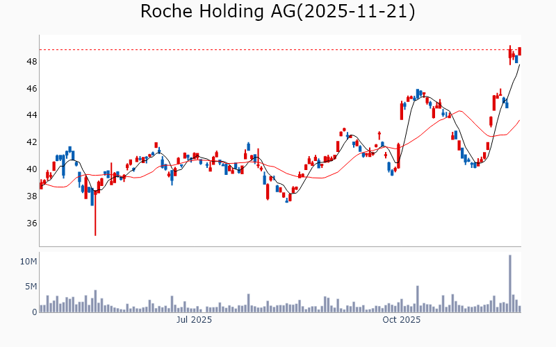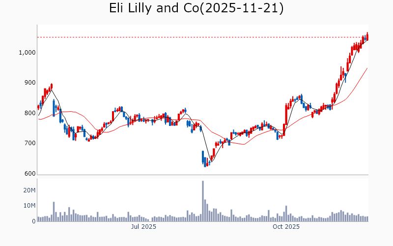 * Healthcare Eli Lilly and Co / Drug Manufacturers - General / 947.0B Johnson & Johnson / Drug Manufacturers - General / 491.8B Roche Holding AG / Drug Manufacturers - General / 333.7B Roche Holding AG / Drug Manufacturers - General / 333.7B AstraZeneca PLC / Drug Manufacturers - General / 280.5B AstraZeneca PLC / Drug Manufacturers - General / 280.5B AstraZeneca PLC / Drug Manufacturers - General / 280.5B Merck & Co Inc / Drug Manufacturers - General / 242.6B Medtronic PLC / Medical Devices / 129.8B HCA Healthcare Inc / Medical Care Facilities / 112.1B McKesson Corp / Medical Distribution / 107.0B Cencora Inc / Medical Distribution / 70.9B IDEXX Laboratories Inc / Diagnostics & Research / 58.0B Cardinal Health Inc / Medical Distribution / 49.9B IQVIA Holdings Inc / Diagnostics & Research / 38.3B Natera Inc / Diagnostics & Research / 31.8B Mettler-Toledo International Inc / Diagnostics & Research / 29.7B Biogen Inc / Drug Manufacturers - General / 25.7B Universal Health Services Inc / Medical Care Facilities / 14.5B Revolution Medicines Inc / Biotechnology / 13.7B Guardant Health Inc / Diagnostics & Research / 13.3B BridgeBio Pharma Inc / Biotechnology / 13.1B Madrigal Pharmaceuticals Inc / Biotechnology / 12.4B Ionis Pharmaceuticals Inc / Biotechnology / 12.3B Axsome Therapeutics Inc / Biotechnology / 7.5B * Financials Royal Bank of Canada / Banks - Diversified / 207.6B Chubb Ltd / Insurance - Property & Casualty / 117.3B Travelers Companies Inc / Insurance - Property & Casualty / 64.8B Allstate Corp / Insurance - Property & Casualty / 56.1B Hartford Insurance Group Inc / Insurance - Property & Casualty / 38.0B W R Berkley Corp / Insurance - Property & Casualty / 29.7B Cincinnati Financial Corp / Insurance - Property & Casualty / 25.9B Loews Corp / Insurance - Property & Casualty / 22.0B Assurant Inc / Insurance - Property & Casualty / 11.4B Old Republic International Corp / Insurance - Property & Casualty / 11.2B * Consumer Discretionary TJX Companies Inc / Apparel Retail / 168.5B Ross Stores Inc / Apparel Retail / 56.5B Restaurant Brands International Inc / Restaurants / 32.1B Rollins Inc / Personal Services / 29.0B Ralph Lauren Corp / Apparel Manufacturing / 20.6B Ralph Lauren Corp / Apparel Manufacturing / 20.6B * Real Estate Welltower Inc / REIT - Healthcare Facilities / 137.2B Annaly Capital Management Inc / REIT - Mortgage / 15.0B Omega Healthcare Investors Inc / REIT - Healthcare Facilities / 13.8B Lamar Advertising Co / REIT - Specialty / 13.3B * Energy MPLX LP / Oil & Gas Midstream / 55.0B TechnipFMC PLC / Oil & Gas Equipment & Services / 17.9B DT Midstream Inc / Oil & Gas Midstream / 11.9B * Utilities Dominion Energy Inc / Utilities - Regulated Electric / 52.5B UGI Corp / Utilities - Regulated Gas / 8.1B * Industrials Expeditors International of Washington Inc / Integrated Freight & Logistics / 19.2B Dycom Industries Inc / Engineering & Construction / 9.4B * Consumer Staples Coca-Cola Co / Beverages - Non-Alcoholic / 313.9B ![]() ✅ Eli Lilly and Co(1.4%) ❗️ 52주 신고가 돌파를 이어가는 중 Sector : Healthcare Industry : Drug Manufacturers - General 종목코드 : LLY 시가총액 : 947.0B(1306.8조원) 기업개요 ' - 글로벌 제약 및 생명공학 업체로 신약 개발과 혁신적 치료제 제공에 주력 - 당뇨병, 암, 면역질환 등 다양한 분야에서 강력한 제품 포트폴리오 보유 - 주요 매출원은 당뇨병 치료제와 면역질환 치료제에서 발생 --------------------------------------------------- ![]() ✅ Johnson & Johnson(0.4%) ❗️ 역사적 신고가 돌파 Sector : Healthcare Industry : Drug Manufacturers - General 종목코드 : JNJ 시가총액 : 491.8B(678.6조원) 기업개요 ' - 헬스케어 및 소비재 분야에서 글로벌 리더로 자리매김한 업체 - 제약, 의료기기, 소비자 건강 제품을 주요 사업으로 하는 다각화된 포트폴리오 보유 - 주요 매출원은 제약 부문이며, 혁신적인 신약 개발이 성장동력 --------------------------------------------------- ![]() ✅ Roche Holding AG(2.3%) ❗️ 52주 신고가 돌파를 이어가는 중 Sector : Healthcare Industry : Drug Manufacturers - General 종목코드 : RHHBY 시가총액 : 333.7B(460.5조원) 기업개요 - Roche Holding AG는 제약 및 진단 분야에서 글로벌 리더로, 암 치료제와 진단 제품에서 강력한 포트폴리오를 보유한 기업 - 최근 구조조정을 통해 연구개발(R&D) 부문에 집중하며, 혁신적인 바이오 의약품 개발에 주력 - 2025년 기준, 매출의 상당 부분이 미국 시장에서 발생하며, 지속적인 신약 출시로 성장세 유지 --------------------------------------------------- ![]() ✅ Roche Holding AG(2.4%) ❗️ 52주 신고가 돌파를 이어가는 중 Sector : Healthcare Industry : Drug Manufacturers - General 종목코드 : RHHVF 시가총액 : 333.7B(460.5조원) 기업개요 - Roche Holding AG는 제약 및 진단 분야에서 글로벌 리더로, 혁신적인 의약품과 진단 솔루션을 제공하는 기업 - 최근 사업 재편을 통해 디지털 헬스케어와 맞춤형 의료 분야에 집중하며, 매출의 상당 부분을 암 치료제와 희귀질환 치료제에서 창출 - 2025년 기준으로 미국 주식시장에 상장된 상태이며, 지속적인 연구개발 투자로 장기 성장 가능성 보유 --------------------------------------------------- ![]() ✅ AstraZeneca PLC(2.6%) ❗️ 52주 신고가 돌파를 이어가는 중 Sector : Healthcare Industry : Drug Manufacturers - General 종목코드 : AZN 시가총액 : 280.5B(387.1조원) 기업개요 - AstraZeneca PLC는 주로 항암제와 면역학 분야에서 강력한 포트폴리오를 보유한 글로벌 제약사 - 최근 구조조정을 통해 연구개발(R&D) 부문에 집중하며 비용 효율성을 높이고 있음 - 2025년 기준, 매출의 상당 부분이 신약 개발과 기존 제품의 시장 확장에 