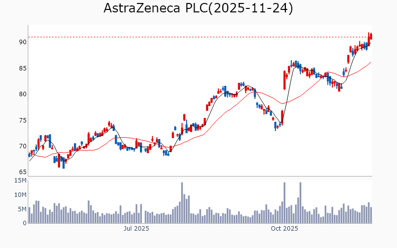 * Healthcare Eli Lilly and Co / Drug Manufacturers - General / 958.2B Johnson & Johnson / Drug Manufacturers - General / 496.4B AstraZeneca PLC / Drug Manufacturers - General / 283.1B AstraZeneca PLC / Drug Manufacturers - General / 283.1B AstraZeneca PLC / Drug Manufacturers - General / 283.1B Merck & Co Inc / Drug Manufacturers - General / 249.2B Medtronic PLC / Medical Devices / 132.4B HCA Healthcare Inc / Medical Care Facilities / 114.3B McKesson Corp / Medical Distribution / 107.4B Cencora Inc / Medical Distribution / 72.2B IDEXX Laboratories Inc / Diagnostics & Research / 60.1B Cardinal Health Inc / Medical Distribution / 50.2B Insmed Inc / Biotechnology / 44.1B Agilent Technologies Inc / Diagnostics & Research / 43.5B IQVIA Holdings Inc / Diagnostics & Research / 38.9B Natera Inc / Diagnostics & Research / 32.9B Mettler-Toledo International Inc / Diagnostics & Research / 30.0B Biogen Inc / Drug Manufacturers - General / 25.9B United Therapeutics Corp / Drug Manufacturers - Specialty & Generic / 20.6B Medpace Holdings Inc / Diagnostics & Research / 17.4B Universal Health Services Inc / Medical Care Facilities / 14.8B Revolution Medicines Inc / Biotechnology / 14.2B Guardant Health Inc / Diagnostics & Research / 14.0B BridgeBio Pharma Inc / Biotechnology / 13.7B Madrigal Pharmaceuticals Inc / Biotechnology / 13.3B Ionis Pharmaceuticals Inc / Biotechnology / 12.7B Elanco Animal Health Inc / Drug Manufacturers - Specialty & Generic / 11.5B Jazz Pharmaceuticals PLC / Biotechnology / 11.0B Avidity Biosciences Inc / Biotechnology / 10.7B Abivax SA / Biotechnology / 9.3B Cytokinetics Inc / Biotechnology / 8.2B Nuvalent Inc / Biotechnology / 8.0B Axsome Therapeutics Inc / Biotechnology / 7.6B Brightspring Health Services Inc / Health Information Services / 7.3B * Industrials Cummins Inc / Specialty Industrial Machinery / 67.0B Ferrovial SE / Engineering & Construction / 46.4B Expeditors International of Washington Inc / Integrated Freight & Logistics / 19.3B CH Robinson Worldwide Inc / Integrated Freight & Logistics / 18.3B Donaldson Company Inc / Specialty Industrial Machinery / 10.3B Dycom Industries Inc / Engineering & Construction / 9.9B Danaos Corp / Marine Shipping / 1.8B * Financials Toronto-Dominion Bank / Banks - Diversified / 140.4B Travelers Companies Inc / Insurance - Property & Casualty / 64.9B Hartford Insurance Group Inc / Insurance - Property & Casualty / 38.1B Cincinnati Financial Corp / Insurance - Property & Casualty / 26.0B Loews Corp / Insurance - Property & Casualty / 22.1B Manulife Financial Corp / Asset Management / 3.1B * Utilities Sempra / Utilities - Diversified / 61.3B Dominion Energy Inc / Utilities - Regulated Electric / 52.6B FirstEnergy Corp / Utilities - Regulated Electric / 27.4B Korea Electric Power Corp / Utilities - Regulated Electric / 21.0B UGI Corp / Utilities - Regulated Gas / 8.3B * Real Estate Welltower Inc / REIT - Healthcare Facilities / 138.8B Prologis Inc / REIT - Industrial / 120.3B Omega Healthcare Investors Inc / REIT - Healthcare Facilities / 13.8B Lamar Advertising Co / REIT - Specialty / 13.4B First Industrial Realty Trust Inc / REIT - Industrial / 7.7B * Consumer Discretionary Ross Stores Inc / Apparel Retail / 56.6B Ralph Lauren Corp / Apparel Manufacturing / 21.2B Ralph Lauren Corp / Apparel Manufacturing / 21.2B H World Group Ltd / Lodging / 14.0B * Technology Apple Inc / Consumer Electronics / 4080.0B Lumentum Holdings Inc / Communication Equipment / 21.2B CACI International Inc / Information Technology Services / 13.5B * Materials Barrick Mining Corp / Gold / 61.6B ArcelorMittal SA / Steel / 30.8B * Energy Enterprise Products Partners LP / Oil & Gas Midstream / 70.4B TechnipFMC PLC / Oil & Gas Equipment & Services / 18.0B * Communication Services Alphabet Inc / Internet Content & Information / 3850.0B Telkom Indonesia (Persero) Tbk PT / Telecom Services / 22.0B ![]() ✅ Eli Lilly and Co(1.0%) ❗️ 역사적 신고가 돌파 Sector : Healthcare Industry : Drug Manufacturers - General 종목코드 : LLY 시가총액 : 958.2B(1322.3조원) 기업개요 ' - 글로벌 제약 및 생명공학 업체로 신약 개발과 혁신적 치료제 제공에 주력 - 당뇨병, 암, 면역질환 등 다양한 분야에서 강력한 제품 포트폴리오 보유 - 주요 매출원은 당뇨병 치료제와 면역질환 치료제에서 발생 --------------------------------------------------- ![]() ✅ Johnson & Johnson(1.1%) ❗️ 52주 신고가 돌파를 이어가는 중 Sector : Healthcare Industry : Drug Manufacturers - General 종목코드 : JNJ 시가총액 : 496.4B(685.1조원) 기업개요 ' - 헬스케어 및 소비재 분야에서 글로벌 리더로 자리매김한 업체 - 제약, 의료기기, 소비자 건강 제품을 주요 사업으로 하는 다각화된 포트폴리오 보유 - 주요 매출원은 제약 부문이며, 혁신적인 신약 개발이 성장동력 --------------------------------------------------- ![]() ✅ AstraZeneca PLC(0.6%) ❗️ 역사적 신고가 돌파 Sector : Healthcare Industry : Drug Manufacturers - General 종목코드 : AZN 시가총액 : 283.1B(390.6조원) 기업개요 - AstraZeneca PLC는 주로 항암제와 면역학 분야에서 강력한 포트폴리오를 보유한 글로벌 제약사 - 최근 구조조정을 통해 연구개발(R&D) 부문에 집중하며 비용 효율성을 높이고 있음 - 매출의 상당 부분이 신약 개발과 기존 제품의 시장 확장에 기반을 두고 있음 --------------------------------------------------- ![]() ✅ AstraZeneca PLC(0.6%) ❗️ 역사적 신고가 돌파 Sector : Healthcare Industry : Drug Manufacturers - General 종목코드 : AZN 시가총액 : 283.1B(390.6조원) 기업개요 - AstraZeneca PLC는 주로 항암제와 면역학 분야에서 강력한 포트폴리오를 보유한 글로벌 제약사 - 최근 mRNA 기술을 활용한 백신 및 치료제 개발에 집중하며 연구개발(R&D) 투자 확대 - 2025년까지 매출의