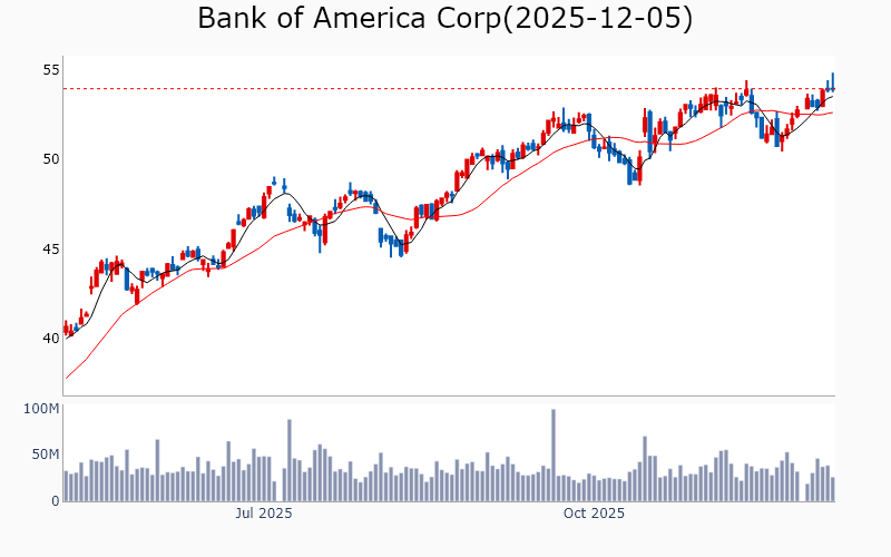 * Financials Bank of America Corp / Banks - Diversified / 393.9B Morgan Stanley / Capital Markets / 280.6B Goldman Sachs Group Inc / Capital Markets / 268.1B Royal Bank of Canada / Banks - Diversified / 225.0B Citigroup Inc / Banks - Diversified / 194.8B Mitsubishi UFJ Financial Group Inc / Banks - Diversified / 185.0B Capital One Financial Corp / Credit Services / 147.6B Toronto-Dominion Bank / Banks - Diversified / 145.5B Sumitomo Mitsui Financial Group Inc / Banks - Diversified / 122.3B Bank of Nova Scotia / Banks - Diversified / 87.2B Canadian Imperial Bank of Commerce / Banks - Diversified / 84.2B Bank of New York Mellon Corp / Banks - Diversified / 79.5B State Street Corp / Asset Management / 34.5B KeyCorp / Banks - Regional / 21.1B Principal Financial Group Inc / Asset Management / 19.2B East West Bancorp Inc / Banks - Regional / 15.2B Stifel Financial Corp / Capital Markets / 12.9B Invesco Ltd / Asset Management / 11.7B Webster Financial Corp / Banks - Regional / 10.1B Lincoln National Corp / Insurance - Life / 8.1B Affiliated Managers Group Inc / Asset Management / 7.7B Manulife Financial Corp / Asset Management / 3.1B * Technology KLA Corp / Semiconductor Equipment & Materials / 159.6B Analog Devices Inc / Semiconductors / 137.7B Analog Devices Inc / Semiconductors / 137.6B Keysight Technologies Inc / Scientific & Technical Instruments / 36.0B MongoDB Inc / Software - Infrastructure / 33.3B Teradyne Inc / Semiconductor Equipment & Materials / 31.4B Coherent Corp / Scientific & Technical Instruments / 28.6B Lumentum Holdings Inc / Communication Equipment / 23.5B United Microelectronics Corp / Semiconductors / 19.6B Unity Software Inc / Software - Application / 19.6B Unity Software Inc / Software - Application / 19.6B Lattice Semiconductor Corp / Semiconductors / 10.8B Amkor Technology Inc / Semiconductor Equipment & Materials / 10.7B UiPath Inc / Software - Infrastructure / 9.9B SiTime Corp / Semiconductors / 9.2B Jfrog Ltd / Software - Application / 7.7B TTM Technologies Inc / Electronic Components / 7.6B Semtech Corp / Semiconductors / 7.4B * Industrials Caterpillar Inc / Farm & Heavy Construction Machinery / 282.3B Caterpillar Inc / Farm & Heavy Construction Machinery / 282.3B Parker-Hannifin Corp / Specialty Industrial Machinery / 111.1B Rockwell Automation Inc / Specialty Industrial Machinery / 45.4B Westinghouse Air Brake Technologies Corp / Railroads / 36.8B AerCap Holdings NV / Rental & Leasing Services / 23.3B Expeditors International of Washington Inc / Integrated Freight & Logistics / 20.3B Southwest Airlines Co / Airlines / 19.6B Woodward Inc / Aerospace & Defense / 18.2B ZTO Express (Cayman) Inc / Integrated Freight & Logistics / 17.1B MasTec Inc / Engineering & Construction / 17.0B RBC Bearings Inc / Tools & Accessories / 14.0B Wesco International Inc / Industrial Distribution / 13.3B Mueller Industries Inc / Metal Fabrication / 12.6B Flowserve Corp / Specialty Industrial Machinery / 9.2B Danaos Corp / Marine Shipping / 1.8B * Consumer Discretionary TJX Companies Inc / Apparel Retail / 170.2B Carvana Co / Auto & Truck Dealerships / 87.5B General Motors Co / Auto Manufacturers / 71.3B General Motors Co / Auto Manufacturers / 71.3B Restaurant Brands International Inc / Restaurants / 33.4B Rollins Inc / Personal Services / 29.5B Ulta Beauty Inc / Specialty Retail / 26.7B Ulta Beauty Inc / Specialty Retail / 26.7B H World Group Ltd / Lodging / 14.7B Dillard's Inc / Department Stores / 10.9B Five Below Inc / Specialty Retail / 9.6B Modine Manufacturing Co / Auto Parts / 8.6B * Healthcare Edwards Lifesciences Corp / Medical Devices / 50.1B Natera Inc / Diagnostics & Research / 33.7B Teva Pharmaceutical Industries Ltd / Drug Manufacturers - Specialty & Generic / 32.6B Neurocrine Biosciences Inc / Drug Manufacturers - Specialty & Generic / 15.5B Revolution Medicines Inc / Biotechnology / 15.4B Avidity Biosciences Inc / Biotechnology / 10.8B Nuvalent Inc / Biotechnology / 8.5B * Communication Services Warner Bros Discovery Inc / Entertainment / 64.6B Electronic Arts Inc / Electronic Gaming & Multimedia / 50.9B Fox Corp / Entertainment / 30.4B Fox Corp / Entertainment / 28.3B EchoStar Corp / Telecom Services / 23.7B New York Times Co / Publishing / 10.5B Globalstar Inc / Telecom Services / 8.7B * Real Estate Ventas Inc / REIT - Healthcare Facilities / 38.1B Annaly Capital Management Inc / REIT - Mortgage / 15.6B Jones Lang LaSalle Inc / Real Estate Services / 15.4B Lamar Advertising Co / REIT - Specialty / 13.5B AGNC Investment Corp / REIT - Mortgage / 11.4B First Industrial Realty Trust Inc / REIT - Industrial / 7.9B * Consumer Staples Walmart Inc / Discount Stores / 918.0B Estee Lauder Companies Inc / Household & Personal Products / 37.9B Estee Lauder Companies Inc / Household & Personal Products / 37.9B Dollar General Corp / Discount Stores / 29.1B Dollar Tree Inc / Discount Stores / 24.4B Coca-Cola Consolidated Inc / Beverages - Non-Alcoholic / 14.4B * Materials Southern Copper Corp / Copper / 115.2B Southern Copper Corp / Copper / 115.0B Dupont De Nemours Inc / Specialty Chemicals / 17.0B IAMGOLD Corp / Gold / 8.7B Commercial Metals Co / Steel / 7.4B * Energy Canadian Natural Resources Ltd / Oil & Gas Exploration & Production / 71.8B EQT Corp / Oil & Gas Exploration & Production / 37.9B Expand Energy Corp / Oil & Gas Exploration & Production / 29.3B DT Midstream Inc / Oil & Gas Midstream / 12.4B APA Corp (US) / Oil & Gas Exploration & Production / 9.6B ![]() ✅ Bank of America Corp(0.1%) ❗️ 역사적 신고가 돌파 Sector : Financials Industry : Banks - Diversified 종목코드 : BAC 시가총액 : 393.9B(543.5조원) 기업개요 ' - 금융 서비스 제공업체로, 주력 사업은 소비자 금융, 기업 금융, 자산 관리 - 최근 디지털 뱅킹 플랫폼 강화 및 고객 경험 개선에 집중 - 주요 매출원은 대출 및 예금 서비스, 투자 은행 부문 성장동력 --------------------------------------------------- ![]() ✅ Morgan Stan