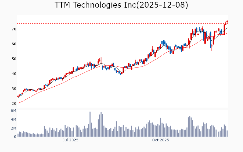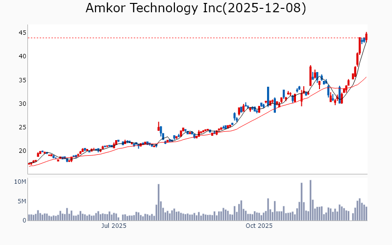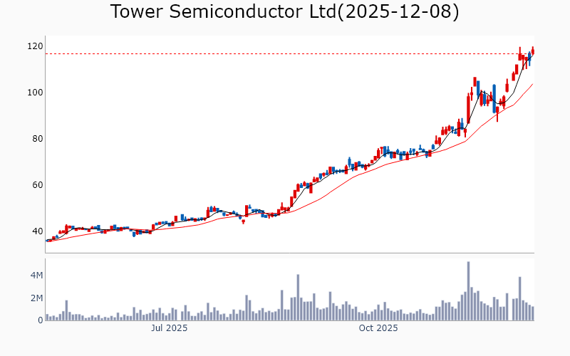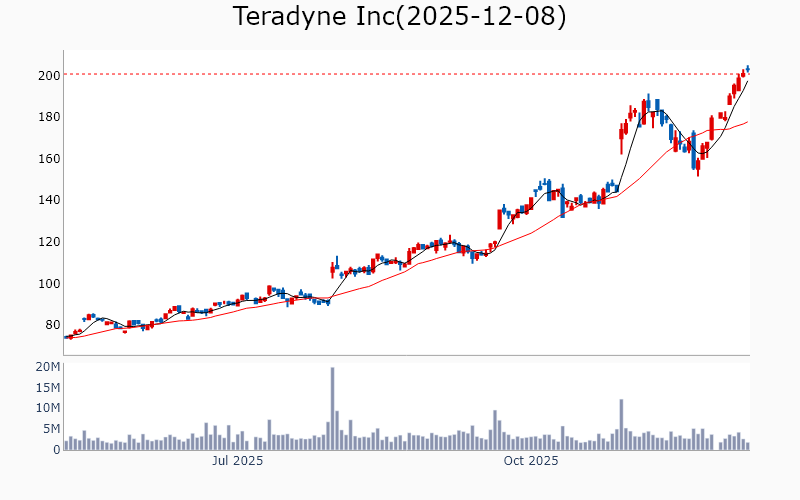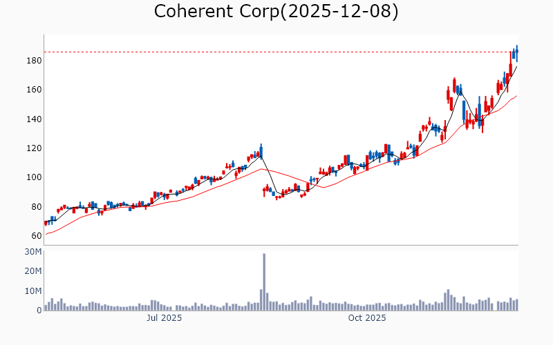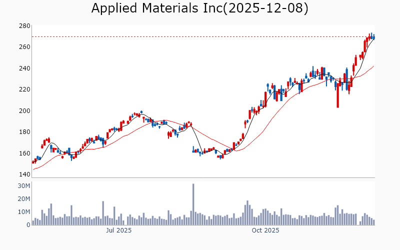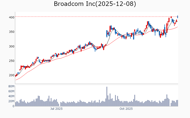 * Technology Broadcom Inc / Semiconductors / 1890.0B Cisco Systems Inc / Communication Equipment / 311.6B Applied Materials Inc / Semiconductor Equipment & Materials / 213.6B KLA Corp / Semiconductor Equipment & Materials / 161.0B MongoDB Inc / Software - Infrastructure / 34.1B Teradyne Inc / Semiconductor Equipment & Materials / 31.8B Ciena Corp / Communication Equipment / 30.0B Coherent Corp / Scientific & Technical Instruments / 29.2B Zoom Communications Inc / Software - Application / 26.4B Flex Ltd / Electronic Components / 25.0B Lumentum Holdings Inc / Communication Equipment / 24.3B Unity Software Inc / Software - Application / 21.0B Unity Software Inc / Software - Application / 21.0B United Microelectronics Corp / Semiconductors / 19.8B Lasertec Corp / Semiconductor Equipment & Materials / 18.4B Fabrinet / Electronic Components / 17.6B Tower Semiconductor Ltd / Semiconductors / 13.3B Amkor Technology Inc / Semiconductor Equipment & Materials / 11.1B MKS Inc / Scientific & Technical Instruments / 11.0B UiPath Inc / Software - Infrastructure / 10.2B SiTime Corp / Semiconductors / 9.4B TTM Technologies Inc / Electronic Components / 7.8B Jfrog Ltd / Software - Application / 7.7B * Financials Wells Fargo & Co / Banks - Diversified / 282.2B Morgan Stanley / Capital Markets / 280.6B Goldman Sachs Group Inc / Capital Markets / 271.9B Royal Bank of Canada / Banks - Diversified / 227.0B Citigroup Inc / Banks - Diversified / 194.7B Bank of Nova Scotia / Banks - Diversified / 88.5B US Bancorp / Banks - Regional / 79.9B Bank of New York Mellon Corp / Banks - Diversified / 79.6B ING Groep NV / Banks - Diversified / 77.6B Truist Financial Corp / Banks - Regional / 61.0B State Street Corp / Asset Management / 34.6B Northern Trust Corp / Asset Management / 25.2B Citizens Financial Group Inc / Banks - Regional / 23.9B KeyCorp / Banks - Regional / 21.2B East West Bancorp Inc / Banks - Regional / 15.2B Webster Financial Corp / Banks - Regional / 10.1B Lincoln National Corp / Insurance - Life / 8.2B * Industrials Quanta Services Inc / Engineering & Construction / 69.0B Quanta Services Inc / Engineering & Construction / 69.0B CSX Corp / Railroads / 67.6B Ferrovial SE / Engineering & Construction / 47.3B Southwest Airlines Co / Airlines / 19.6B J B Hunt Transport Services Inc / Integrated Freight & Logistics / 18.1B MasTec Inc / Engineering & Construction / 17.1B RBC Bearings Inc / Tools & Accessories / 14.0B Acuity Inc / Electrical Equipment & Parts / 11.3B IES Holdings Inc / Engineering & Construction / 8.8B Air Lease Corp / Rental & Leasing Services / 7.2B * Healthcare Roche Holding AG / Drug Manufacturers - General / 336.3B Roche Holding AG / Drug Manufacturers - General / 336.3B Revolution Medicines Inc / Biotechnology / 15.5B Roivant Sciences Ltd / Biotechnology / 14.6B BridgeBio Pharma Inc / Biotechnology / 14.3B Arrowhead Pharmaceuticals Inc / Biotechnology / 9.3B Merus NV / Biotechnology / 7.3B Structure Therapeutics Inc / Biotechnology / 4.2B * Consumer Discretionary TJX Companies Inc / Apparel Retail / 170.6B Carvana Co / Auto & Truck Dealerships / 98.1B Ross Stores Inc / Apparel Retail / 58.0B Tapestry Inc / Luxury Goods / 24.0B Tapestry Inc / Luxury Goods / 24.0B Tapestry Inc / Luxury Goods / 24.0B Hasbro Inc / Leisure / 11.4B Five Below Inc / Specialty Retail / 9.6B * Communication Services Warner Bros Discovery Inc / Entertainment / 67.5B TKO Group Holdings Inc / Entertainment / 39.7B Fox Corp / Entertainment / 30.7B Fox Corp / Entertainment / 28.6B EchoStar Corp / Telecom Services / 25.4B New York Times Co / Publishing / 10.6B * Materials CRH PLC / Building Materials / 84.8B ArcelorMittal SA / Steel / 32.6B Dupont De Nemours Inc / Specialty Chemicals / 17.0B Cemex SAB de CV / Building Materials / 15.7B * Real Estate Ventas Inc / REIT - Healthcare Facilities / 38.3B CareTrust REIT Inc / REIT - Healthcare Facilities / 8.4B * Energy Devon Energy Corp / Oil & Gas Exploration & Production / 23.6B ![]() ✅ Broadcom Inc(2.8%) ❗️ 역사적 신고가 돌파 Sector : Technology Industry : Semiconductors 종목코드 : AVGO 시가총액 : 1890.0B(2608.2조원) 기업개요 ' - 반도체 및 소프트웨어 솔루션을 제공하는 글로벌 기술 업체 - 네트워크, 데이터센터, 소프트웨어 솔루션에서 주요 매출 발생 - 반도체 설계 및 개발에서의 경쟁력 보유 --------------------------------------------------- ![]() ✅ Cisco Systems Inc(1.1%) ❗️ 역사적 신고가 돌파 Sector : Technology Industry : Communication Equipment 종목코드 : CSCO 시가총액 : 311.6B(430.0조원) 기업개요 ' - 네트워킹 장비 및 소프트웨어 솔루션 제공업체 - 클라우드 및 보안 솔루션을 통한 매출 성장 - 주요 성장동력은 디지털 전환 수요 증가 --------------------------------------------------- ![]() ✅ Applied Materials Inc(0.1%) ❗️ 역사적 신고가 돌파 Sector : Technology Industry : Semiconductor Equipment & Materials 종목코드 : AMAT 시가총액 : 213.6B(294.7조원) 기업개요 ' - 반도체 및 디스플레이 제조 장비를 제공하는 글로벌 업체 - 매출의 상당 부분이 반도체 장비 부문에서 발생하며, 첨단 기술 개발에 집중 - 주요 성장동력은 반도체 산업의 기술 혁신과 고객사와의 장기 계약 --------------------------------------------------- ![]() ✅ KLA Corp(0.9%) ❗️ 역사적 신고가 돌파 Sector : Technology Industry : Semiconductor Equipment & Materials 종목코드 : KLAC 시가총액 : 161.0B(222.2조원) 기업개요 ' - 반도체 제조 장비 및 공정 제어 솔루션을 제공하는 업체 - 매출의 상당 부분이 반도체 산업의 기술 발전과 수요 증가에 기반 - 주요 성장동력은 첨단 공정 기술과 혁신적인 장비 개발 능력 --------------------------------------------------- ![]() ✅ MongoDB Inc(2.2%) ❗️ 52주 신고가 돌파를 이어가는 중 Sector : Technology Industry : Software 