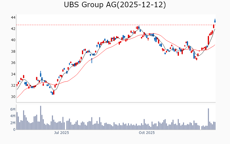 * Financials Bank of America Corp / Banks - Diversified / 402.0B Wells Fargo & Co / Banks - Diversified / 290.1B Citigroup Inc / Banks - Diversified / 200.1B UBS Group AG / Banks - Diversified / 136.7B Sumitomo Mitsui Financial Group Inc / Banks - Diversified / 122.6B Chubb Ltd / Insurance - Property & Casualty / 121.5B Canadian Imperial Bank of Commerce / Banks - Diversified / 85.7B Truist Financial Corp / Banks - Regional / 63.6B ORIX Corp / Financial Conglomerates / 31.8B Markel Group Inc / Insurance - Property & Casualty / 27.3B Credicorp Ltd / Banks - Regional / 22.4B Banco de Chile / Banks - Regional / 19.4B Banco Santander Chile / Banks - Regional / 14.6B Assurant Inc / Insurance - Property & Casualty / 11.5B Firstcash Holdings Inc / Credit Services / 7.2B * Consumer Discretionary McDonald's Corp / Restaurants / 225.6B TJX Companies Inc / Apparel Retail / 173.3B General Motors Co / Auto Manufacturers / 75.8B General Motors Co / Auto Manufacturers / 75.8B Ford Motor Co / Auto Manufacturers / 54.8B Rivian Automotive Inc / Auto Manufacturers / 22.6B Ralph Lauren Corp / Apparel Manufacturing / 22.5B Ralph Lauren Corp / Apparel Manufacturing / 22.4B InterContinental Hotels Group PLC / Lodging / 20.6B H World Group Ltd / Lodging / 14.8B Magna International Inc / Auto Parts / 14.6B Five Below Inc / Specialty Retail / 10.1B Urban Outfitters Inc / Apparel Retail / 7.3B * Materials Wheaton Precious Metals Corp / Gold / 53.2B ArcelorMittal SA / Steel / 34.5B Nutrien Ltd / Agricultural Inputs / 29.5B Sociedad Quimica y Minera de Chile SA / Specialty Chemicals / 18.8B Royal Gold Inc / Gold / 18.5B Cemex SAB de CV / Building Materials / 16.1B Alamos Gold Inc / Gold / 16.1B Equinox Gold Corp / Gold / 11.5B Sibanye Stillwater Ltd / Other Precious Metals & Mining / 9.8B Hudbay Minerals Inc / Copper / 7.4B Compania de Minas Buenaventura SAA / Other Precious Metals & Mining / 7.1B * Healthcare Johnson & Johnson / Drug Manufacturers - General / 509.9B Roche Holding AG / Drug Manufacturers - General / 342.4B United Therapeutics Corp / Drug Manufacturers - Specialty & Generic / 21.2B Roivant Sciences Ltd / Biotechnology / 15.4B Revolution Medicines Inc / Biotechnology / 15.3B BridgeBio Pharma Inc / Biotechnology / 14.5B Ascendis Pharma A/S / Biotechnology / 13.5B Penumbra Inc / Medical Devices / 12.2B Avidity Biosciences Inc / Biotechnology / 10.8B Brightspring Health Services Inc / Health Information Services / 7.5B Merus NV / Biotechnology / 7.3B * Industrials CSX Corp / Railroads / 69.6B Ferrovial SE / Engineering & Construction / 47.6B Ryanair Holdings PLC / Airlines / 36.6B Southwest Airlines Co / Airlines / 21.3B LATAM Airlines Group SA / Airlines / 15.9B Textron Inc / Aerospace & Defense / 15.4B RBC Bearings Inc / Tools & Accessories / 14.5B Grupo Aeroportuario del Pacifico SAB de CV / Airports & Air Services / 13.1B Huntington Ingalls Industries Inc / Aerospace & Defense / 12.8B Air Lease Corp / Rental & Leasing Services / 7.2B * Communication Services Warner Bros Discovery Inc / Entertainment / 74.3B TKO Group Holdings Inc / Entertainment / 40.6B EchoStar Corp / Telecom Services / 30.9B Roku Inc / Entertainment / 15.9B New York Times Co / Publishing / 11.0B * Technology Jack Henry & Associates Inc / Information Technology Services / 13.6B Jfrog Ltd / Software - Application / 8.2B * Consumer Staples Walmart Inc / Discount Stores / 928.1B Fomento Economico Mexicano SAB de CV / Beverages - Brewers / 32.5B ![]() ✅ Bank of America Corp(1.1%) ❗️ 52주 신고가 돌파를 이어가는 중 Sector : Financials Industry : Banks - Diversified 종목코드 : BAC 시가총액 : 402.0B(554.8조원) 기업개요 ' - 금융 서비스 제공업체로, 주력 사업은 소비자 금융, 기업 금융, 자산 관리 - 최근 디지털 뱅킹 플랫폼 강화 및 고객 경험 개선에 집중 - 주요 매출원은 대출 및 예금 서비스, 투자 은행 부문 성장동력 --------------------------------------------------- ![]() ✅ Wells Fargo & Co(0.2%) ❗️ 역사적 신고가 돌파 Sector : Financials Industry : Banks - Diversified 종목코드 : WFC 시가총액 : 290.1B(400.3조원) 기업개요 ' - 금융 서비스 및 대출 중심의 대형 은행 업체 - 자산 관리, 투자 은행, 상업 은행 등 다양한 금융 서비스 제공 - 주요 성장동력은 디지털 금융 서비스 확장 및 고객 기반 확대 --------------------------------------------------- ![]() ✅ Citigroup Inc(0.0%) ❗️ 역사적 신고가 돌파 Sector : Financials Industry : Banks - Diversified 종목코드 : C 시가총액 : 200.1B(276.1조원) 기업개요 ' - 글로벌 금융 서비스 제공업체로, 투자은행, 자산관리, 소비자 금융 등 다양한 사업영역 보유 - 최근 디지털 금융 플랫폼 강화 및 핀테크 기업과의 협력 확대 - 주요 성장동력은 글로벌 네트워크와 혁신적 금융 솔루션 제공 --------------------------------------------------- ![]() ✅ UBS Group AG(1.3%) ❗️ 52주 신고가 돌파를 이어가는 중 Sector : Financials Industry : Banks - Diversified 종목코드 : UBS 시가총액 : 136.7B(188.7조원) 기업개요 - UBS Group AG는 글로벌 금융 서비스 기업으로 자산 관리, 투자 은행, 개인 및 기업 금융 서비스 제공 - 최근 구조조정을 통해 효율성을 높이고 디지털 전환 가속화 - 주 수익원은 자산 관리 부문으로 안정적인 수익 창출 기반 확보 --------------------------------------------------- ![]() ✅ Sumitomo Mitsui Financial Group Inc(0.4%) ❗️ 역사적 신고가 돌파 Sector : Financials Industry : Banks - Diversified 종목코드 : SMFG 시가총액 : 122.6B(169.2조원) 기업개요 - Sumitomo Mitsui Financial Group Inc는 일본의 주요 금융기관으로, 글로벌 금융 서비스와 투자은행 업무를 포함한 다양한 사업영역을 보유 - 최근 구조조정을 통해 디지털 금융 서비스와 해외 시장 확장을 강화하