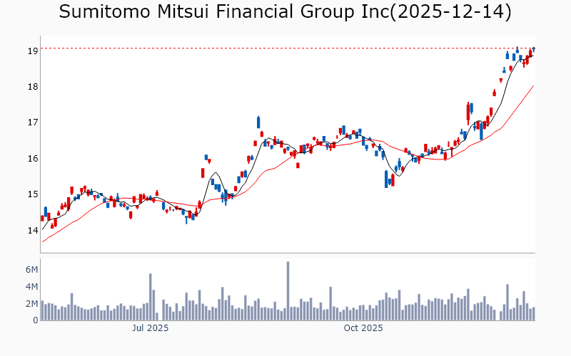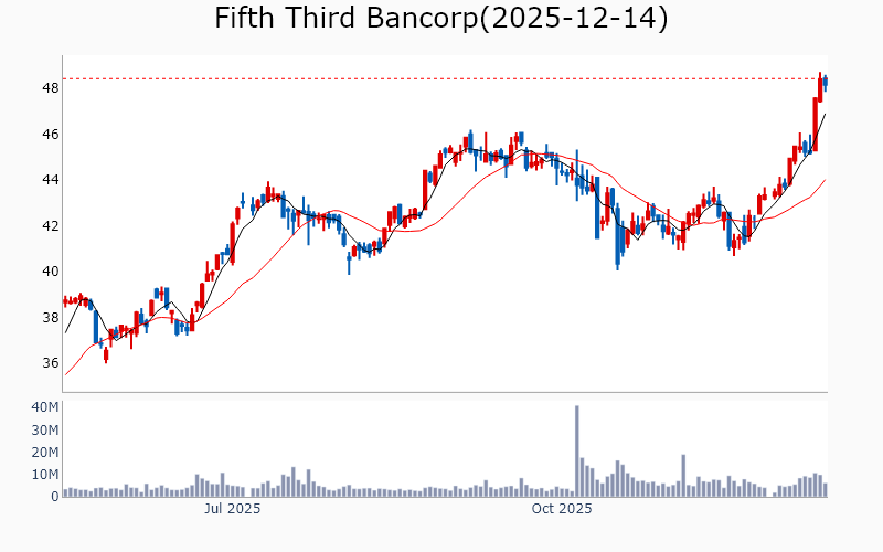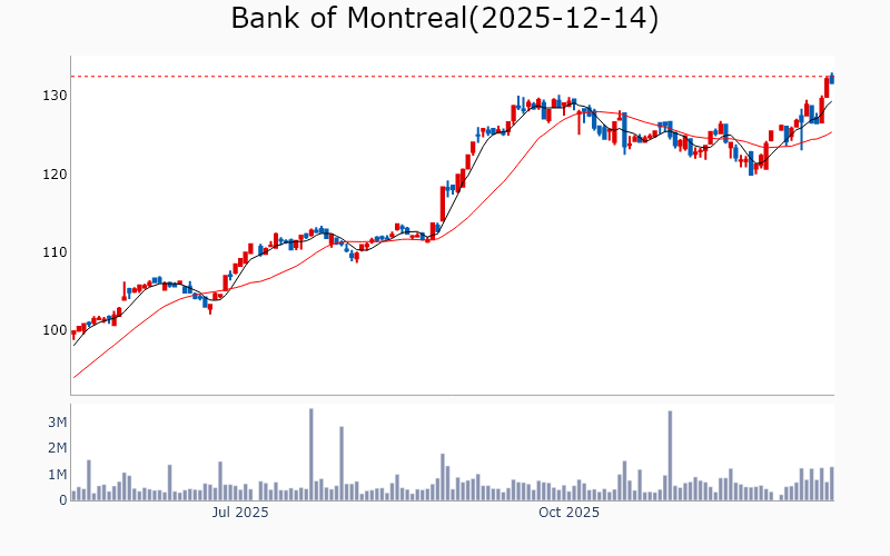* Financials Bank of America Corp / Banks - Diversified / 402.7B Morgan Stanley / Capital Markets / 283.6B Banco Santander SA / Banks - Diversified / 166.3B UBS Group AG / Banks - Diversified / 136.7B Sumitomo Mitsui Financial Group Inc / Banks - Diversified / 122.6B Bank of Montreal / Banks - Diversified / 93.7B ORIX Corp / Financial Conglomerates / 31.8B Fifth Third Bancorp / Banks - Regional / 31.8B Regions Financial Corp / Banks - Regional / 24.2B Invesco Ltd / Asset Management / 11.7B Wintrust Financial Corp / Banks - Regional / 9.4B Cadence Bank / Banks - Regional / 8.2B Firstcash Holdings Inc / Credit Services / 7.2B Jackson Financial Inc / Insurance - Life / 7.2B * Industrials Paccar Inc / Farm & Heavy Construction Machinery / 58.6B Ferrovial SE / Engineering & Construction / 47.6B Rockwell Automation Inc / Specialty Industrial Machinery / 45.5B Westinghouse Air Brake Technologies Corp / Railroads / 36.6B Ryanair Holdings PLC / Airlines / 36.6B Vestas Wind Systems A/S / Specialty Industrial Machinery / 26.7B Expeditors International of Washington Inc / Integrated Freight & Logistics / 20.3B Textron Inc / Aerospace & Defense / 15.4B RBC Bearings Inc / Tools & Accessories / 14.5B Huntington Ingalls Industries Inc / Aerospace & Defense / 12.8B Advanced Drainage Systems Inc / Building Products & Equipment / 11.6B SPX Technologies Inc / Building Products & Equipment / 11.0B Valmont Industries Inc / Conglomerates / 8.2B * Consumer Discretionary Expedia Group Inc / Travel Services / 33.6B Viking Holdings Ltd / Travel Services / 30.5B Tapestry Inc / Luxury Goods / 25.2B Tapestry Inc / Luxury Goods / 25.2B Tapestry Inc / Luxury Goods / 25.2B Ralph Lauren Corp / Apparel Manufacturing / 22.4B Ralph Lauren Corp / Apparel Manufacturing / 22.4B Somnigroup International Inc / Furnishings, Fixtures & Appliances / 19.7B Magna International Inc / Auto Parts / 14.6B Dillard's Inc / Department Stores / 10.7B Five Below Inc / Specialty Retail / 10.1B Gildan Activewear Inc / Apparel Manufacturing / 9.0B Urban Outfitters Inc / Apparel Retail / 7.3B * Materials Southern Copper Corp / Copper / 116.7B Southern Copper Corp / Copper / 116.7B CRH PLC / Building Materials / 84.7B Nutrien Ltd / Agricultural Inputs / 30.3B Steel Dynamics Inc / Steel / 25.1B Alamos Gold Inc / Gold / 16.1B Sibanye Stillwater Ltd / Other Precious Metals & Mining / 9.8B First Majestic Silver Corp / Silver / 7.8B * Healthcare Johnson & Johnson / Drug Manufacturers - General / 509.8B GSK plc / Drug Manufacturers - General / 97.8B United Therapeutics Corp / Drug Manufacturers - Specialty & Generic / 21.3B Ascendis Pharma A/S / Biotechnology / 13.5B Avidity Biosciences Inc / Biotechnology / 10.8B Krystal Biotech Inc / Biotechnology / 7.1B * Communication Services Fox Corp / Entertainment / 31.6B Fox Corp / Entertainment / 29.7B Globalstar Inc / Telecom Services / 9.3B * Technology Zoom Communications Inc / Software - Application / 26.5B ![]() ✅ Bank of America Corp(0.0%) ❗️ 역사적 신고가 돌파 Sector : Financials Industry : Banks - Diversified 종목코드 : BAC 시가총액 : 402.7B(555.7조원) 기업개요 ' - 금융 서비스 제공업체로, 주력 사업은 소비자 금융, 기업 금융, 자산 관리 - 최근 디지털 뱅킹 플랫폼 강화 및 고객 경험 개선에 집중 - 주요 매출원은 대출 및 예금 서비스, 투자 은행 부문 성장동력 --------------------------------------------------- ![]() ✅ Morgan Stanley(0.0%) ❗️ 역사적 신고가 돌파 Sector : Financials Industry : Capital Markets 종목코드 : MS 시가총액 : 283.6B(391.3조원) 기업개요 ' - 글로벌 금융 서비스 제공업체로 투자은행, 자산관리, 자본시장 등 다양한 사업영역 보유 - 최근 자산관리 부문에서 강력한 성장세를 보이며 매출 기반 확대 - 주요 성장동력은 자산관리와 투자은행 부문의 지속적인 확장 --------------------------------------------------- ![]() ✅ Banco Santander SA(0.0%) ❗️ 역사적 신고가 돌파 Sector : Financials Industry : Banks - Diversified 종목코드 : SAN 시가총액 : 166.3B(229.5조원) 기업개요 - Banco Santander SA는 글로벌 금융 서비스 제공업체로, 유럽과 남미 시장에서 강력한 입지를 보유한 다국적 은행 - 최근 디지털 전환과 비용 절감을 위한 구조조정을 통해 효율성을 높이고 있으며, 특히 핀테크 분야에서의 확장을 추진 중 - 2025년 기준, 지속적인 이익 성장과 배당 정책을 통해 주주 가치를 극대화하는 전략을 유지 --------------------------------------------------- ![]() ✅ UBS Group AG(0.0%) ❗️ 역사적 신고가 돌파 Sector : Financials Industry : Banks - Diversified 종목코드 : UBS 시가총액 : 136.7B(188.7조원) 기업개요 - UBS Group AG는 글로벌 금융 서비스 기업으로 자산 관리, 투자 은행, 개인 및 기업 금융 서비스 제공 - 최근 구조조정을 통해 효율성 강화 및 디지털 전환 가속화, 비용 절감과 수익성 개선 목표 - 미국 및 유럽 시장에서의 강력한 입지와 아시아 시장 확장 전략 추진 중 --------------------------------------------------- ![]() ✅ Sumitomo Mitsui Financial Group Inc(0.0%) ❗️ 역사적 신고가 돌파 Sector : Financials Industry : Banks - Diversified 종목코드 : SMFG 시가총액 : 122.6B(169.2조원) 기업개요 - Sumitomo Mitsui Financial Group Inc는 일본의 주요 금융기관으로, 글로벌 금융 서비스와 자산 관리에 중점을 둔 사업 구조 - 최근 디지털 금융 서비스 확장을 위해 기술 투자와 파트너십을 강화하며, 아시아 시장에서의 입지 확대를 목표로 함 - 2025년까지 지속 가능한 금융 솔루션 개발을 통해 ESG 경영 강화에 집중하는 전략 추진 --------------------------------------------------- ![]() ✅ Bank of Montreal(0.0%) ❗️ 역사적 신고가 돌파 Sector : Financials Indus