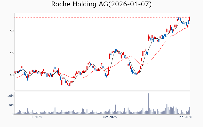 * Healthcare Eli Lilly and Co / Drug Manufacturers - General / 992.0B Roche Holding AG / Drug Manufacturers - General / 353.9B Roche Holding AG / Drug Manufacturers - General / 353.9B AstraZeneca PLC / Drug Manufacturers - General / 297.2B AstraZeneca PLC / Drug Manufacturers - General / 297.2B AstraZeneca PLC / Drug Manufacturers - General / 297.2B GSK plc / Drug Manufacturers - General / 102.8B Regeneron Pharmaceuticals Inc / Biotechnology / 83.4B Takeda Pharmaceutical Co Ltd / Drug Manufacturers - Specialty & Generic / 49.9B IQVIA Holdings Inc / Diagnostics & Research / 41.6B Teva Pharmaceutical Industries Ltd / Drug Manufacturers - Specialty & Generic / 37.2B Natera Inc / Diagnostics & Research / 35.2B Biogen Inc / Drug Manufacturers - General / 27.4B Royalty Pharma PLC / Biotechnology / 23.9B Illumina Inc / Diagnostics & Research / 22.9B Incyte Corp / Biotechnology / 21.7B Genmab A/S / Biotechnology / 20.9B Revolution Medicines Inc / Biotechnology / 19.9B Viatris Inc / Drug Manufacturers - Specialty & Generic / 14.3B Ionis Pharmaceuticals Inc / Biotechnology / 13.5B Avidity Biosciences Inc / Biotechnology / 10.9B Charles River Laboratories International Inc / Diagnostics & Research / 10.7B * Industrials Siemens AG / Specialty Industrial Machinery / 225.0B Siemens AG / Specialty Industrial Machinery / 225.0B HEICO Corp / Aerospace & Defense / 48.9B HEICO Corp / Aerospace & Defense / 48.9B Leonardo SpA / Aerospace & Defense / 36.8B Comfort Systems USA Inc / Engineering & Construction / 36.4B Elbit Systems Ltd / Aerospace & Defense / 30.5B Prysmian SpA / Electrical Equipment & Parts / 30.4B FTAI Aviation Ltd / Rental & Leasing Services / 24.7B Southwest Airlines Co / Airlines / 22.0B LATAM Airlines Group SA / Airlines / 17.0B Carpenter Technology Corp / Metal Fabrication / 16.9B Nordson Corp / Specialty Industrial Machinery / 14.1B Embraer SA / Aerospace & Defense / 12.3B Karman Holdings Inc / Aerospace & Defense / 12.1B JBT Marel Corp / Specialty Industrial Machinery / 8.2B * Materials Vale SA / Other Industrial Metals & Mining / 60.3B ArcelorMittal SA / Steel / 36.8B Kinross Gold Corp / Gold / 36.8B Sociedad Quimica y Minera de Chile SA / Specialty Chemicals / 21.4B Albemarle Corp / Specialty Chemicals / 19.0B Albemarle Corp / Specialty Chemicals / 19.0B Alamos Gold Inc / Gold / 17.1B Ternium SA / Steel / 8.0B Compania de Minas Buenaventura SAA / Other Precious Metals & Mining / 7.8B Eldorado Gold Corp / Gold / 7.6B Gerdau SA / Steel / 7.4B * Financials Mitsubishi UFJ Financial Group Inc / Banks - Diversified / 189.4B Rocket Companies Inc / Mortgage Finance / 59.8B Nomura Holdings Inc / Capital Markets / 26.3B Grupo Cibest SA / Banks - Regional / 17.4B Franklin Resources Inc / Asset Management / 13.1B ASE Technology Holding Co Ltd / Financial Data & Stock Exchanges / 9.9B Jackson Financial Inc / Insurance - Life / 7.8B Firstcash Holdings Inc / Credit Services / 7.3B PennyMac Financial Services Inc / Mortgage Finance / 7.1B * Technology Intel Corp / Semiconductors / 212.4B Tokyo Electron Ltd / Semiconductor Equipment & Materials / 111.7B Infineon Technologies AG / Semiconductors / 63.6B Sandisk Corp / Computer Hardware / 51.9B Ciena Corp / Communication Equipment / 36.5B MongoDB Inc / Software - Infrastructure / 35.9B United Microelectronics Corp / Semiconductors / 21.6B Amkor Technology Inc / Semiconductor Equipment & Materials / 13.0B * Consumer Discretionary Hilton Worldwide Holdings Inc / Lodging / 68.2B Ulta Beauty Inc / Specialty Retail / 29.1B Ulta Beauty Inc / Specialty Retail / 29.1B Caseys General Stores Inc / Specialty Retail / 21.3B Wayfair Inc / Internet Retail / 14.3B * Energy Valero Energy Corp / Oil & Gas Refining & Marketing / 56.1B Suncor Energy Inc / Oil & Gas Integrated / 54.6B TechnipFMC PLC / Oil & Gas Equipment & Services / 19.9B Nexgen Energy Ltd / Uranium / 7.2B * Communication Services Alphabet Inc / Internet Content & Information / 3880.0B Vodafone Group PLC / Telecom Services / 32.7B New York Times Co / Publishing / 11.6B ![]() ✅ Eli Lilly and Co(4.2%) ❗️ 역사적 신고가 돌파 Sector : Healthcare Industry : Drug Manufacturers - General 종목코드 : LLY 시가총액 : 992.0B(1369.0조원) 기업개요 ' - 글로벌 제약 및 생명공학 업체로 신약 개발과 혁신적 치료제 제공에 주력 - 당뇨병, 암, 면역질환 등 다양한 분야에서 강력한 제품 포트폴리오 보유 - 주요 매출원은 당뇨병 치료제와 면역질환 치료제에서 발생 --------------------------------------------------- ![]() ✅ Roche Holding AG(2.8%) ❗️ 52주 신고가를 다시 돌파 Sector : Healthcare Industry : Drug Manufacturers - General 종목코드 : RHHBY 시가총액 : 353.9B(488.3조원) 기업개요 - Roche Holding AG는 제약 및 진단 분야에서 글로벌 리더로, 암 치료제와 진단 제품에서 강력한 포트폴리오를 보유한 기업 - 최근 구조조정을 통해 연구개발(R&D) 부문에 집중하며 혁신적인 신약 개발에 주력하는 전략을 추진 중 - 매출의 상당 부분이 미국 시장에서 발생하며, 지속적인 성장을 위해 디지털 헬스케어 솔루션 확장에 투자 --------------------------------------------------- ![]() ✅ Roche Holding AG(1.0%) ❗️ 52주 신고가를 다시 돌파 Sector : Healthcare Industry : Drug Manufacturers - General 종목코드 : RHHVF 시가총액 : 353.9B(488.3조원) 기업개요 - Roche Holding AG는 제약 및 진단 분야에서 글로벌 리더로, 혁신적인 의약품과 진단 솔루션을 제공하는 기업 - 최근 사업 재편을 통해 디지털 헬스케어와 맞춤형 의료 분야에 집중하며, 매출의 상당 부분이 암 치료제에서 발생 - 2025년 기준으로 미국 주식시장에 상장된 상태이며, 지속적인 연구개발 투자로 장기 성장 가능성 보유 --------------------------------------------------- ![]() ✅ AstraZeneca PLC(0.2%) ❗️ 역사적 신고가 돌파 Sec