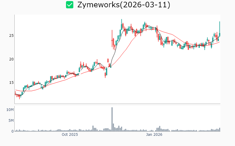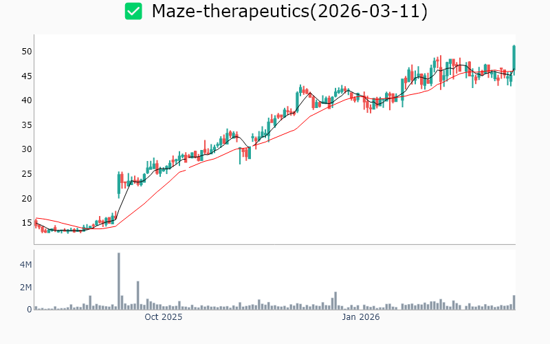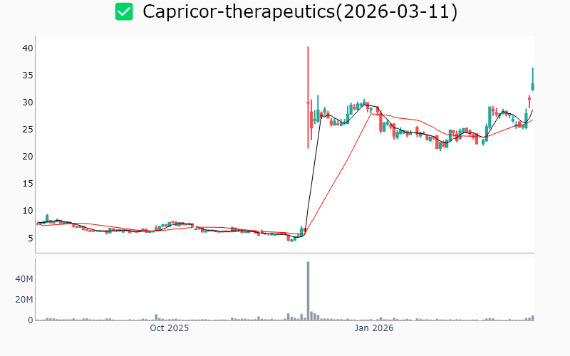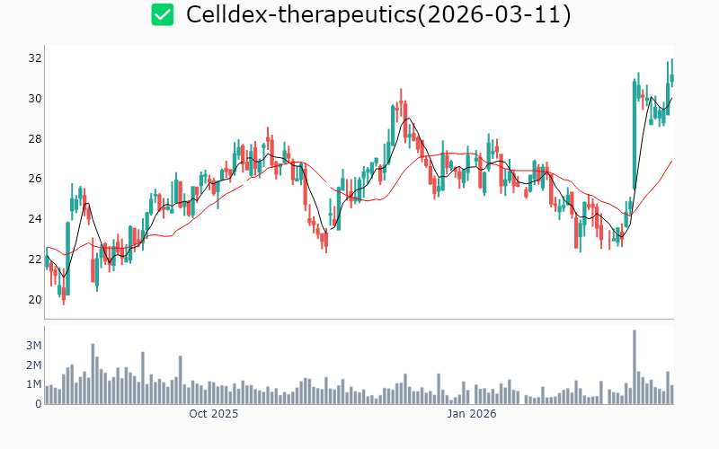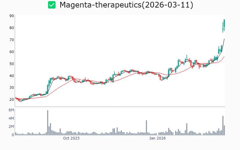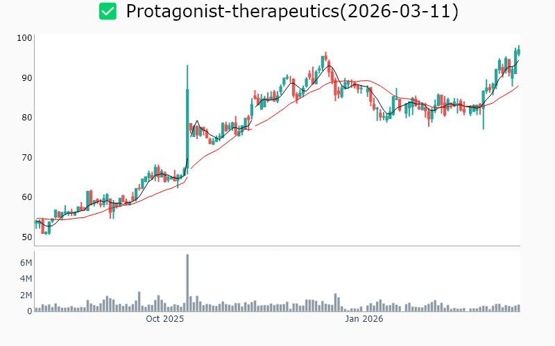 * Healthcare United-therapeutics / Biotechnology / 23.5B Roivant-sciences / Biotechnology / 21.3B Protagonist-therapeutics / Biotechnology / 6.2B Celcuity / Biotechnology / 5.4B Cg-oncology-inc / Biotechnology / 5.3B Ligand-pharmaceutical / Biotechnology / 4.2B Terns-pharmaceuticals / Biotechnology / 4.1B Magenta-therapeutics / Biotechnology / 3.1B Maze-therapeutics / Biotechnology / 2.5B Stoke-therapeutics / Biotechnology / 2.2B Syndax-pharmaceuticals / Biotechnology / 2.1B Celldex-therapeutics / Biotechnology / 2.1B Relay-therapeutics / Biotechnology / 1.9B Zymeworks / Biotechnology / 1.9B Mindmed / Medical - Pharmaceuticals / 1.9B Enliven-therapeutics / Biotechnology / 1.8B Anaptysbio / Biotechnology / 1.7B Capricor-therapeutics / Biotechnology / 1.5B Vir-biotechnology / Biotechnology / 1.4B Bicara-therapeutics / Biotechnology / 1.1B Arrivent-biopharma-inc / Biotechnology / 1.0B Kalvista-pharmaceuticals / Biotechnology / 0.9B Talkspace / Medical - Care Facilities / 0.9B Sonida-senior-living / Medical - Care Facilities / 0.7B Solid-biosciences / Biotechnology / 0.6B * Energy Pembina-pipeline / Oil & Gas Midstream / 25.9B Noble-plc / Oil & Gas Drilling / 7.3B Liberty-oilfield-services / Oil & Gas Equipment & Services / 4.6B Patterson-uti-energy / Oil & Gas Drilling / 3.6B Alliance-resource-partners-lp / Coal / 3.5B Usa-compression-partners / Oil & Gas Equipment & Services / 3.3B Baytex-energy / Oil & Gas Exploration & Production / 3.1B Precision-drilling / Oil & Gas Drilling / 1.2B Tsakos-energy-navigation / Oil & Gas Midstream / 1.1B * Technology Applied-optoelectronics / Semiconductors / 9.1B Fastly-inc / Software - Application / 3.5B Adeia / Software - Application / 2.5B Axt / Semiconductors / 2.0B Digi-international / Communication Equipment / 1.9B Aehr-test-systems / Semiconductors / 1.3B Ituran-location-and-control-ltd / Communication Equipment / 1.0B * Industrials Vertiv-holdings / Electrical Equipment & Parts / 103.3B Mastec / Engineering & Construction / 23.7B Standex-international / Industrial - Machinery / 3.2B Amprius-technologies / Electrical Equipment & Parts / 2.3B Babcock-and-wilcox / Industrial - Machinery / 1.6B National-presto-industries / Aerospace & Defense / 1.0B * Consumer Defensive Archer-daniels-midland / Agricultural Farm Products / 33.4B Bunge / Agricultural Farm Products / 23.2B Coca-cola / Beverages - Non-Alcoholic / 17.4B Lincoln-tech / Education & Training Services / 1.2B Seneca-foods / Packaged Foods / 1.0B * Consumer Cyclical Tjx-cos / Apparel - Retail / 177.5B Ross-stores / Apparel - Retail / 69.3B Casey-s-general-stores / Specialty Retail / 25.6B Academy-sports-and-outdoors / Specialty Retail / 4.0B Tri-pointe / Residential Construction / 4.0B * Financial Services Sprott / Asset Management / 4.3B Abacus-life / Insurance - Life / 1.0B Unusual-machines / Shell Companies / 0.6B * Communication Services Bce / Telecommunications Services / 24.6B Gannett / Publishing / 1.0B Anterix / Telecommunications Services / 0.7B * Basic Materials Almonty-industries / Other Precious Metals / 5.5B Rex-american-resources / Chemicals - Specialty / 1.3B Rayonier-advanced-materials / Chemicals / 0.7B ![]() ✅ United-therapeutics(1.3%) ❗️ 52주 신고가를 다시 돌파 Sector : Healthcare Industry : Biotechnology 종목코드 : UTHR 시가총액 : 23.5B(32.4조원) 기업개요 - 희귀질환 치료제 개발 및 상업화에 주력하는 바이오제약업체 - 폐동맥고혈압 치료제 분야에서 강력한 시장 지위 보유 - 주요 성장동력은 혁신적 치료제 파이프라인 및 글로벌 시장 확장 전략 --------------------------------------------------- ![]() ✅ Roivant-sciences(0.6%) ❗️ 역사적 신고가 돌파 Sector : Healthcare Industry : Biotechnology 종목코드 : ROIV 시가총액 : 21.3B(29.3조원) 기업개요 - 생명공학 분야에서 혁신적인 치료제 개발을 주력으로 하는 업체 - 최근 면역학 및 유전자 치료 분야에서 주요 파이프라인 확장 - 주요 성장동력은 신약 개발을 통한 시장 점유율 확대 --------------------------------------------------- ![]() ✅ Protagonist-therapeutics(0.4%) ❗️ 역사적 신고가 돌파 Sector : Healthcare Industry : Biotechnology 종목코드 : PTGX 시가총액 : 6.2B(8.5조원) 기업개요 - 희귀질환 치료제 개발 전문 바이오테크 업체 - 최근 자가면역질환 치료제 임상 3상 성공으로 주목받는 중 - 주요 성장동력은 혁신적 치료제 파이프라인 및 임상 성과 --------------------------------------------------- ![]() ✅ Celcuity(3.2%) ❗️ 역사적 신고가 돌파 Sector : Healthcare Industry : Biotechnology 종목코드 : CELC 시가총액 : 5.4B(7.5조원) 기업개요 - 생명공학 분야에서 암 진단 및 치료 솔루션 개발을 전문으로 하는 업체 - 최근 임상 시험 성공으로 주목받으며, 파트너십 확대를 통해 시장 진입 가속화 - 주요 성장동력은 혁신적인 진단 기술과 글로벌 제약사와의 협력 관계 --------------------------------------------------- ![]() ✅ Cg-oncology-inc(2.5%) ❗️ 52주 신고가 돌파를 이어가는 중 Sector : Healthcare Industry : Biotechnology 종목코드 : CGON 시가총액 : 5.3B(7.3조원) 기업개요 - 항암 치료제 개발 전문 업체로, 면역요법 기반의 혁신적 치료제 연구에 집중 - 최근 임상 시험 성공으로 주목받으며, 파트너십 확대를 통해 글로벌 시장 진출 가속화 - 주요 성장동력은 면역항암제 분야의 기술력과 혁신적 연구개발 역량 --------------------------------------------------- ![]() ✅ Ligand-pharmaceutical(2.0%) ❗️ 역사적 신고가 돌파 Sector : Healthcare Industry : Biotechnology 종목코드 : LGND 시가총액 : 4.2B(5.8조원) 기업개요 - 신약 개발 및 라이선스 사업을 주력으로 하는 바이오 제약업체 - 최근 항체 치료제 및 단백질 기반 치료제 분