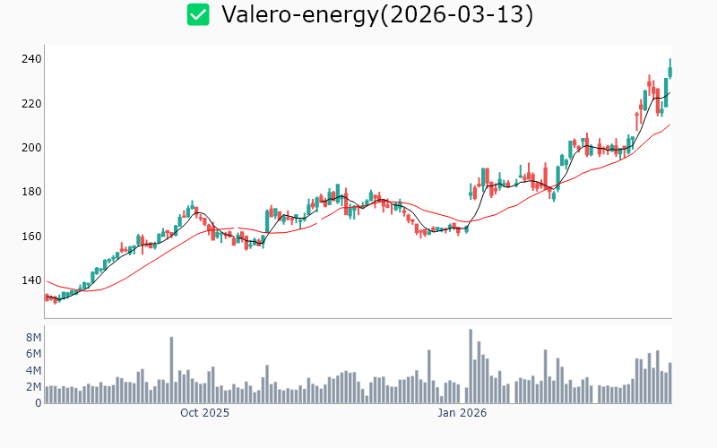 * Energy Chevron / Oil & Gas Integrated / 393.8B Conocophillips / Oil & Gas Exploration & Production / 147.0B Canadian-natural-resources / Oil & Gas Exploration & Production / 101.3B Eog / Oil & Gas Exploration & Production / 72.2B Valero-energy / Oil & Gas Refining & Marketing / 71.9B Suncor-energy / Oil & Gas Integrated / 71.1B Phillips-66 / Oil & Gas Refining & Marketing / 69.8B Marathon-petroleum / Oil & Gas Refining & Marketing / 69.2B Imperial-oil / Oil & Gas Integrated / 60.4B Occidental-petroleum / Oil & Gas Exploration & Production / 57.6B Cheniere-energy-partners / Oil & Gas Midstream / 54.6B Eqt / Oil & Gas Exploration & Production / 40.4B Texas-pacific-land-corporation / Oil & Gas Exploration & Production / 36.5B Cheniere-energy-partners / Oil & Gas Midstream / 30.9B Devon-energy / Oil & Gas Exploration & Production / 28.7B Alpha-metallurgical-resources / Oil & Gas Exploration & Production / 24.3B Apa-corporation / Oil & Gas Exploration & Production / 11.9B Hf-sinclair / Oil & Gas Refining & Marketing / 10.5B Range-resources / Oil & Gas Exploration & Production / 10.2B National-fuel-gas / Oil & Gas Integrated / 8.9B Murphy-oil / Oil & Gas Exploration & Production / 5.0B Liberty-oilfield-services / Oil & Gas Equipment & Services / 4.9B Patterson-uti-energy / Oil & Gas Drilling / 3.7B Par-pacific-common-stock / Oil & Gas Refining & Marketing / 2.7B Talos-energy / Oil & Gas Exploration & Production / 2.3B Vermilion-energyl / Oil & Gas Exploration & Production / 1.8B Propetro / Oil & Gas Equipment & Services / 1.8B Rpc / Oil & Gas Equipment & Services / 1.4B Riley-exploration-permian / Oil & Gas Exploration & Production / 0.7B * Utilities Southern / Regulated Electric / 109.5B Duke-energy / Regulated Electric / 102.5B American-electric-power / Regulated Electric / 71.5B Exelon / Regulated Electric / 50.6B Consolidated-edison / Regulated Electric / 40.9B Atmos-energy / Regulated Gas / 30.9B Fortis / Regulated Electric / 29.5B Firstenergy / Regulated Electric / 29.4B Alliant-energy / Regulated Electric / 18.4B Emera / Regulated Electric / 16.0B Essential-utilities / Regulated Water / 11.6B New-jersey-resources / Regulated Gas / 5.5B Spire / Regulated Gas / 5.4B Suburban-propane-partners / Regulated Gas / 1.4B * Basic Materials Nutrien / Agricultural Inputs / 40.6B Dow / Chemicals / 27.0B Lyondellbasell / Chemicals - Specialty / 23.9B Cf-industries / Agricultural Inputs / 21.2B Westlake-chemical / Chemicals - Specialty / 14.7B Methanex / Chemicals / 4.5B Cvr-partners / Agricultural Inputs / 1.5B Green-plains / Chemicals - Specialty / 1.1B Lsb-industries / Chemicals / 1.1B Lightwave-logic / Chemicals - Specialty / 1.0B Oil-dri-of-america / Chemicals - Specialty / 0.9B Westlake-chemical-partners-lp / Chemicals / 0.8B Rayonier-advanced-materials / Chemicals / 0.8B * Consumer Defensive Kroger / Grocery Stores / 47.4B Archer-daniels-midland / Agricultural Farm Products / 34.9B Bunge / Agricultural Farm Products / 24.3B Coca-cola / Beverages - Non-Alcoholic / 17.6B Darling-ingredients / Packaged Foods / 8.9B The-andersons / Food Distribution / 2.4B Lincoln-tech / Education & Training Services / 1.2B Seneca-foods / Packaged Foods / 1.0B Seneca-foods / Packaged Foods / 1.0B American-public-education / Education & Training Services / 0.9B * Healthcare Maze-therapeutics / Biotechnology / 2.5B Tango-therapeutics / Biotechnology / 2.0B The-pennant / Medical - Care Facilities / 1.2B Ocugen / Biotechnology / 0.8B Lb-pharmaceuticals / Biotechnology / 0.6B * Technology Fastly-inc / Software - Application / 3.7B A10-networks / Software - Infrastructure / 1.5B * Industrials Target-hospitality / Specialty Business Services / 1.0B ![]() ✅ Chevron(2.7%) ❗️ 52주 신고가 돌파를 이어가는 중 Sector : Energy Industry : Oil & Gas Integrated 종목코드 : CVX 시가총액 : 393.8B(543.5조원) 기업개요 - 에너지 분야의 글로벌 리더로서 석유 및 가스 탐사, 생산, 정제, 마케팅을 포함한 통합 에너지 사업 운영 - 최근 대규모 LNG 프로젝트 완료로 생산능력 확대 및 아시아 시장에서의 입지 강화 - 주요 매출원은 석유 및 가스 판매로, 안정적인 현금 흐름과 글로벌 시장에서의 경쟁력 확보 --------------------------------------------------- ![]() ✅ Conocophillips(2.8%) ❗️ 52주 신고가 돌파 Sector : Energy Industry : Oil & Gas Exploration & Production 종목코드 : COP 시가총액 : 147.0B(202.9조원) 기업개요 - 에너지 탐사 및 생산 중심의 글로벌 업체 - 북미, 아시아, 유럽 등지에서 원유 및 천연가스 생산 - 주요 성장동력은 셰일가스 개발 및 LNG 수출 확대 --------------------------------------------------- ![]() ✅ Canadian-natural-resources(2.8%) ❗️ 52주 신고가 돌파를 이어가는 중 Sector : Energy Industry : Oil & Gas Exploration & Production 종목코드 : CNQ 시가총액 : 101.3B(139.8조원) 기업개요 - 북미 최대 석유 및 천연가스 생산업체 - 주력 시장은 캐나다와 미국, 주요 제품은 원유와 천연가스 - 주요 성장동력은 지속적인 자원 개발과 생산 확대 --------------------------------------------------- ![]() ✅ Eog(0.4%) ❗️ 역사적 신고가 돌파 Sector : Energy Industry : Oil & Gas Exploration & Production 종목코드 : EOG 시가총액 : 72.2B(99.6조원) 기업개요 - 북미 지역에서 천연가스와 원유 탐사 및 생산을 주력으로 하는 에너지 업체 - 최근 셰일가스 생산 확대와 함께 주요 유전에서의 생산량 증가 - 주요 성장동력은 셰일가스 개발과 관련된 기술 혁신 및 자원 최적화 --------------------------------------------------- ![]() ✅ Valero-energy(2.1%) ❗️ 52주 신고가 돌파를 이어가는 중 Sector : Energy Industry : Oil & Gas Refining & Marketing 종목코드 : VLO 시가총액 : 71.9B(99.3조원) 기업개요 - 정유 및 석유화학 제품 제조업체 - 북미 및 국제 