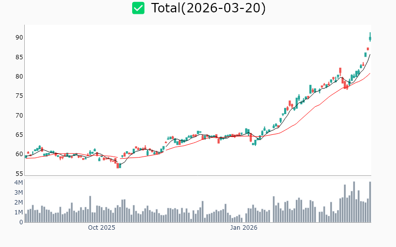 * Energy Chevron / Oil & Gas Integrated / 402.7B Total / Oil & Gas Integrated / 200.6B Conocophillips / Oil & Gas Exploration & Production / 154.0B Canadian-natural-resources / Oil & Gas Exploration & Production / 105.4B Enterprise-prods-partners / Oil & Gas Midstream / 81.0B Suncor-energy / Oil & Gas Integrated / 75.4B Eog / Oil & Gas Exploration & Production / 75.3B Valero-energy / Oil & Gas Refining & Marketing / 73.8B Phillips-66 / Oil & Gas Refining & Marketing / 71.5B Energy-transfer / Oil & Gas Midstream / 65.2B Imperial-oil / Oil & Gas Integrated / 63.2B Cheniere-energy-partners / Oil & Gas Midstream / 60.7B Occidental-petroleum / Oil & Gas Exploration & Production / 58.8B Diamondback / Oil & Gas Exploration & Production / 53.7B Cenovus / Oil & Gas Integrated / 47.0B Eqt / Oil & Gas Exploration & Production / 40.4B Cheniere-energy-partners / Oil & Gas Midstream / 32.3B Halliburton / Oil & Gas Equipment & Services / 31.1B Devon-energy / Oil & Gas Exploration & Production / 30.3B Technipfmc / Oil & Gas Equipment & Services / 26.8B Alpha-metallurgical-resources / Oil & Gas Exploration & Production / 25.7B Viper-energy / Oil & Gas Midstream / 17.7B Ovintiv / Oil & Gas Exploration & Production / 16.1B Permian-resources / Oil & Gas Exploration & Production / 14.3B Apa-corporation / Oil & Gas Exploration & Production / 13.4B Antero-resources / Oil & Gas Exploration & Production / 13.4B Hf-sinclair / Oil & Gas Refining & Marketing / 11.1B Antero-midstream / Oil & Gas Midstream / 11.0B Range-resources / Oil & Gas Exploration & Production / 10.7B Sunoco / Oil & Gas Refining & Marketing / 9.2B Noble-plc / Oil & Gas Drilling / 7.6B Valaris / Oil & Gas Equipment & Services / 6.6B Magnolia-oil-and-gas-corporation / Oil & Gas Exploration & Production / 5.5B Consol-energy / Coal / 5.5B Golar-lng-limited / Oil & Gas Midstream / 5.2B Liberty-oilfield-services / Oil & Gas Equipment & Services / 5.1B Peabody-energy / Coal / 4.6B Alliance-resource-partners-lp / Coal / 3.7B Usa-compression-partners / Oil & Gas Equipment & Services / 3.4B Black-stone-minerals / Oil & Gas Exploration & Production / 3.3B Baytex-energy / Oil & Gas Exploration & Production / 3.2B Par-pacific-common-stock / Oil & Gas Refining & Marketing / 2.9B Seadrill-limited / Oil & Gas Drilling / 2.8B Solaredge-technologies / Solar / 2.8B Talos-energy / Oil & Gas Exploration & Production / 2.5B Vermilion-energyl / Oil & Gas Exploration & Production / 2.2B Flex-lng / Oil & Gas Midstream / 1.7B Kimbell-royalty-partners / Oil & Gas Exploration & Production / 1.6B Kosmos-energy / Oil & Gas Exploration & Production / 1.4B Precision-drilling / Oil & Gas Drilling / 1.3B Diversified-energy-co-plc / Oil & Gas Energy / 1.2B Nabors-industries / Oil & Gas Drilling / 1.2B Riley-exploration-permian / Oil & Gas Exploration & Production / 0.7B * Technology Sandisk / Hardware, Equipment & Parts / 114.0B Webster-financial / Computer Hardware / 107.5B Ciena / Communication Equipment / 58.4B Ubiquiti-networks / Communication Equipment / 48.1B Tower-semiconductor / Semiconductors / 18.6B Camtek / Semiconductors / 7.9B Digitalocean / Software - Infrastructure / 7.9B Viasat / Communication Equipment / 7.1B Clear-secure / Software - Application / 4.7B Nlight / Semiconductors / 4.0B Axt / Semiconductors / 2.6B Adeia / Software - Application / 2.6B Netscout-systems / Software - Infrastructure / 2.2B A10-networks / Software - Infrastructure / 1.6B Ituran-location-and-control-ltd / Communication Equipment / 1.0B Adtran / Communication Equipment / 1.0B * Healthcare Exact-sciences / Medical - Diagnostics & Research / 19.8B Masimo / Medical - Instruments & Supplies / 9.6B Brightspring-health-services-inc / Medical - Healthcare Information Services / 8.5B Protagonist-therapeutics / Biotechnology / 6.5B Amicus-therapeutics / Biotechnology / 4.5B Terns-pharmaceuticals / Biotechnology / 4.4B Tango-therapeutics / Biotechnology / 2.2B Day-one-biopharmaceuticals / Biotechnology / 2.2B Guardian-pharmacy-services / Medical - Distribution / 2.2B Tyra-biosciences / Biotechnology / 2.1B Enliven-therapeutics / Biotechnology / 1.8B Nektar-therapeutics / Biotechnology / 1.5B * Industrials Quanta-services / Engineering & Construction / 86.5B Mastec / Engineering & Construction / 24.7B Nvent-electric / Electrical Equipment & Parts / 19.8B Argan / Engineering & Construction / 6.7B Babcock-and-wilcox / Industrial - Machinery / 1.7B Great-lakes-dredge-and-dock / Engineering & Construction / 1.1B Smith-and-wesson / Aerospace & Defense / 0.6B * Utilities Brookfield / Renewable Utilities / 9.8B Kenon-ltd / Independent Power Producers / 4.5B Select-energy-services / Regulated Water / 1.5B * Consumer Cyclical Restaurant-brands-international / Restaurants / 24.4B Five-below / Discount Stores / 13.0B Tri-pointe / Residential Construction / 4.0B * Communication Services Nextnav / Internet Content & Information / 2.5B Gannett / Publishing / 1.0B Anterix / Telecommunications Services / 0.7B * Consumer Defensive Adecoagro / Agricultural Farm Products / 7.5B ![]() ✅ Chevron(1.4%) ❗️ 52주 신고가 돌파를 이어가는 중 Sector : Energy Industry : Oil & Gas Integrated 종목코드 : CVX 시가총액 : 402.7B(555.8조원) 기업개요 - 에너지 분야의 글로벌 리더로서 석유 및 가스 탐사, 생산, 정제, 마케팅을 포함한 통합 에너지 사업 운영 - 최근 대규모 LNG 프로젝트 완료로 생산능력 확대 및 아시아 시장에서의 입지 강화 - 주요 매출원은 석유 및 가스 판매로, 안정적인 현금 흐름과 글로벌 시장에서의 경쟁력 확보 --------------------------------------------------- ![]() ✅ Total(3.6%) ❗️ 52주 신고가 돌파를 이어가는 중 Sector : Energy Industry : Oil & Gas Integrated 종목코드 : TTE 시가총액 : 200.6B(276.8조원) 기업개요 - 에너지 전환에 집중하며 재생에너지와 천연가스 사업 확장 중인 업체 - 유럽과 아프리카에서 강력한 시장 지배력을