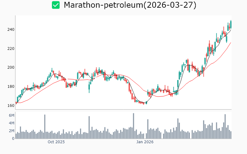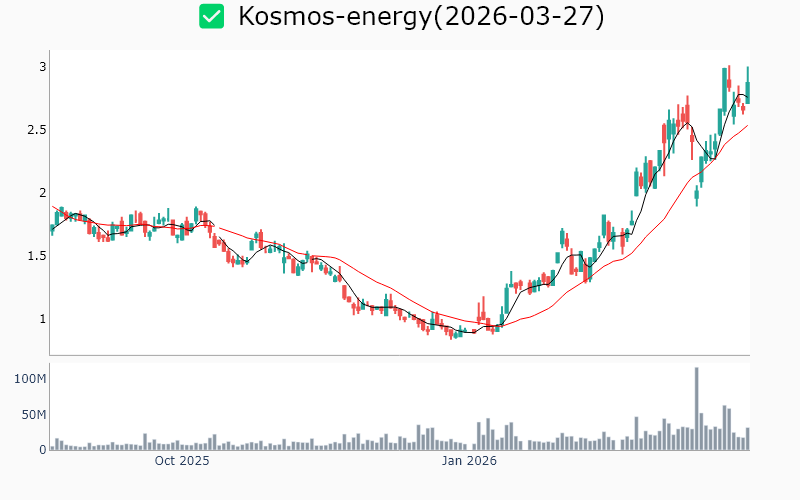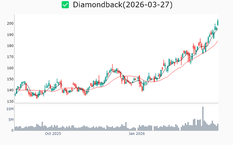 2026년 3월 26일 기준 미국 증시 상장 종목의 52주 신고가 종목을 한눈에 볼 수 있도록 정리했습니다. 더욱 자세한 정보는 AWAKE 글로벌 텔레그램 채널(https://t.me/awake_globalwatch)에서 확인할 수 있습니다. * Energy Exxon / Oil & Gas Integrated / 689.1B(-0.2%) Chevron / Oil & Gas Integrated / 415.5B(-0.2%) Total / Oil & Gas Integrated / 200.3B(-0.2%) Conocophillips / Oil & Gas Exploration & Production / 162.9B(-0.2%) Enbridge / Oil & Gas Midstream / 118.9B(-0.2%) Enterprise-prods-partners / Oil & Gas Midstream / 84.5B(-0.2%) Eog / Oil & Gas Exploration & Production / 80.0B(-0.2%) Schlumberger / Oil & Gas Equipment & Services / 78.2B(-0.2%) Suncor-energy / Oil & Gas Integrated / 77.4B(-0.2%) Kinder-morgan / Oil & Gas Midstream / 75.8B(-0.2%) Valero-energy / Oil & Gas Refining & Marketing / 74.2B(-0.2%) Phillips-66 / Oil & Gas Refining & Marketing / 73.7B(-0.2%) Marathon-petroleum / Oil & Gas Refining & Marketing / 73.2B(-0.2%) Energy-transfer / Oil & Gas Midstream / 66.9B(-0.2%) Occidental-petroleum / Oil & Gas Exploration & Production / 63.5B(-0.2%) Diamondback / Oil & Gas Exploration & Production / 57.0B(-0.2%) Targa-resources / Oil & Gas Midstream / 53.8B(-0.2%) Cenovus / Oil & Gas Integrated / 49.0B(-0.2%) Halliburton / Oil & Gas Equipment & Services / 32.6B(-0.2%) Devon-energy / Oil & Gas Exploration & Production / 31.9B(-0.2%) Alpha-metallurgical-resources / Oil & Gas Exploration & Production / 27.2B(-0.2%) Pembina-pipeline / Oil & Gas Midstream / 26.6B(-0.2%) Viper-energy / Oil & Gas Midstream / 17.9B(-0.2%) Ovintiv / Oil & Gas Exploration & Production / 17.4B(-0.2%) Plains-all-american-pipeline-lp / Oil & Gas Midstream / 15.9B(-0.2%) Permian-resources / Oil & Gas Exploration & Production / 15.4B(-0.2%) Apa-corporation / Oil & Gas Exploration & Production / 15.1B(-0.2%) Hf-sinclair / Oil & Gas Refining & Marketing / 11.6B(-0.2%) Range-resources / Oil & Gas Exploration & Production / 11.1B(-0.2%) Oasis-petroleum / Oil & Gas Exploration & Production / 8.2B(-0.2%) Matador-resources-company / Oil & Gas Exploration & Production / 8.0B(-0.2%) Noble-plc / Oil & Gas Drilling / 7.9B(-0.2%) Valaris / Oil & Gas Equipment & Services / 7.1B(-0.2%) Transocean-limited / Oil & Gas Drilling / 6.2B(-0.2%) California-resources-corporation / Oil & Gas Exploration & Production / 6.0B(-0.2%) Murphy-oil / Oil & Gas Exploration & Production / 6.0B(-0.2%) Pbf-energy / Oil & Gas Refining & Marketing / 5.9B(-0.2%) Magnolia-oil-and-gas-corporation / Oil & Gas Exploration & Production / 5.8B(-0.2%) Golar-lng-limited / Oil & Gas Midstream / 5.5B(-0.2%) Plains-gp / Oil & Gas Midstream / 4.8B(-0.2%) Crescent-energy-company / Oil & Gas Exploration & Production / 4.5B(-0.2%) Patterson-uti-energy / Oil & Gas Drilling / 4.3B(-0.2%) Sm-energy-company / Oil & Gas Exploration & Production / 3.8B(-0.2%) Alliance-resource-partners-lp / Coal / 3.7B(-0.2%) Usa-compression-partners / Oil & Gas Equipment & Services / 3.4B(-0.2%) Baytex-energy / Oil & Gas Exploration & Production / 3.2B(-0.2%) Par-pacific-common-stock / Oil & Gas Refining & Marketing / 3.2B(-0.2%) Seadrill-limited / Oil & Gas Drilling / 2.8B(-0.2%) Talos-energy / Oil & Gas Exploration & Production / 2.8B(-0.2%) Delek-us-holdings / Oil & Gas Refining & Marketing / 2.8B(-0.2%) Calumet / Oil & Gas Exploration & Production / 2.7B(-0.2%) Mach-natural-resources-lp / Oil & Gas Exploration & Production / 2.4B(-0.2%) Propetro / Oil & Gas Equipment & Services / 1.8B(-0.2%) Natural-resource-partners / Coal / 1.7B(-0.2%) Rpc / Oil & Gas Equipment & Services / 1.6B(-0.2%) Kimbell-royalty-partners / Oil & Gas Exploration & Production / 1.6B(-0.2%) Kosmos-energy / Oil & Gas Exploration & Production / 1.4B(-0.2%) Diversified-energy-co-plc / Oil & Gas Energy / 1.4B(-0.2%) Dorchester-minerals-lp / Oil & Gas Exploration & Production / 1.3B(-0.2%) Nabors-industries / Oil & Gas Drilling / 1.3B(-0.2%) Riley-exploration-permian / Oil & Gas Exploration & Production / 0.8B(-0.2%) Tamboran-res-ltd / Oil & Gas Exploration & Production / 0.8B(-0.2%) Vaalco-energy / Oil & Gas Exploration & Production / 0.7B(-0.2%) * Healthcare Hologic / Medical - Instruments & Supplies / 16.9B(-0.2%) Davita / Medical - Care Facilities / 10.5B(-0.2%) Arcellx / Biotechnology / 6.7B(-0.2%) Celcuity / Biotechnology / 5.3B(-0.2%) Terns-pharmaceuticals / Biotechnology / 4.8B(-0.2%) Aeglea-biotherapeutics / Biotechnology / 2.9B(-0.2%) Enliven-therapeutics / Biotechnology / 2.3B(-0.2%) Day-one-biopharmaceuticals / Biotechnology / 2.2B(-0.2%) Syndax-pharmaceuticals / Biotechnology / 2.2B(-0.2%) Kodiak-sciences / Biotechnology / 2.1B(-0.2%) Tyra-biosciences / Biotechnology / 2.0B(-0.2%) Mindmed / Medical - Pharmaceuticals / 1.9B(-0.2%) Arca-biopharma / Biotechnology / 1.7B(-0.2%) Adapthealth / Medical - Devices / 1.6B(-0.2%) Kalvista-pharmaceuticals / Biotechnology / 1.0B(-0.2%) * Basic Materials Corteva / Agricultural Inputs / 55.6B(-0.2%) Lyondellbasell / Chemicals - Specialty / 25.0B(-0.2%) Methanex / Chemicals / 4.6B(-0.2%) Olin / Chemicals - Specialty / 3.3B(-0.2%) The-chemours / Chemicals - Specialty / 3.2B(-0.2%) Ecovyst / Chemicals - Specialty / 1.5B(-0.2%) Rex-american-resources / Chemicals - Specialty / 1.5B(-0.2%) Tronox / Chemicals / 1.4B(-0.2%) Lsb-industries / Chemicals / 1.2B(-0.2%) Green-plains / Chemicals - Specialty / 1.2B(-0.2%) Koppers-koppers / Chemicals - Specialty / 0.8B(-0.2%) * Consumer Defensive Jbs-nv-dr2 / Packaged Foods / 36.9B(-0.2%) Archer-daniels-midland / Agricultural Farm Products / 34.8B(-0.2%) Bunge / Agricultural Farm Products / 24.3B(-0.2%) Smithfield-foods / Agricultural Farm Products / 10.2B(-0.2%) Darling-ingredients / Packaged Foods / 9.4B(-0.2%) United-natural-foods / Food Distribution / 2.8B(-0.2%) Perdoceo-education-corporation / Education & Training Services / 2.4B(-0.2%) Seneca-foods / Packaged Foods / 1.0B(-0.2%) Seneca-foods / Packaged Foods / 1.0B(-0.2%) * Technology Cirrus-logic / Semiconductors / 7.6B(-0.2%) Net